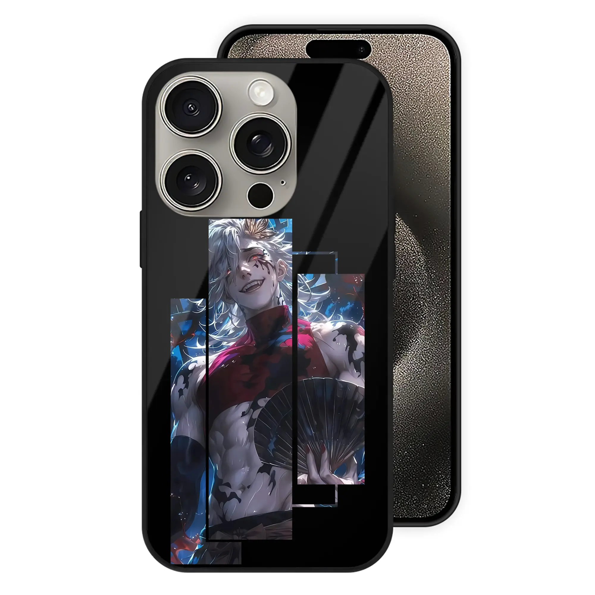 鬼滅の刃 グッズ,童磨 - IPhone15Pro対応 ・ スマホケース ・ 背面ガラス ・ TPU+強化ガラス ・ 耐衝撃 ・ 黄変防止 ・ ワイヤレス充電対応 ・ 3D立体ボタン