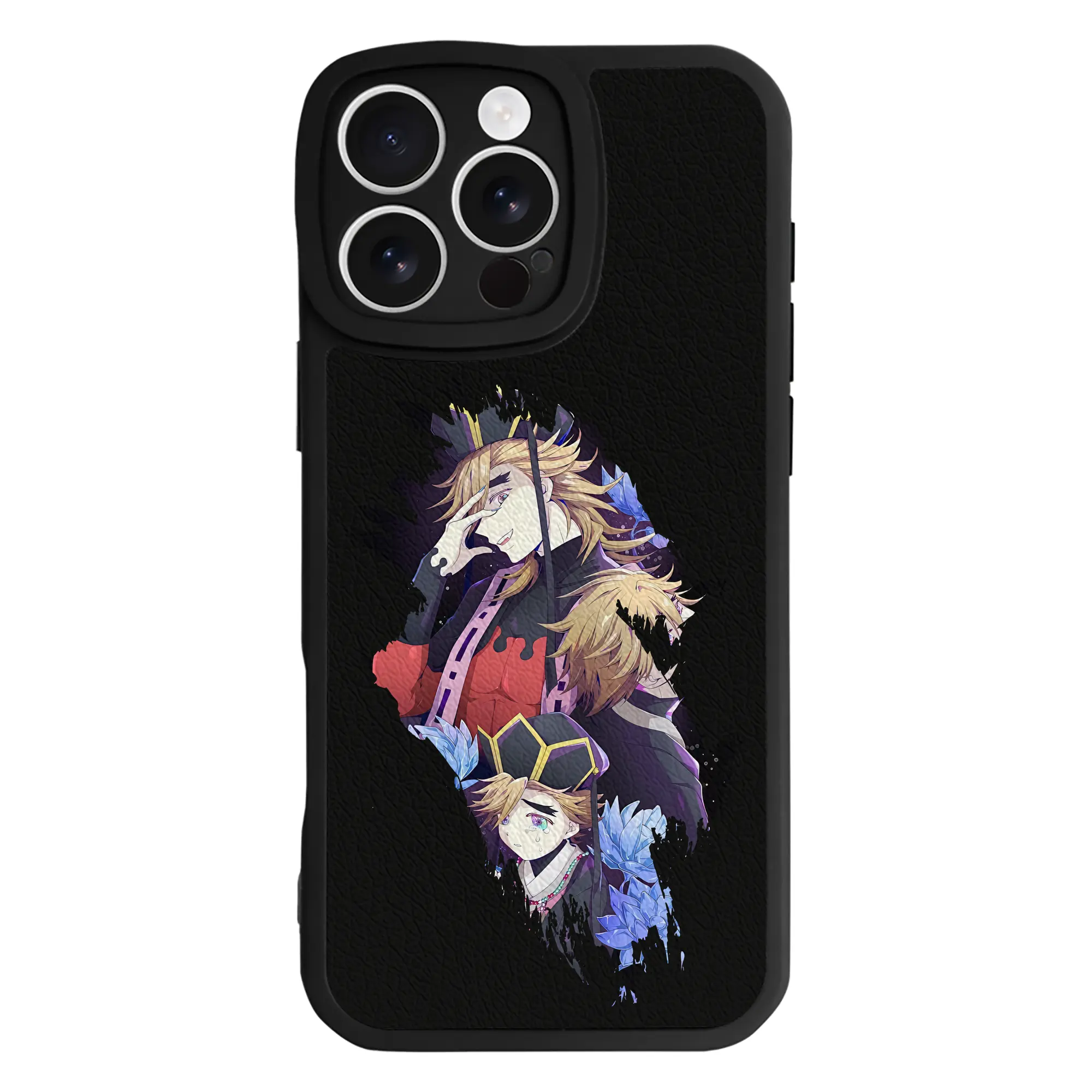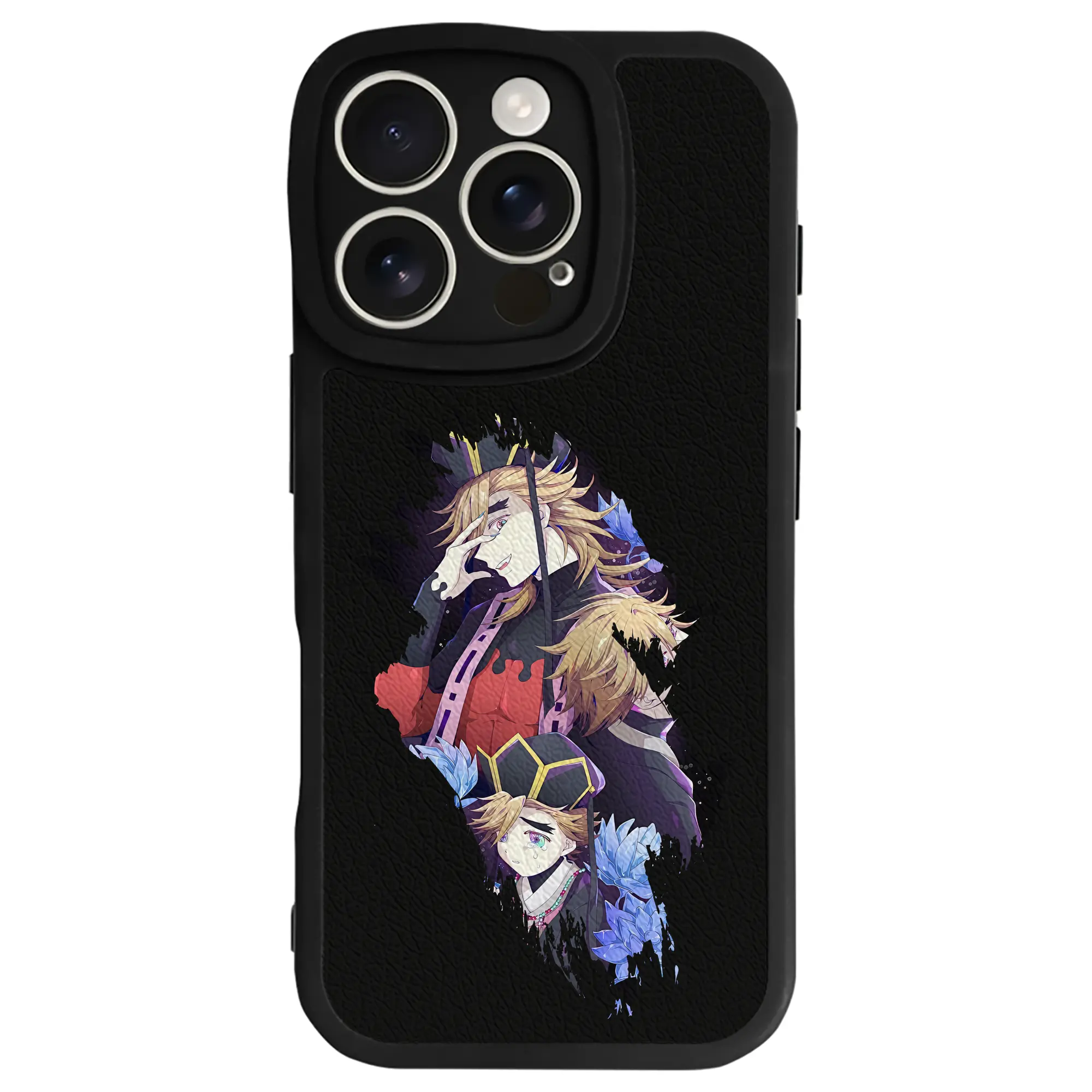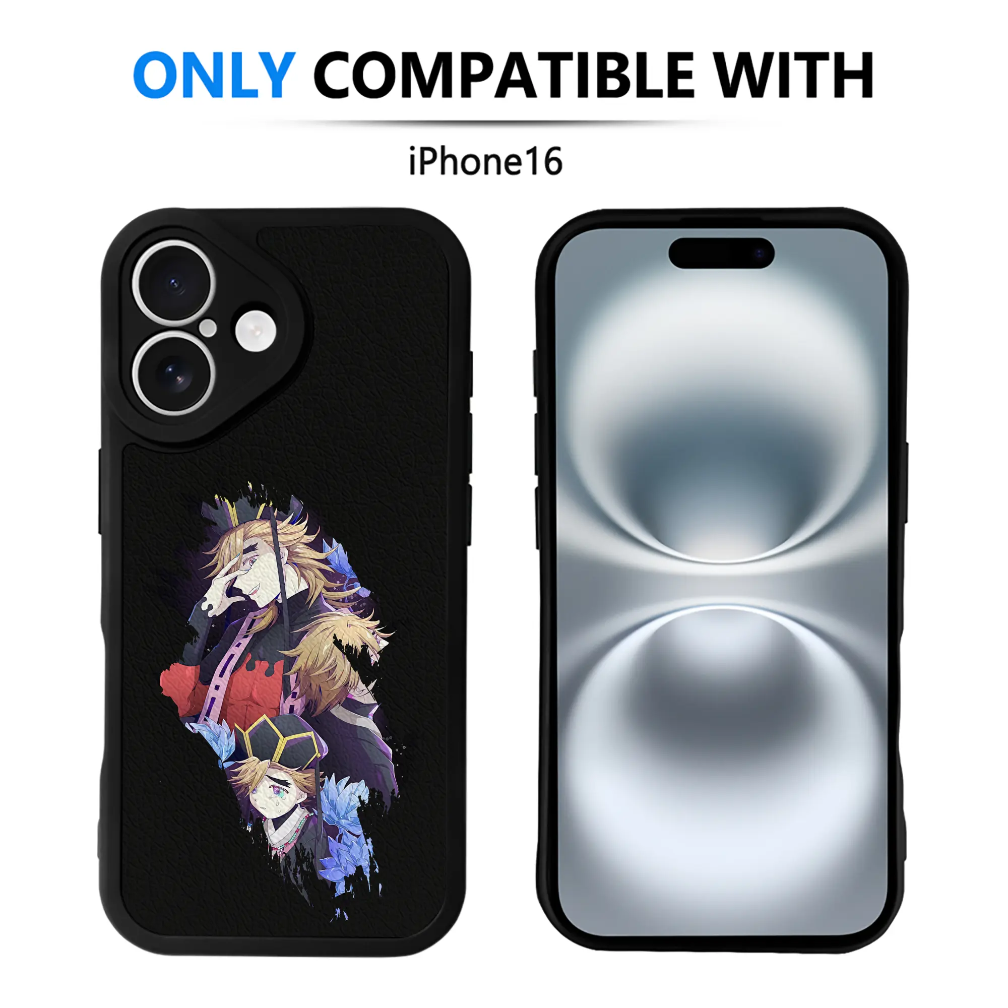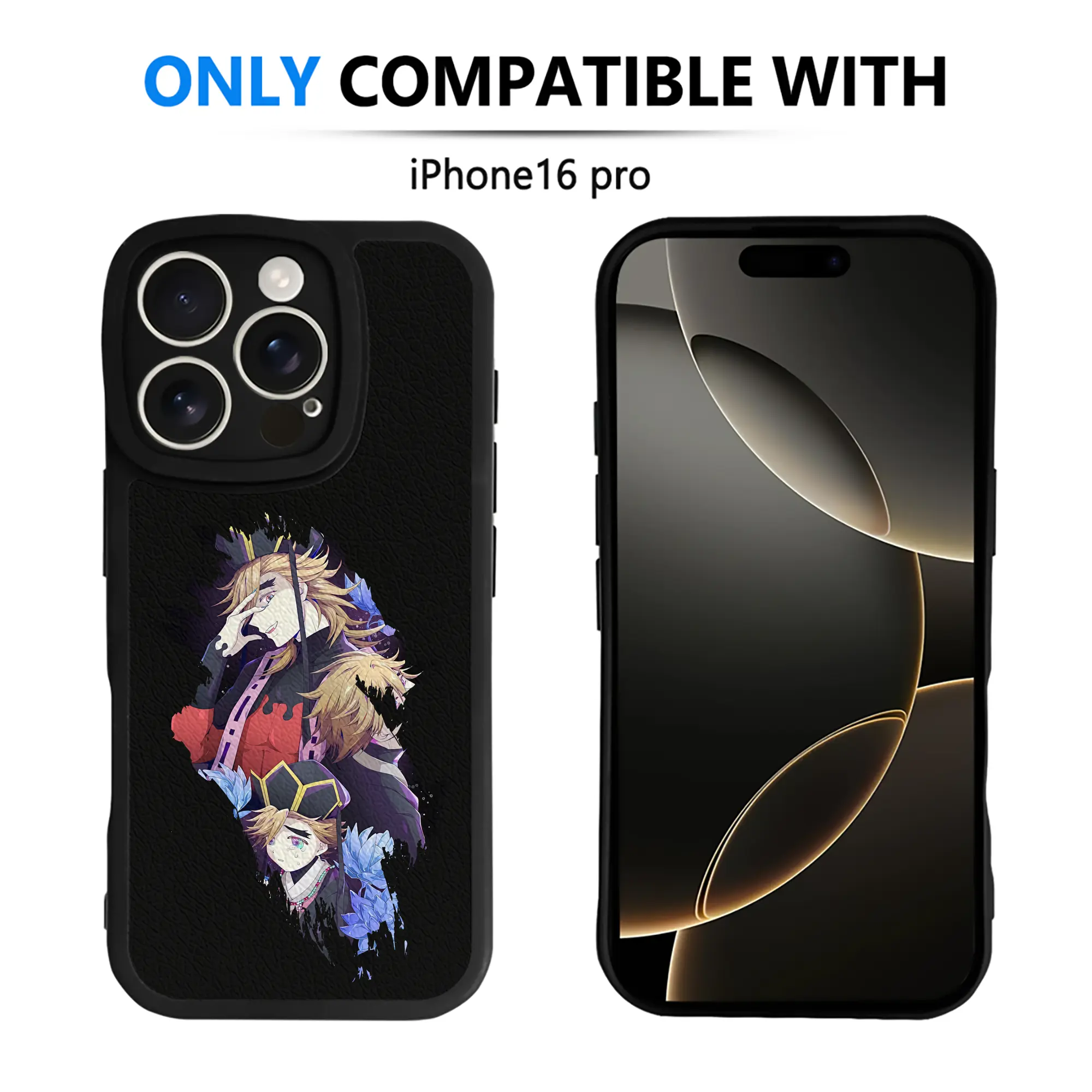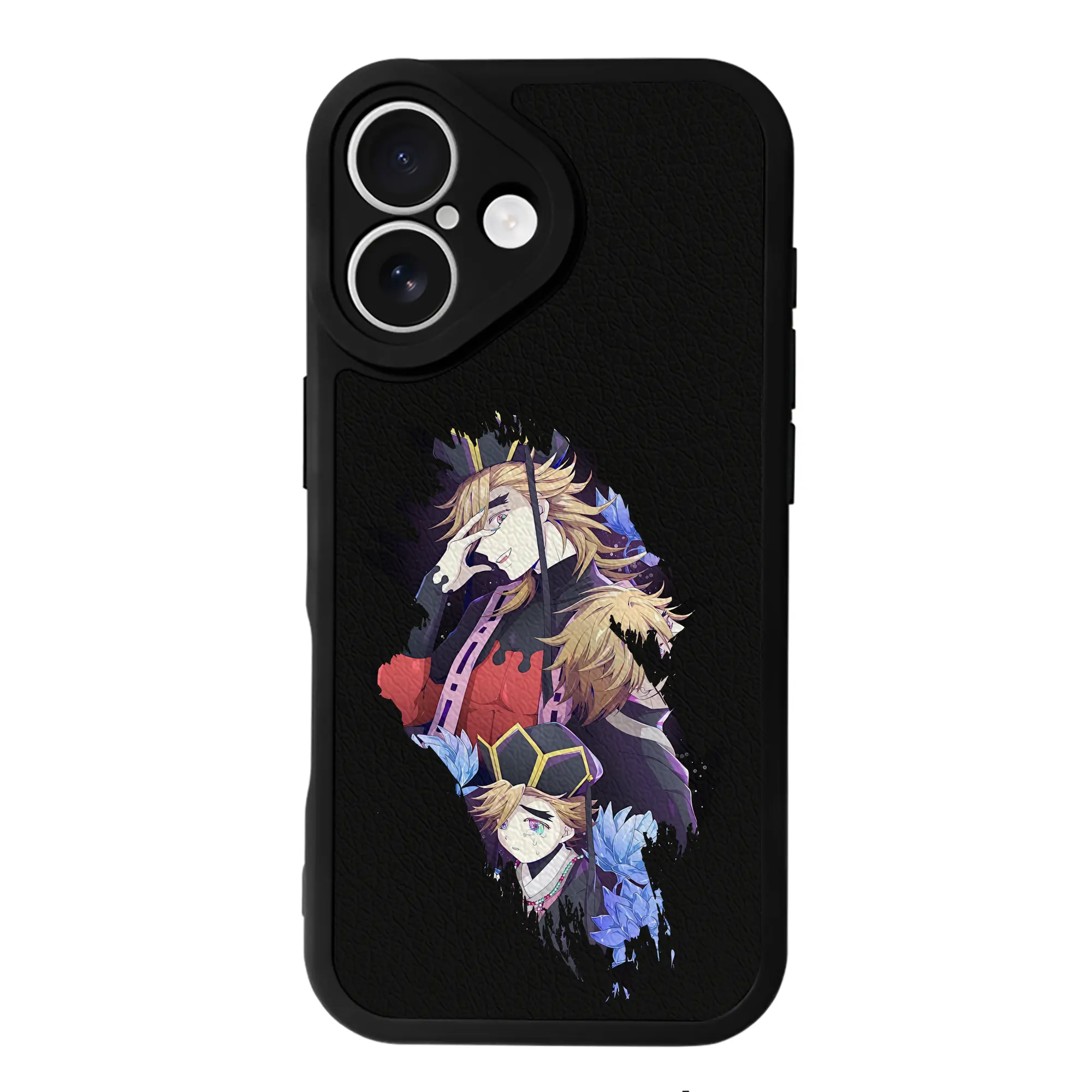 鬼滅の刃 グッズ,童磨 - IPhone 16シリーズ対応 ・ シリコンスマホケース ・ レザー調 ・ 高精度フィット ・ 耐衝撃 ・ ワイヤレス充電対応 ・ 精密カット