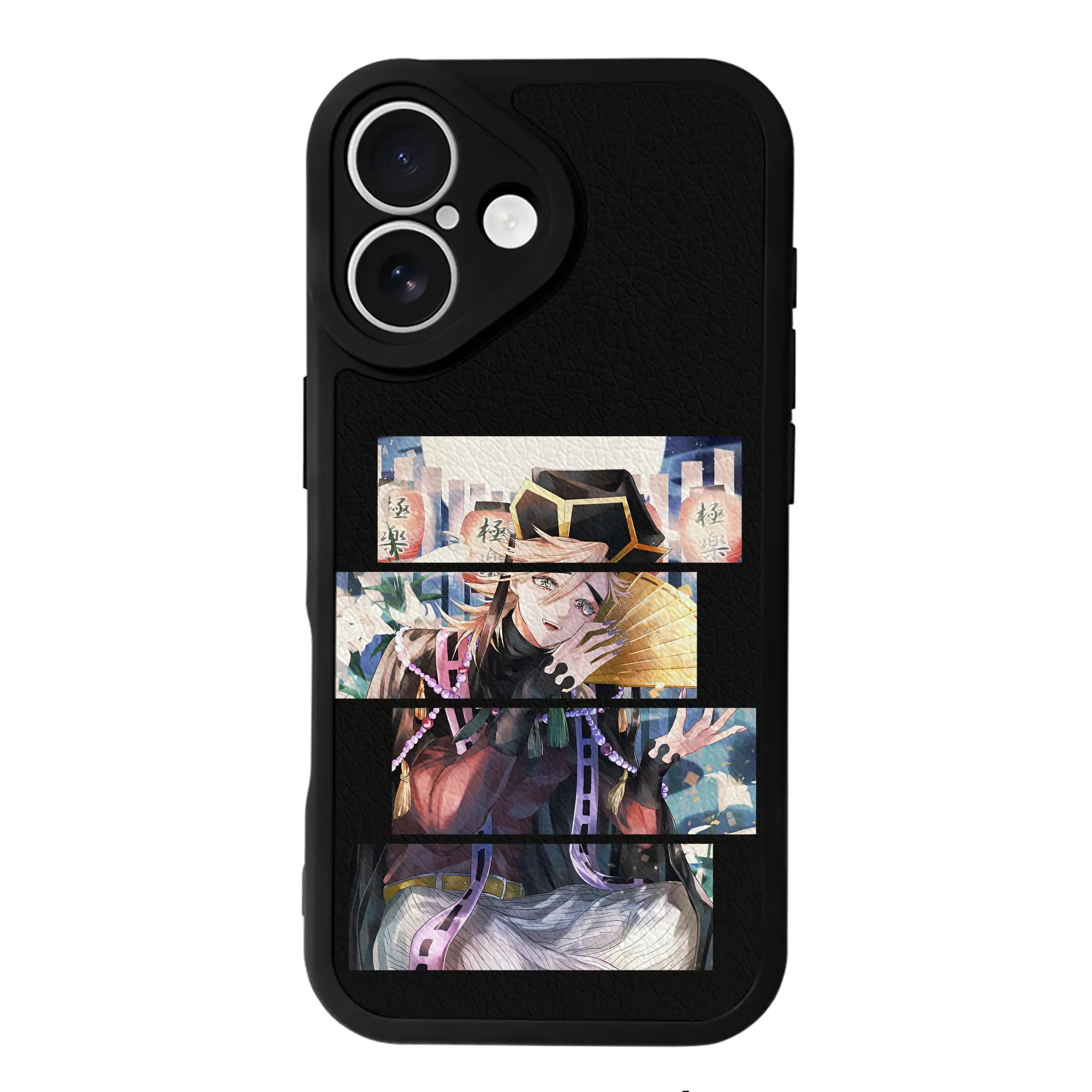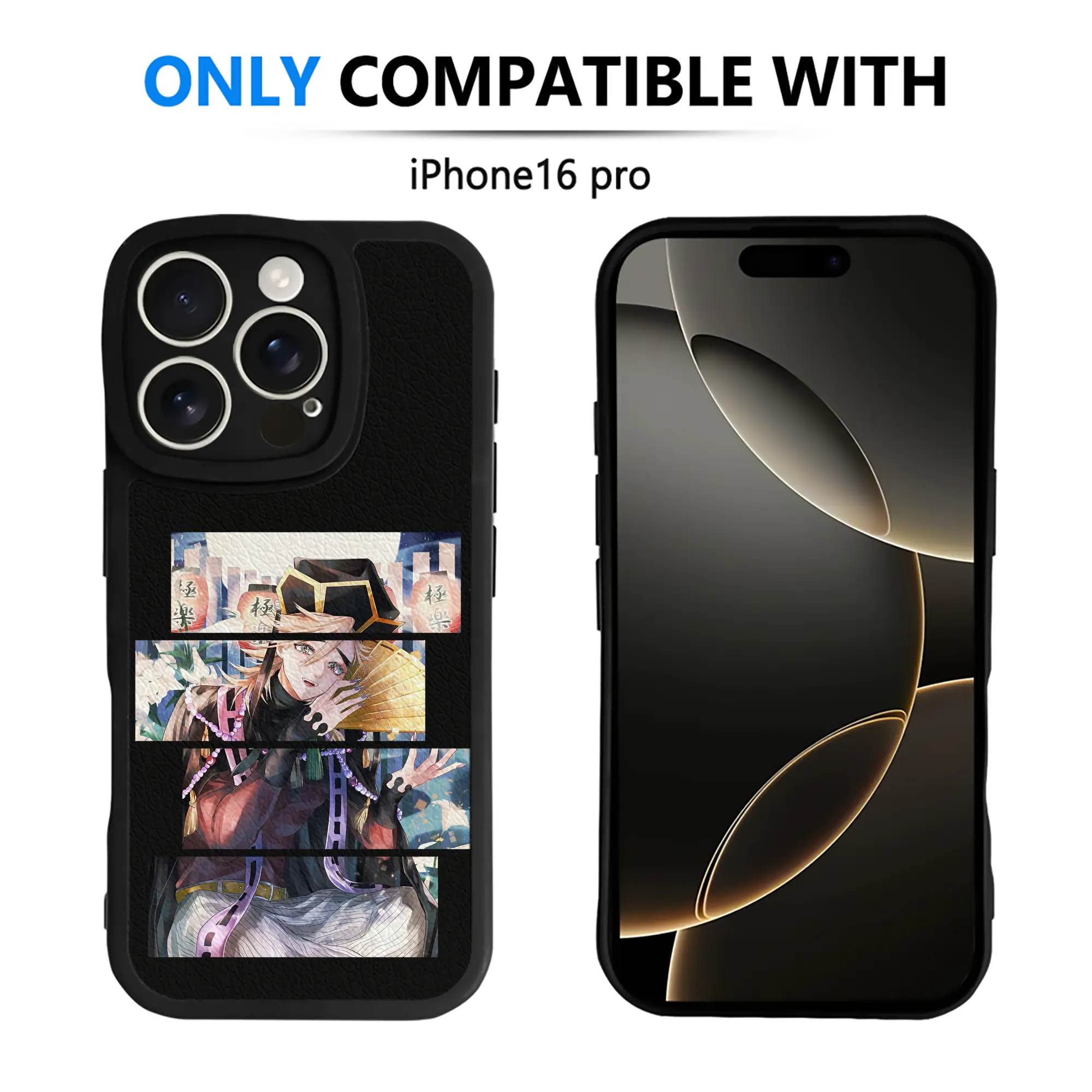鬼滅の刃 グッズ,童磨 - IPhone 16シリーズ対応 ・ シリコンスマホケース ・ レザー調 ・ 高精度フィット ・ 耐衝撃 ・ ワイヤレス充電対応 ・ 精密カット