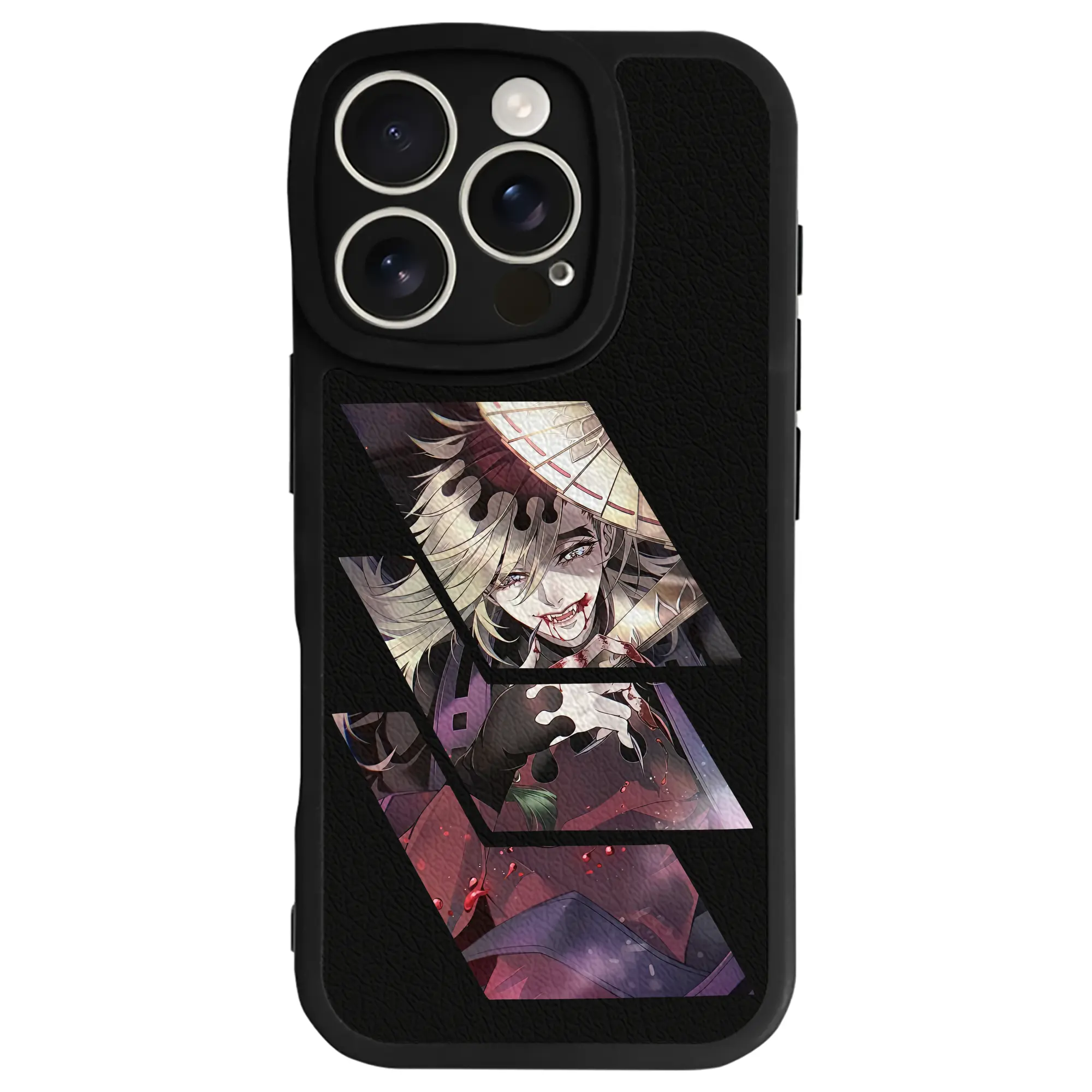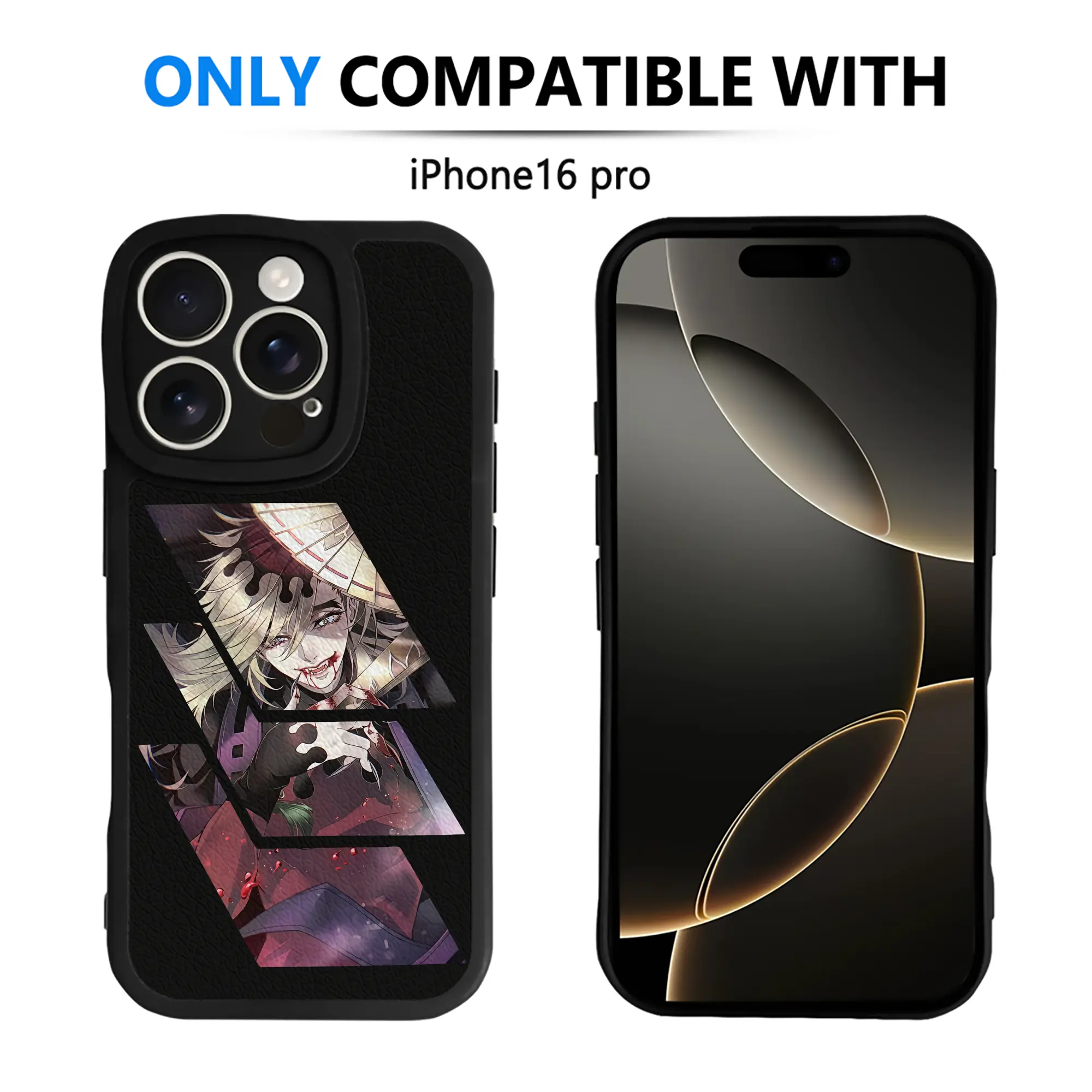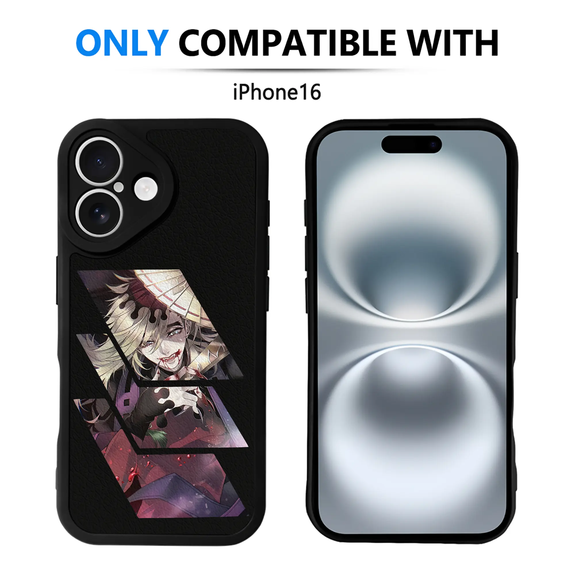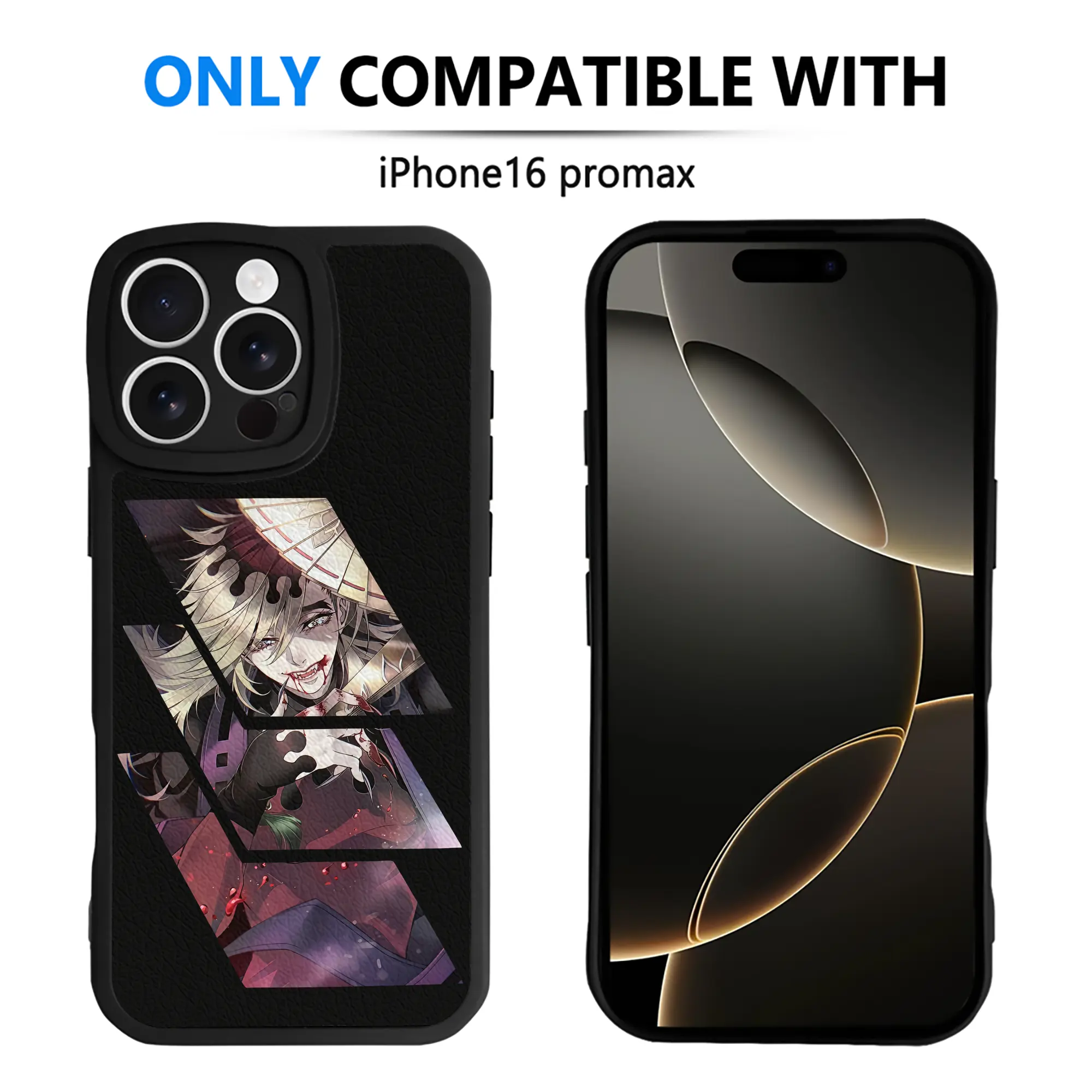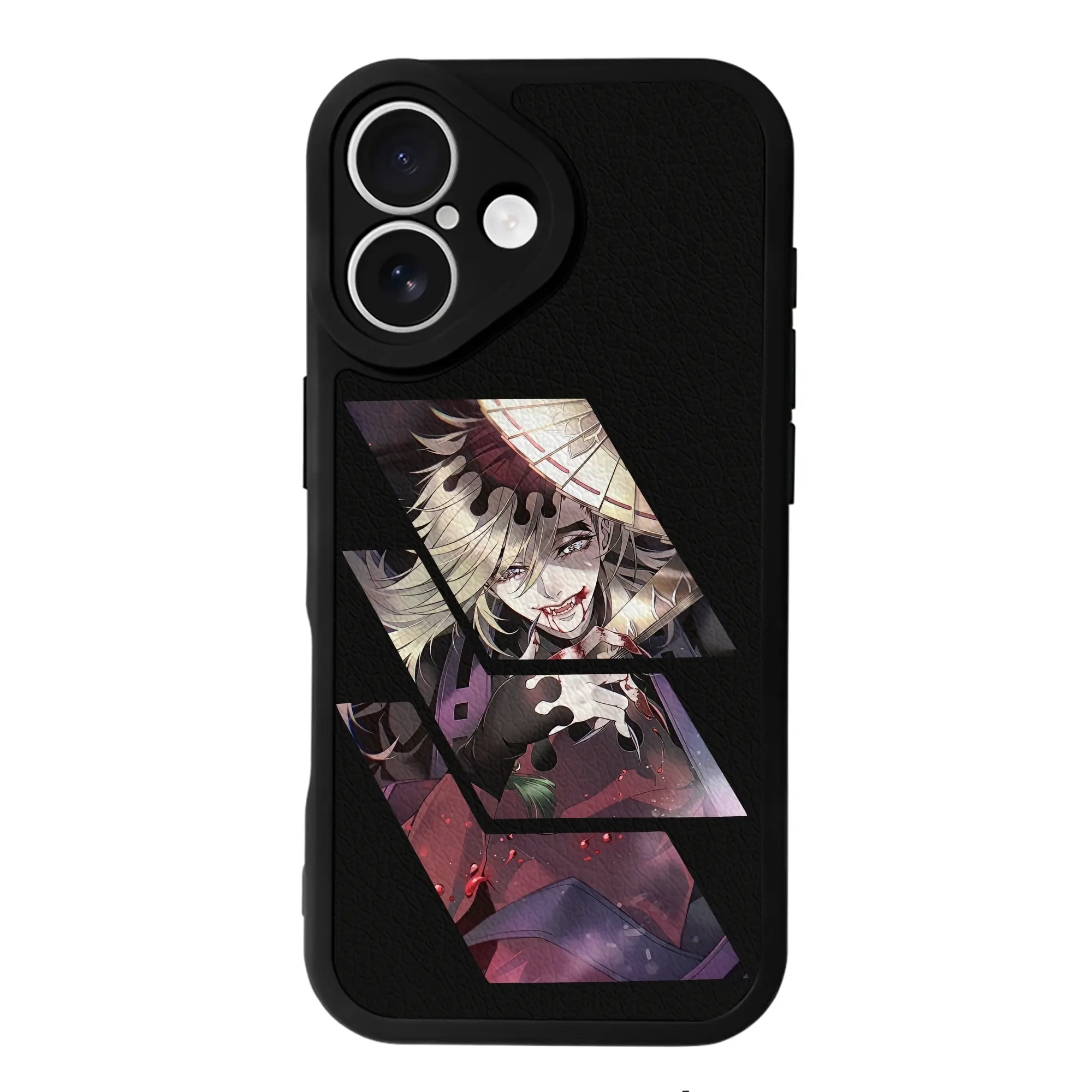 鬼滅の刃 グッズ,童磨 - IPhone 16シリーズ対応 ・ シリコンスマホケース ・ レザー調 ・ 高精度フィット ・ 耐衝撃 ・ ワイヤレス充電対応 ・ 精密カット