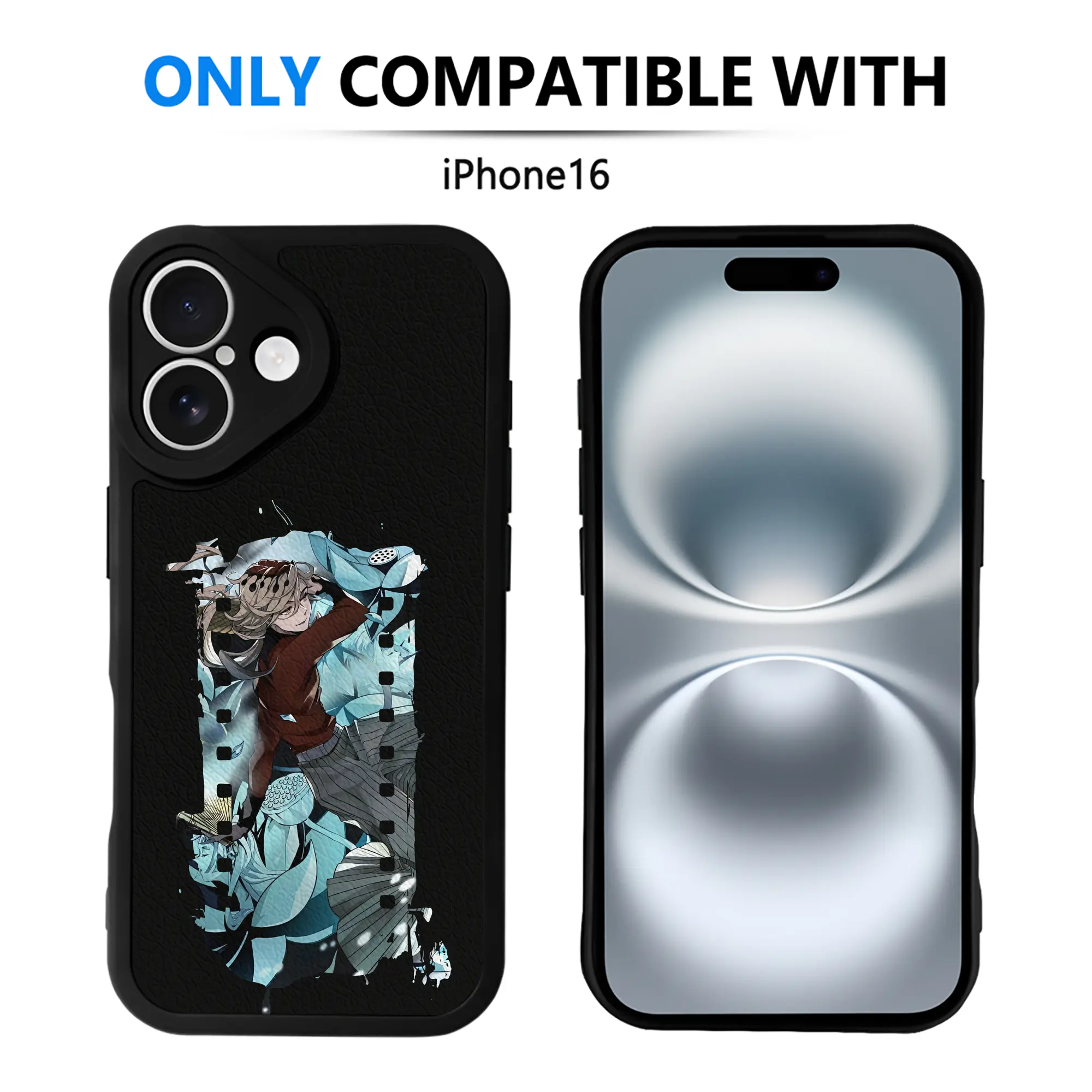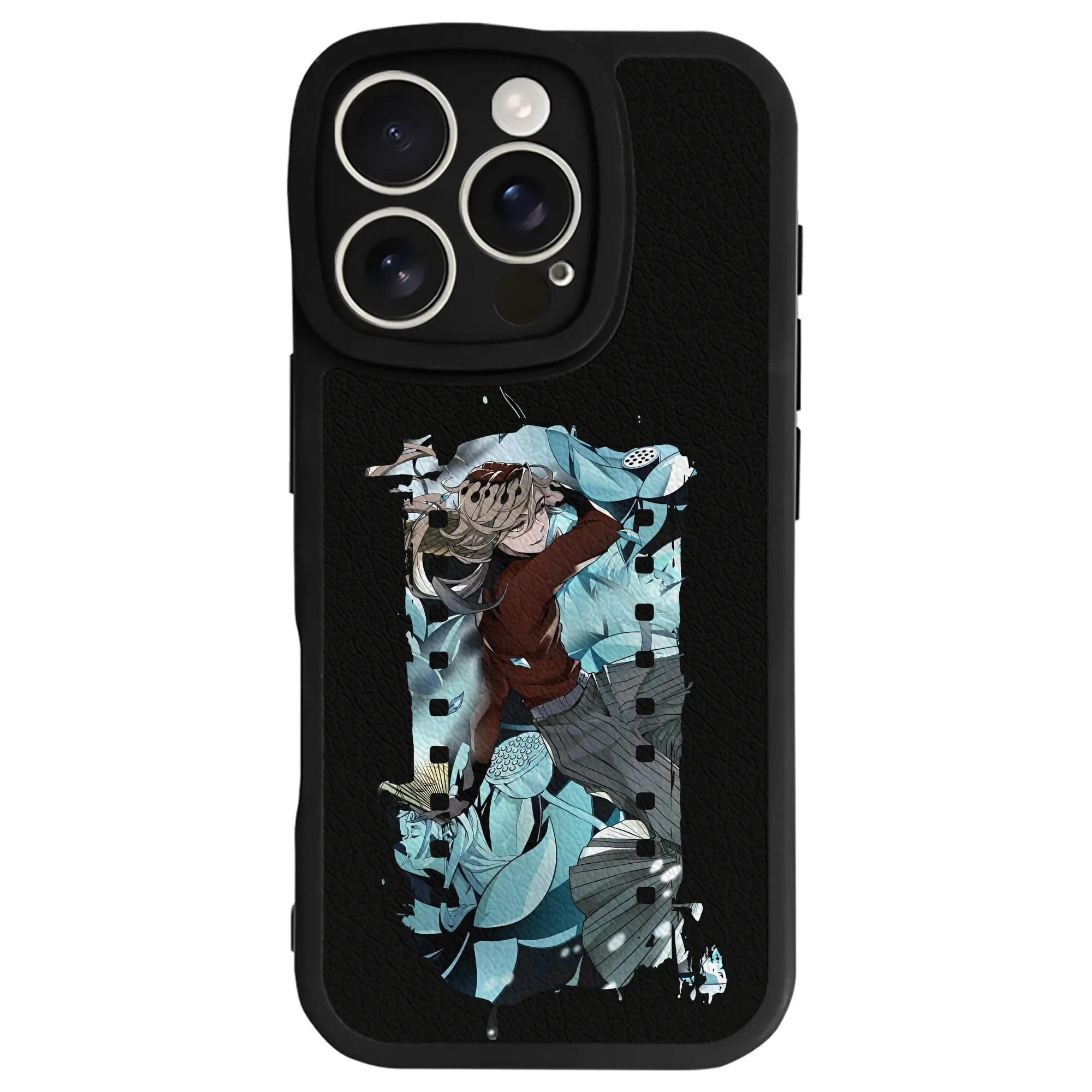 鬼滅の刃 グッズ,童磨 - IPhone 16シリーズ対応 ・ シリコンスマホケース ・ レザー調 ・ 高精度フィット ・ 耐衝撃 ・ ワイヤレス充電対応 ・ 精密カット