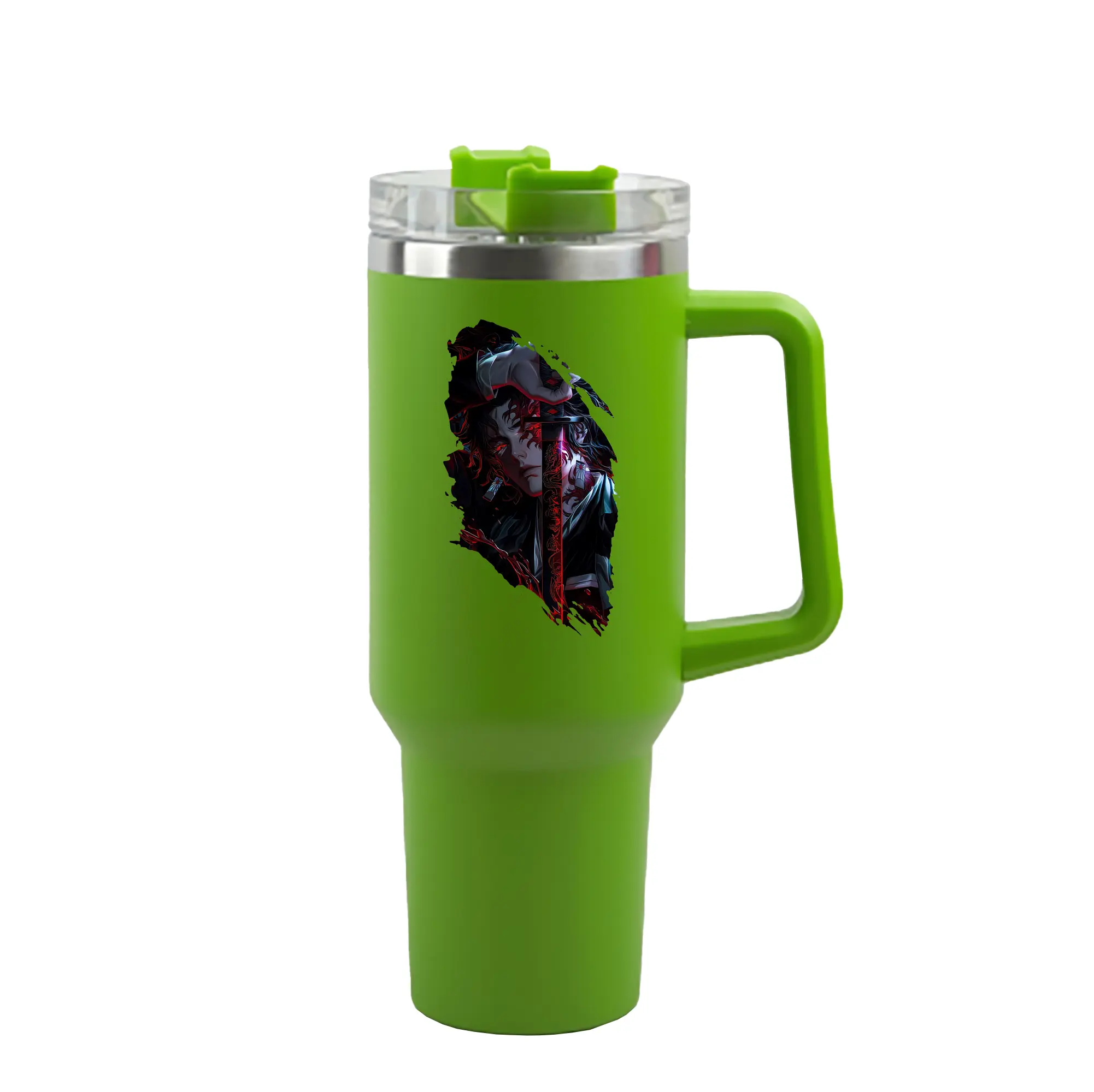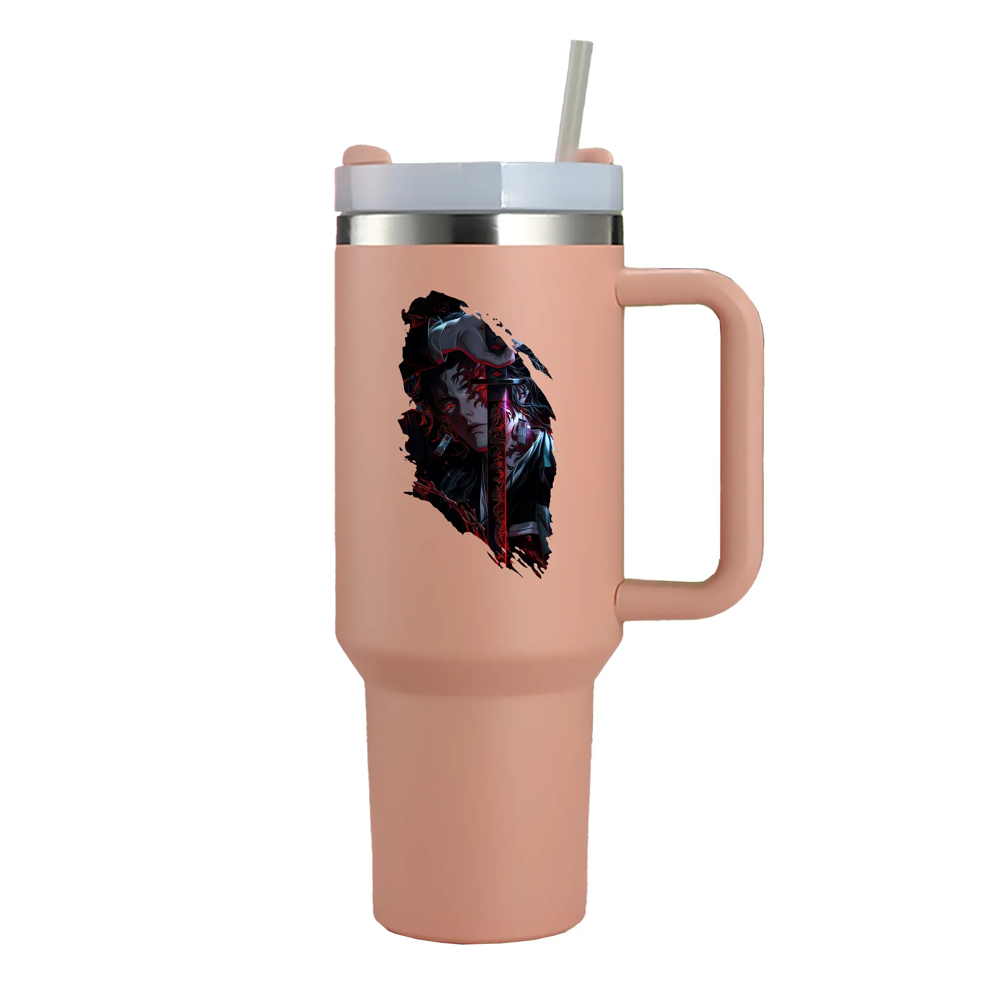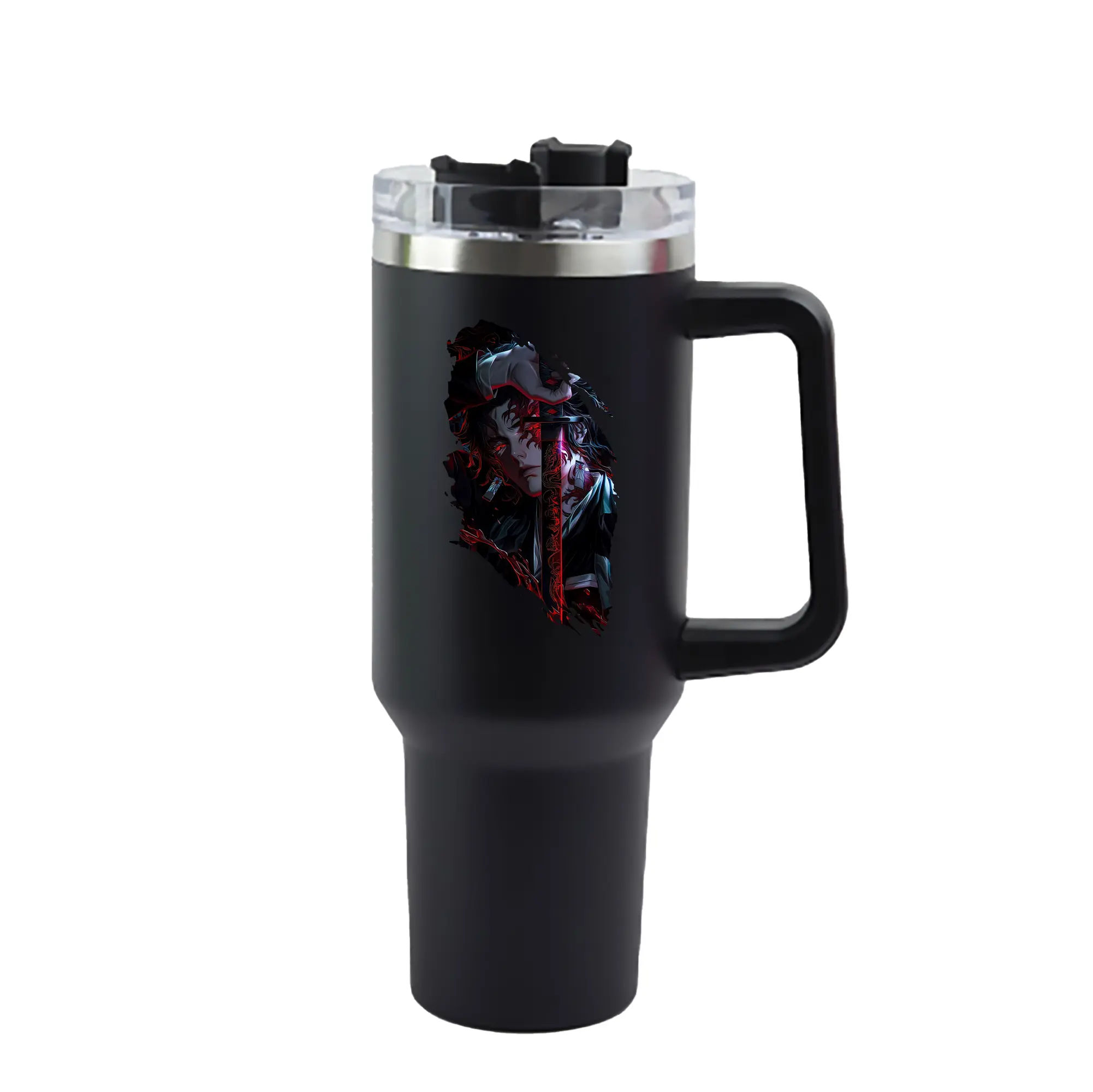 鬼滅の刃 グッズ,継国 縁壱 - 1200mL 車用タンブラー ・ クリスタルステッカー ・ 304ステンレス 内側 ・ 201ステンレス 外側 ・ 保温 保冷 ・ ハンドル&ストロー付き ・ 通勤 ドライブ アウトドア用