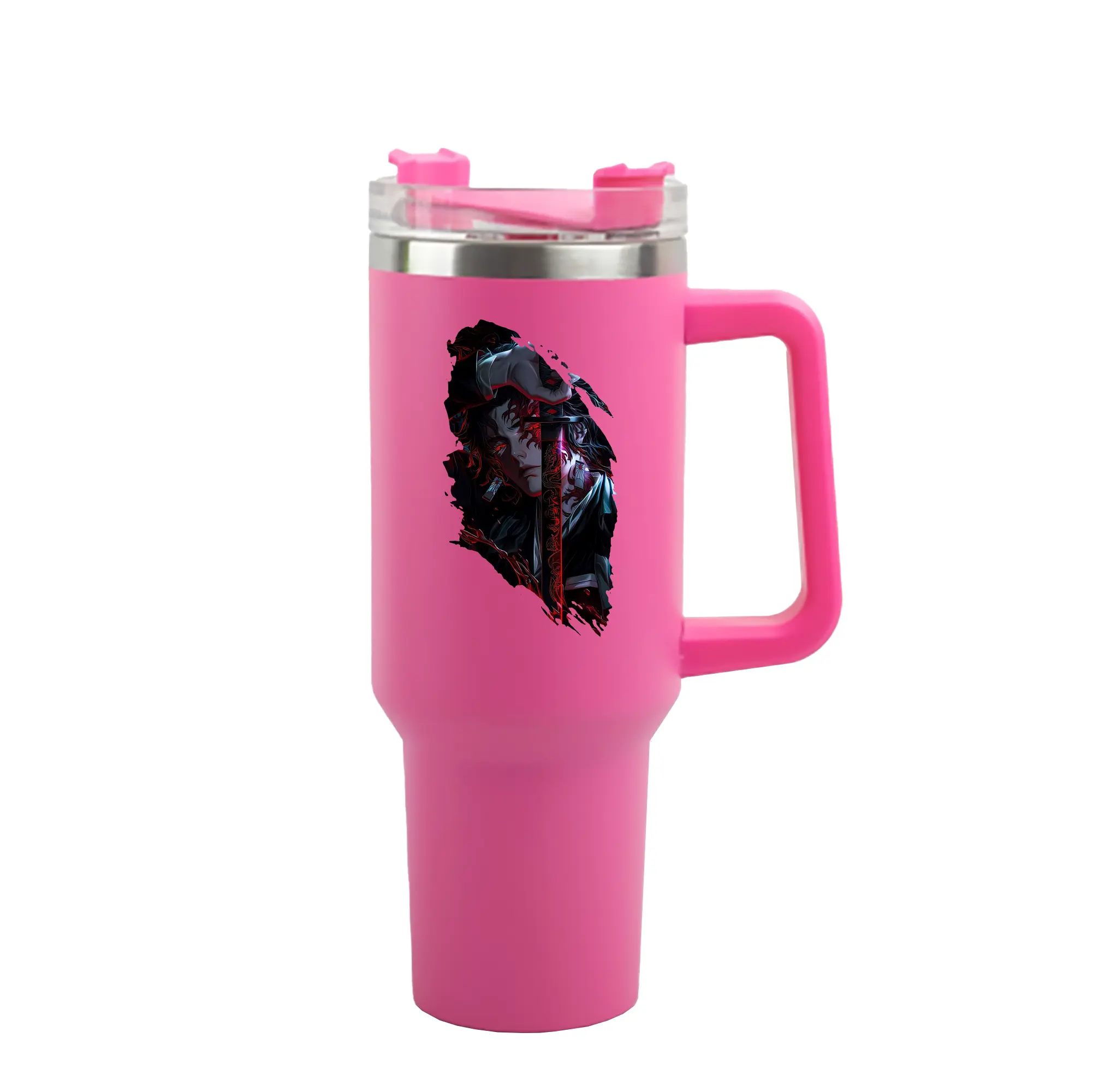 1200mL(40オンス)の大容量ハンドル付きカータンブラー。キラキラと輝くクリスタルステッカーデザインが、毎日の使用に華やかさをプラスします。食品グレード304ステンレスの内側と頑丈な201ステンレスの外側を採用し、耐久性・耐腐食性・安全性を兼ね備えています。