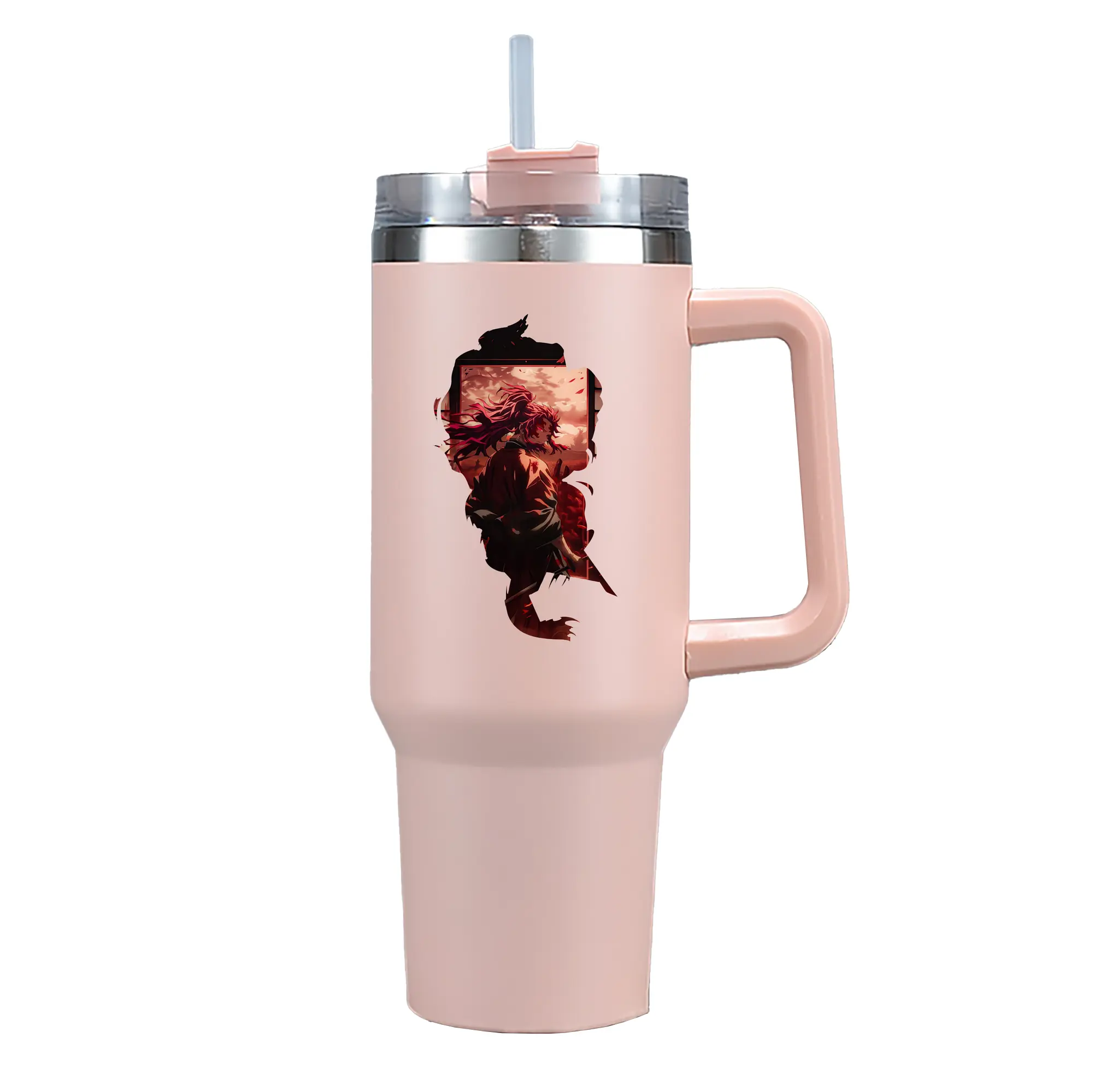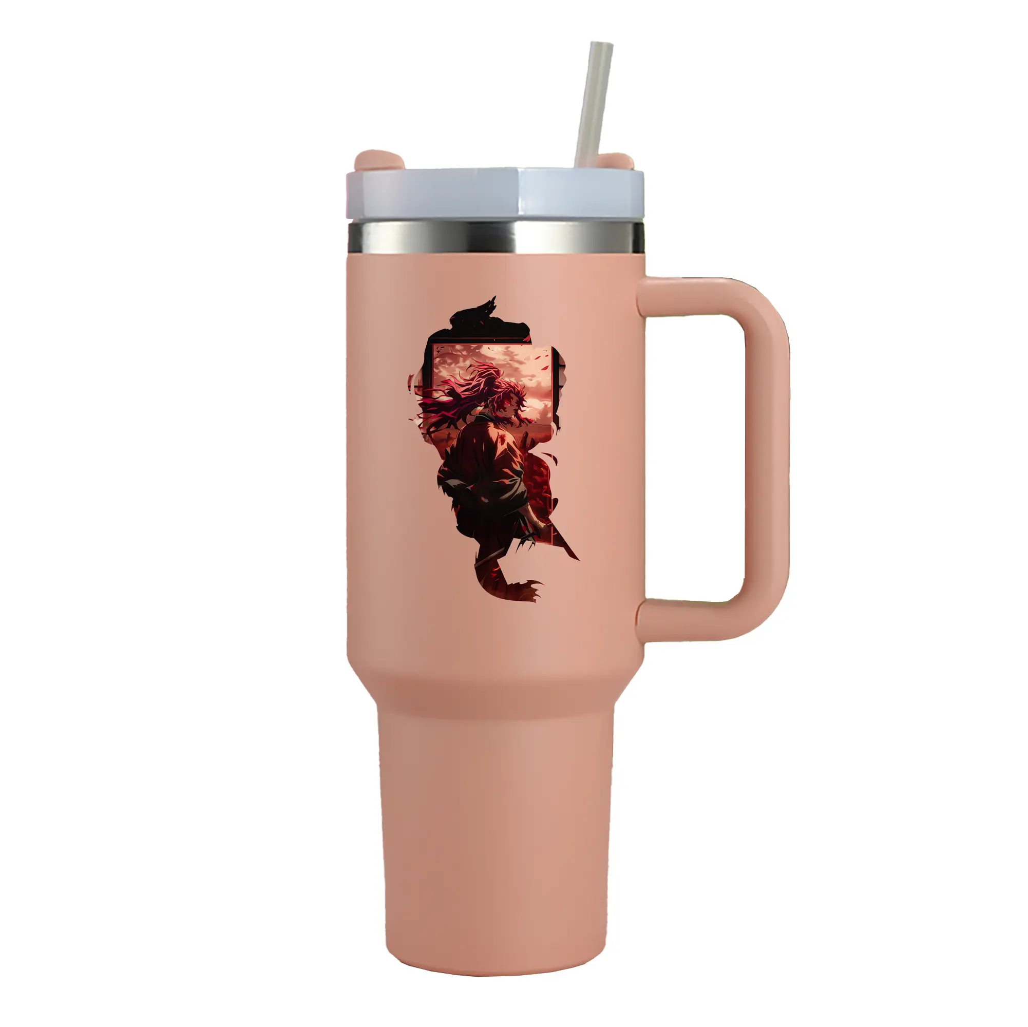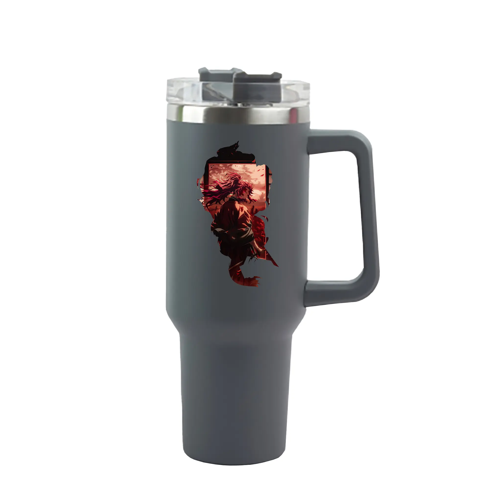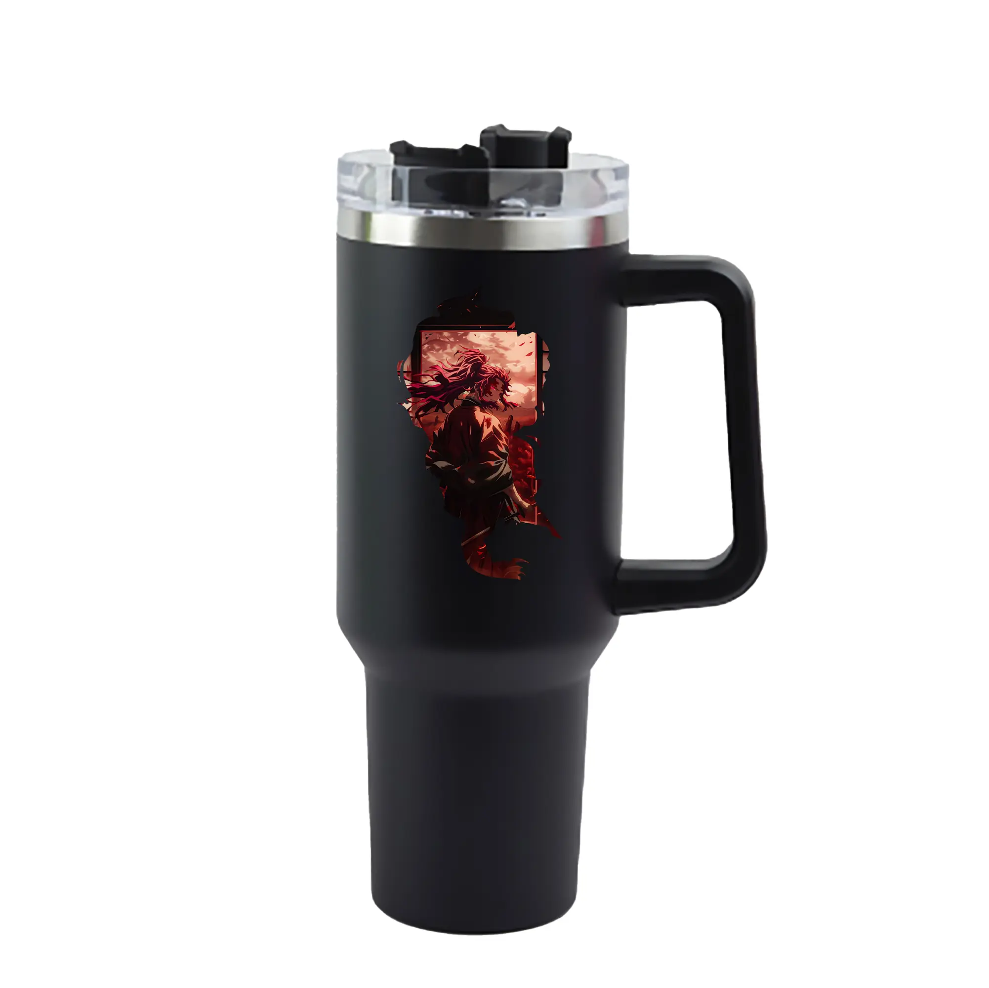 鬼滅の刃 グッズ,継国 縁壱 - 1200mL 車用タンブラー ・ クリスタルステッカー ・ 304ステンレス 内側 ・ 201ステンレス 外側 ・ 保温 保冷 ・ ハンドル&ストロー付き ・ 通勤 ドライブ アウトドア用
