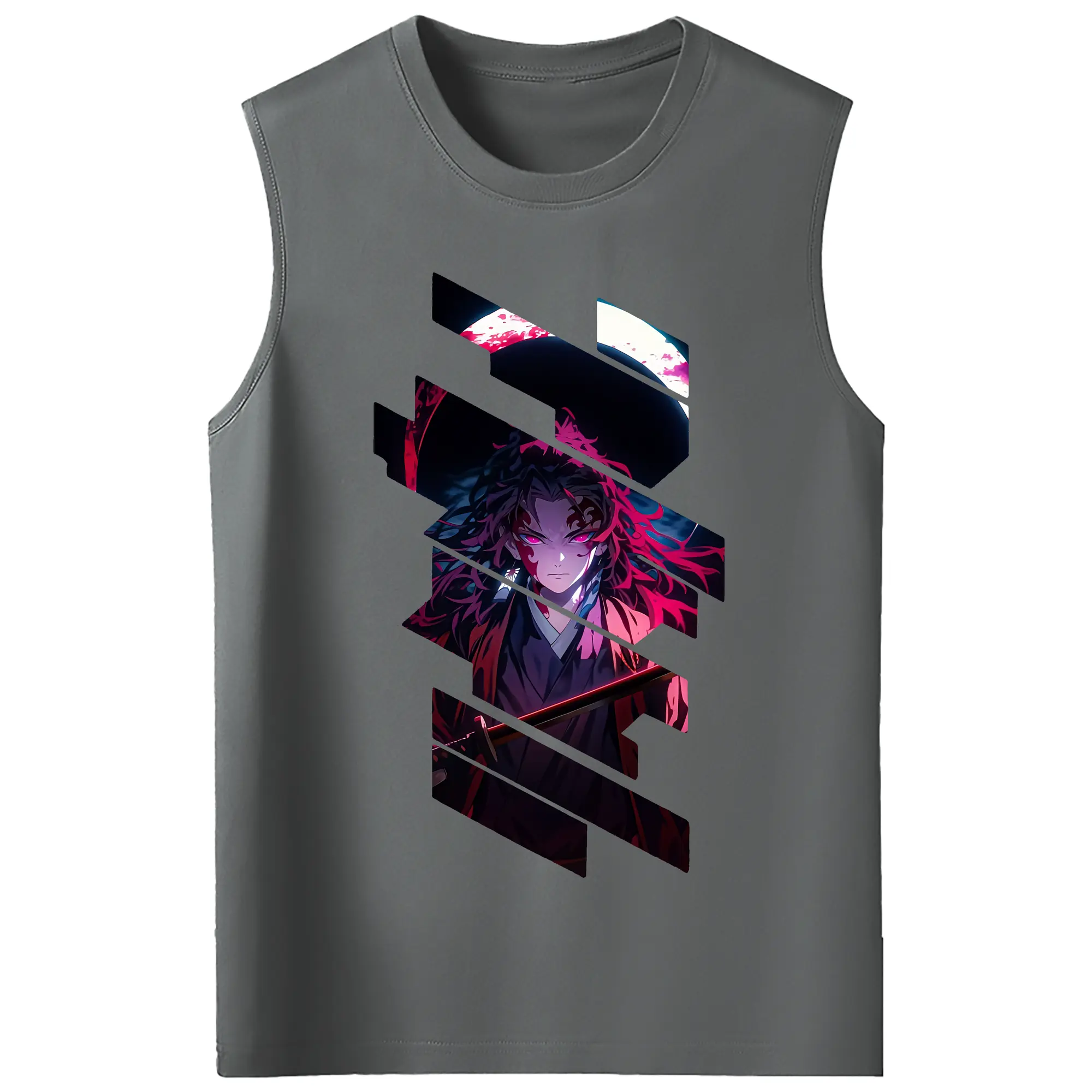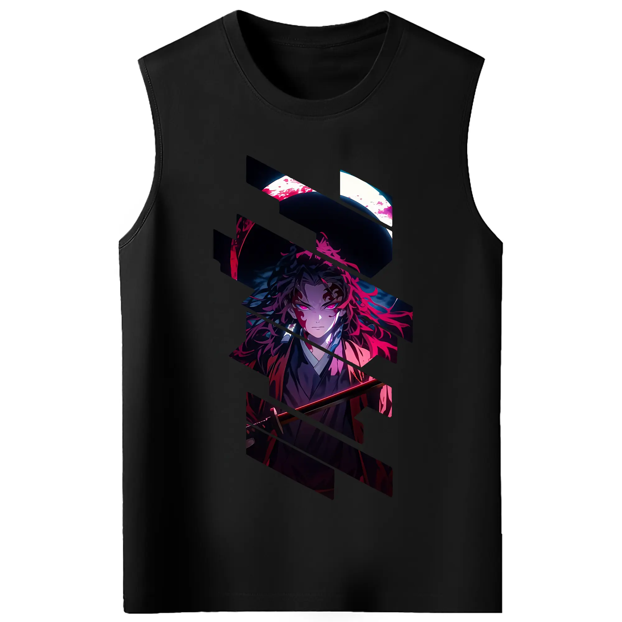 鬼滅の刃 グッズ,継国 縁壱 - コットン100% タンクトップ ・ フロントプリント ・ タイトフィット ・ 快適 通気性 ・ スポーツ カジュアル 散歩用