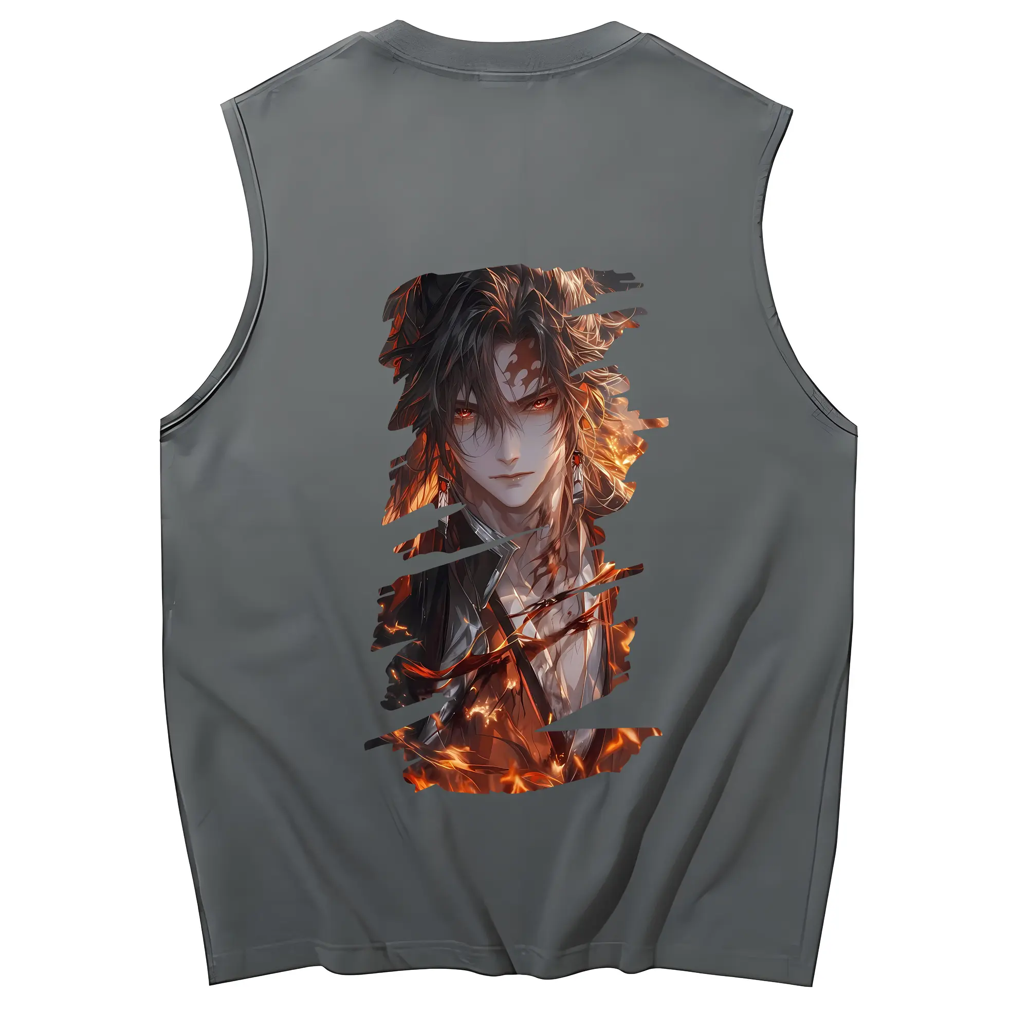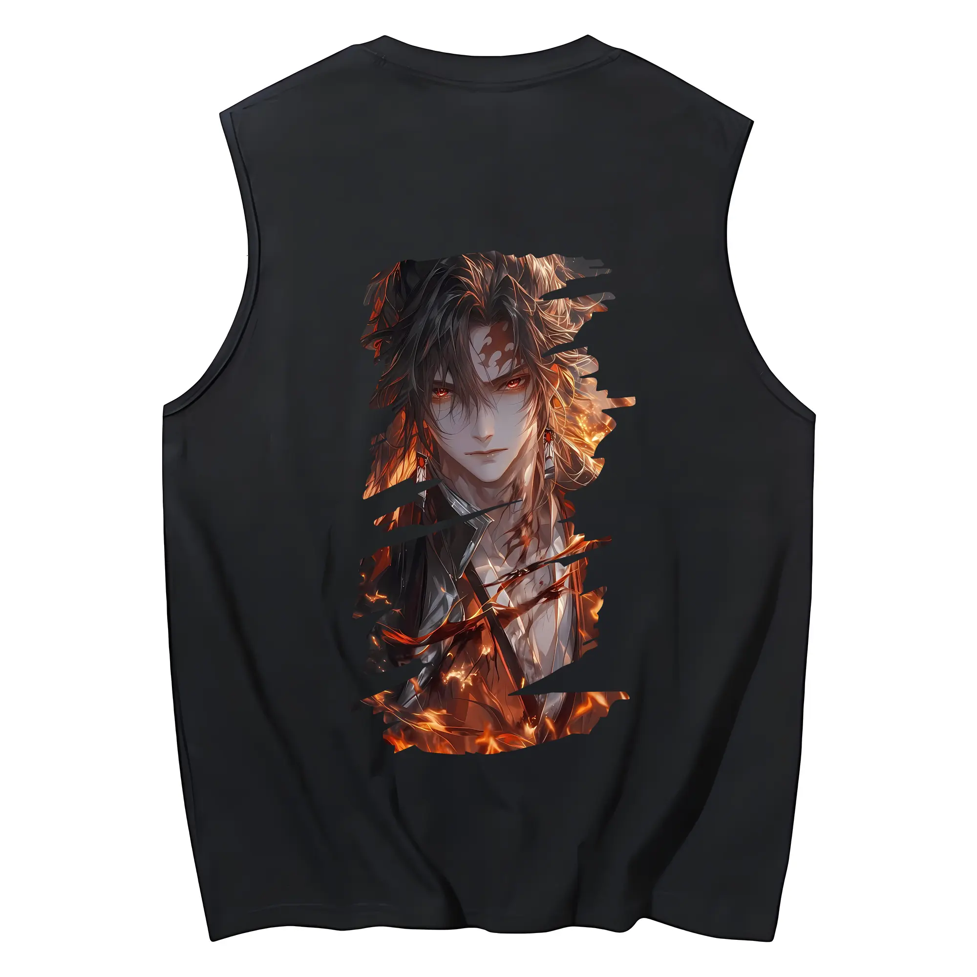 鬼滅の刃 グッズ,継国 縁壱 - コットン100% タンクトップ ・ 背面プリント ・ タイトシルエット ・ 快適 通気性 ・ スポーツ カジュアル 散歩用
