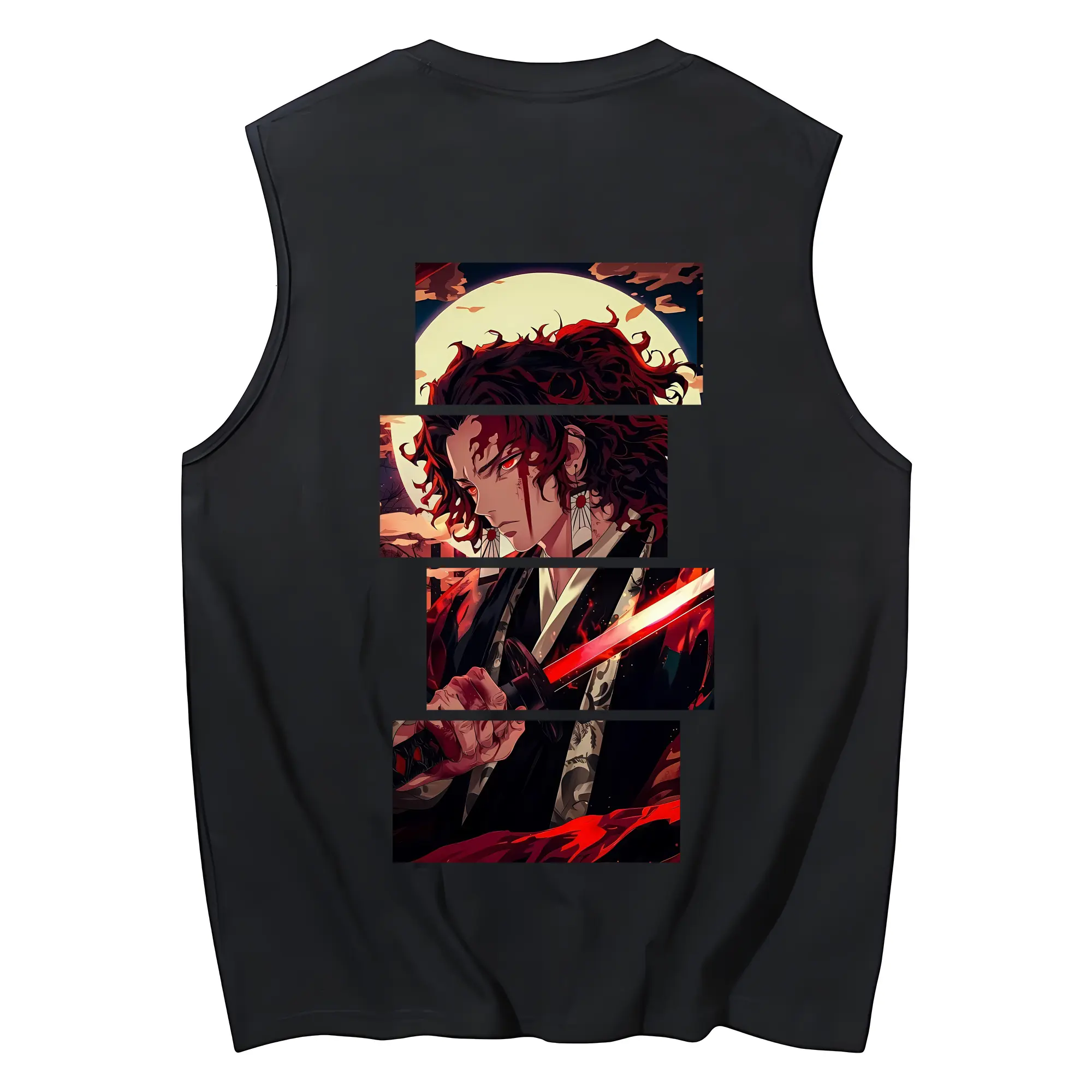 鬼滅の刃 グッズ,継国 縁壱 - コットン100% タンクトップ ・ 背面プリント ・ タイトシルエット ・ 快適 通気性 ・ スポーツ カジュアル 散歩用