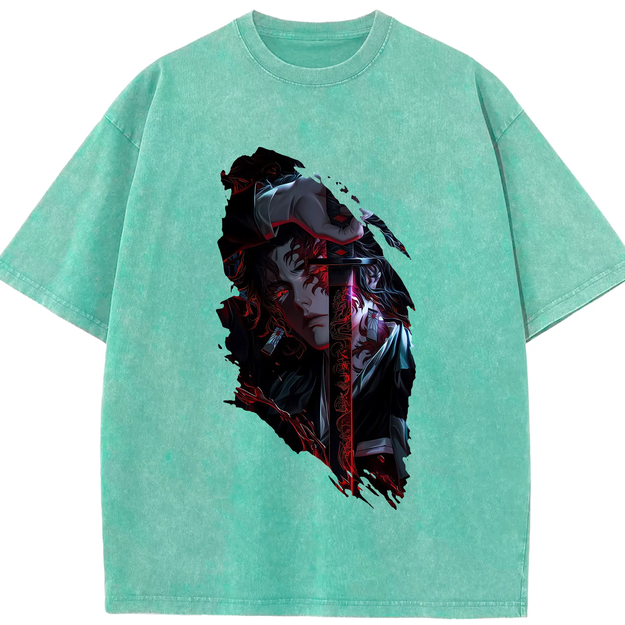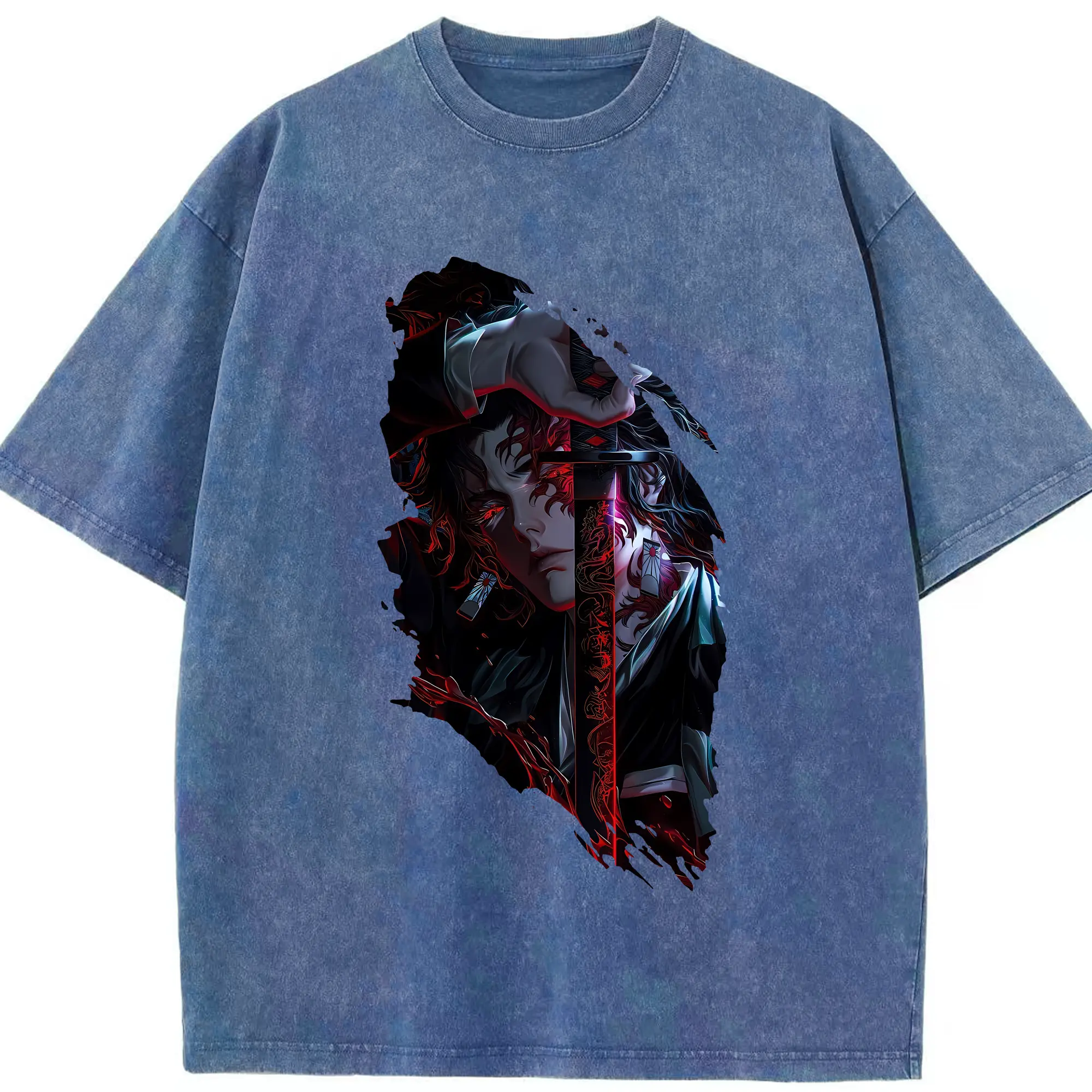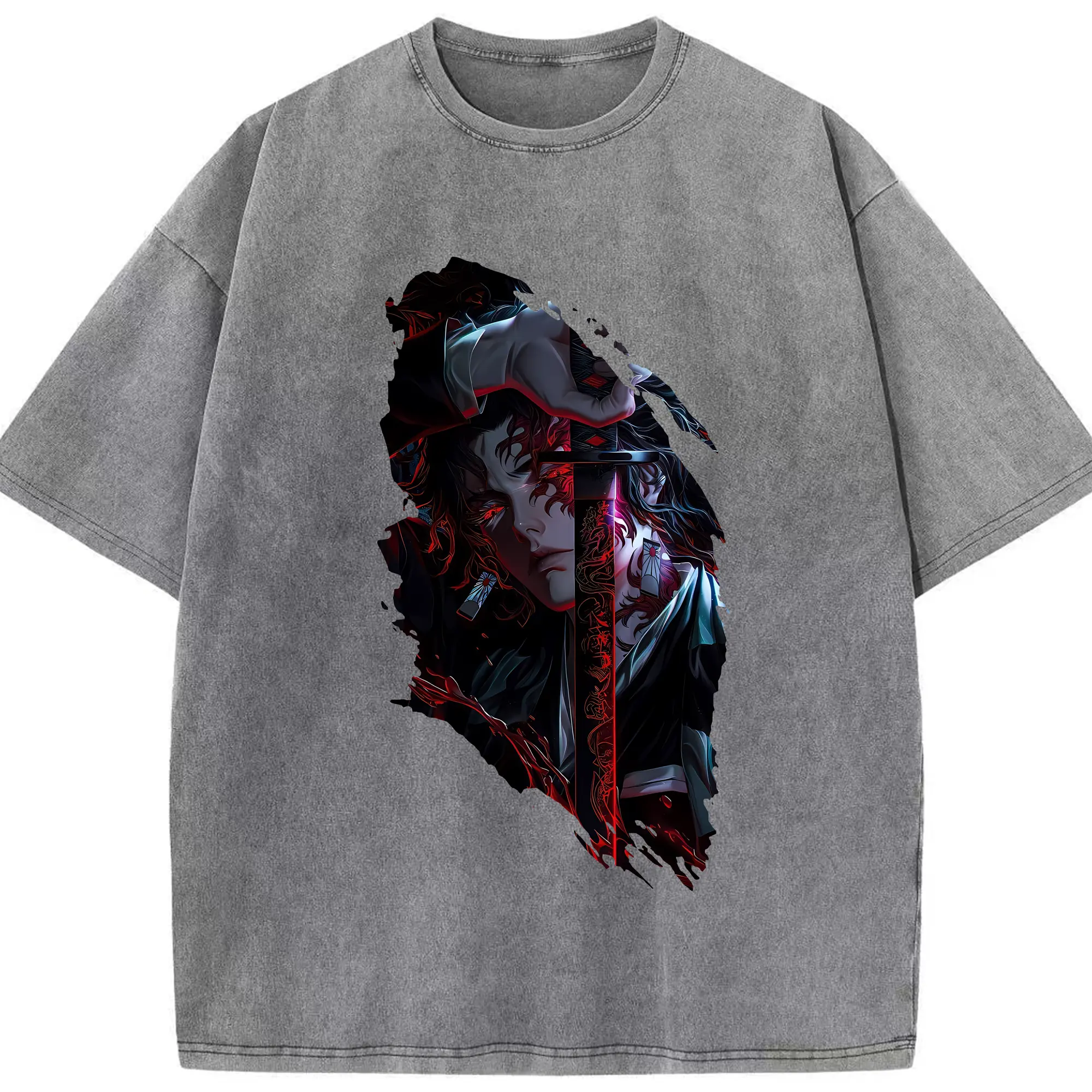 鬼滅の刃 グッズ,冨岡 義勇 - 綿100% ヴィンテージ風 半袖Tシャツ ・ フロントプリント ・ 柔らか肌触り ・ 通気性 快適 ・ スポーツ カジュアル 外出用