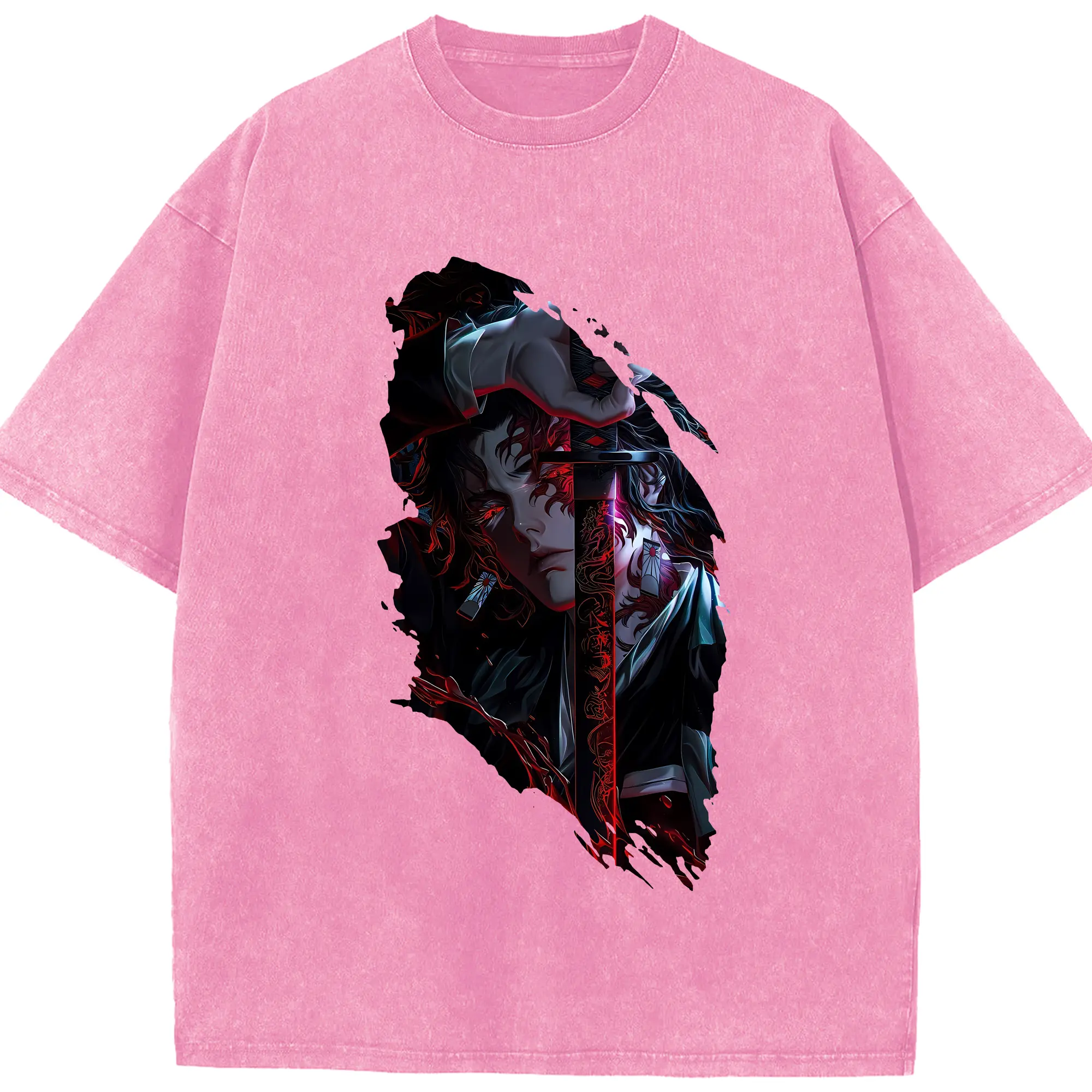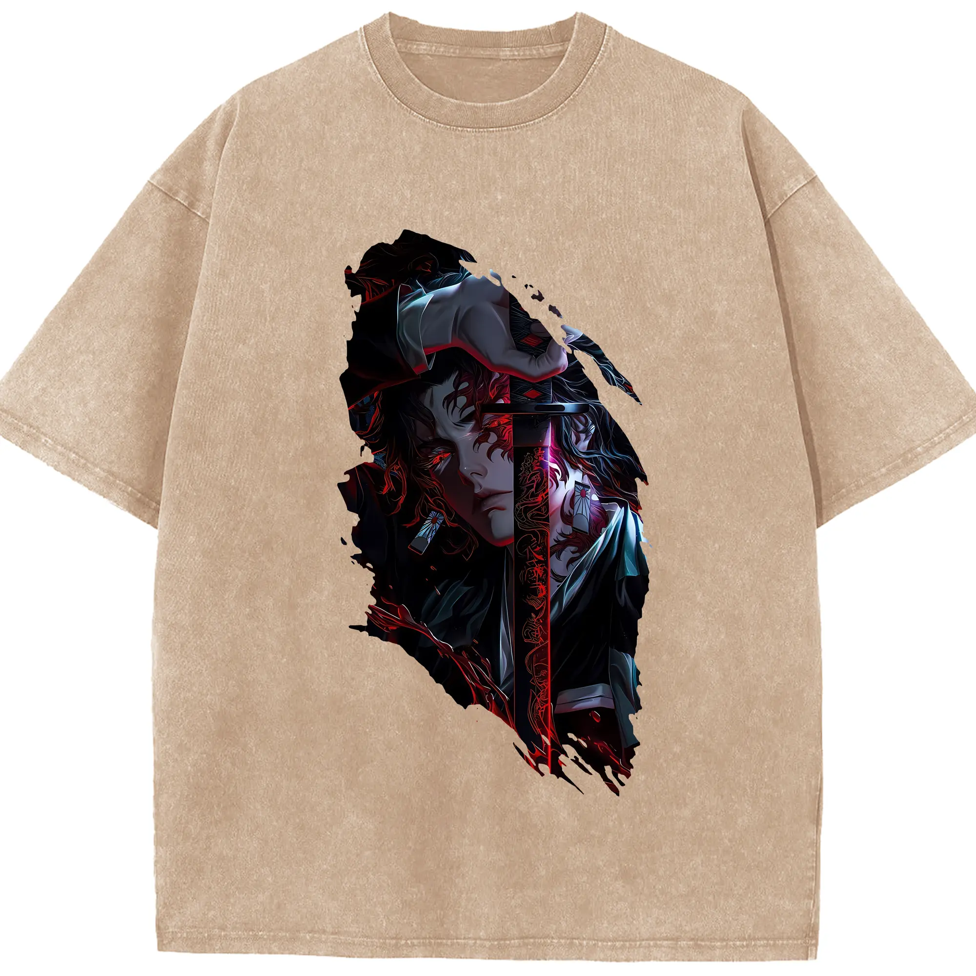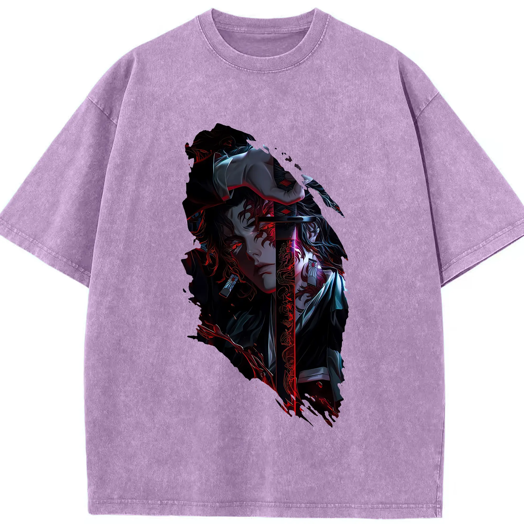 鬼滅の刃 グッズ,冨岡 義勇 - 綿100% ヴィンテージ風 半袖Tシャツ ・ フロントプリント ・ 柔らか肌触り ・ 通気性 快適 ・ スポーツ カジュアル 外出用