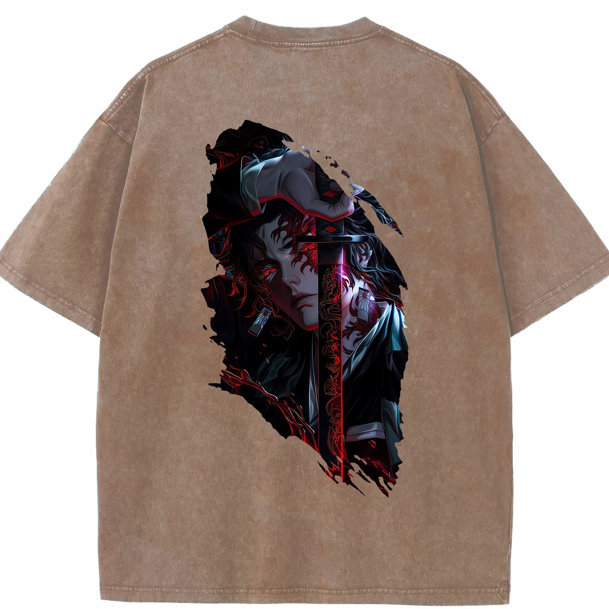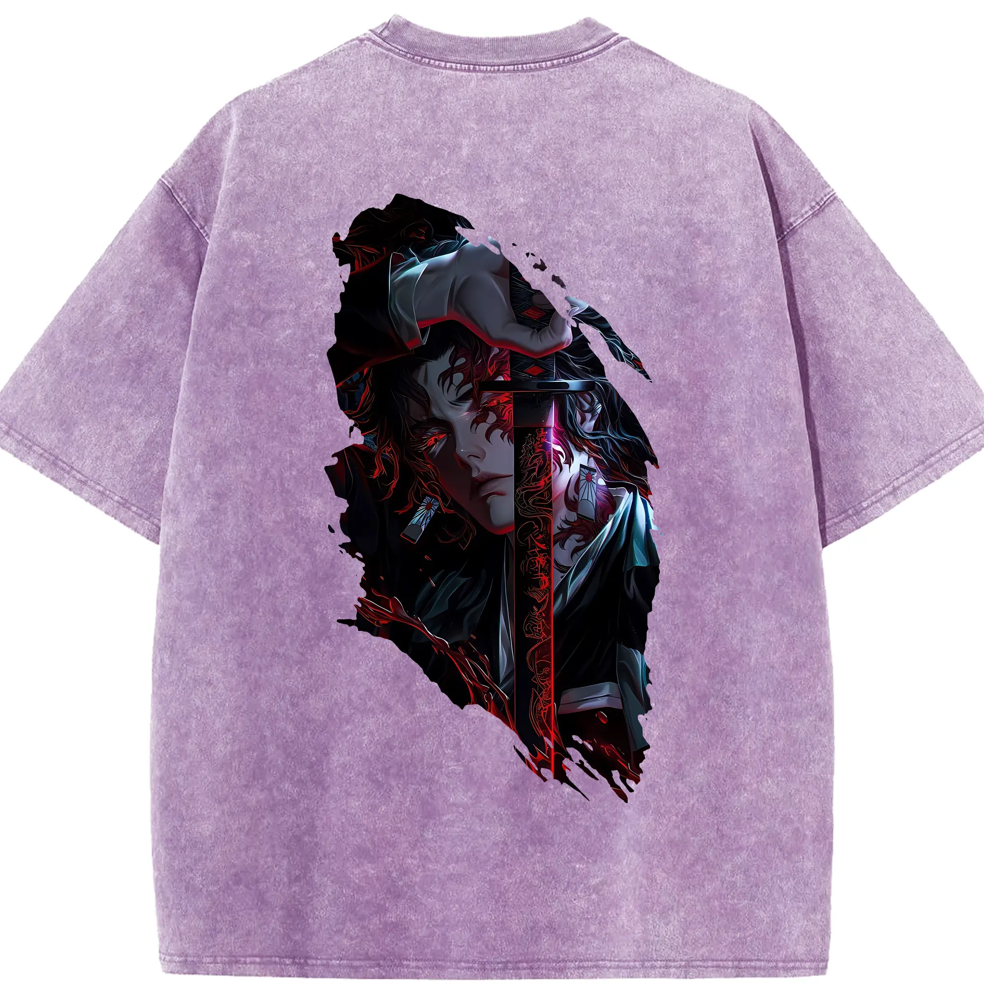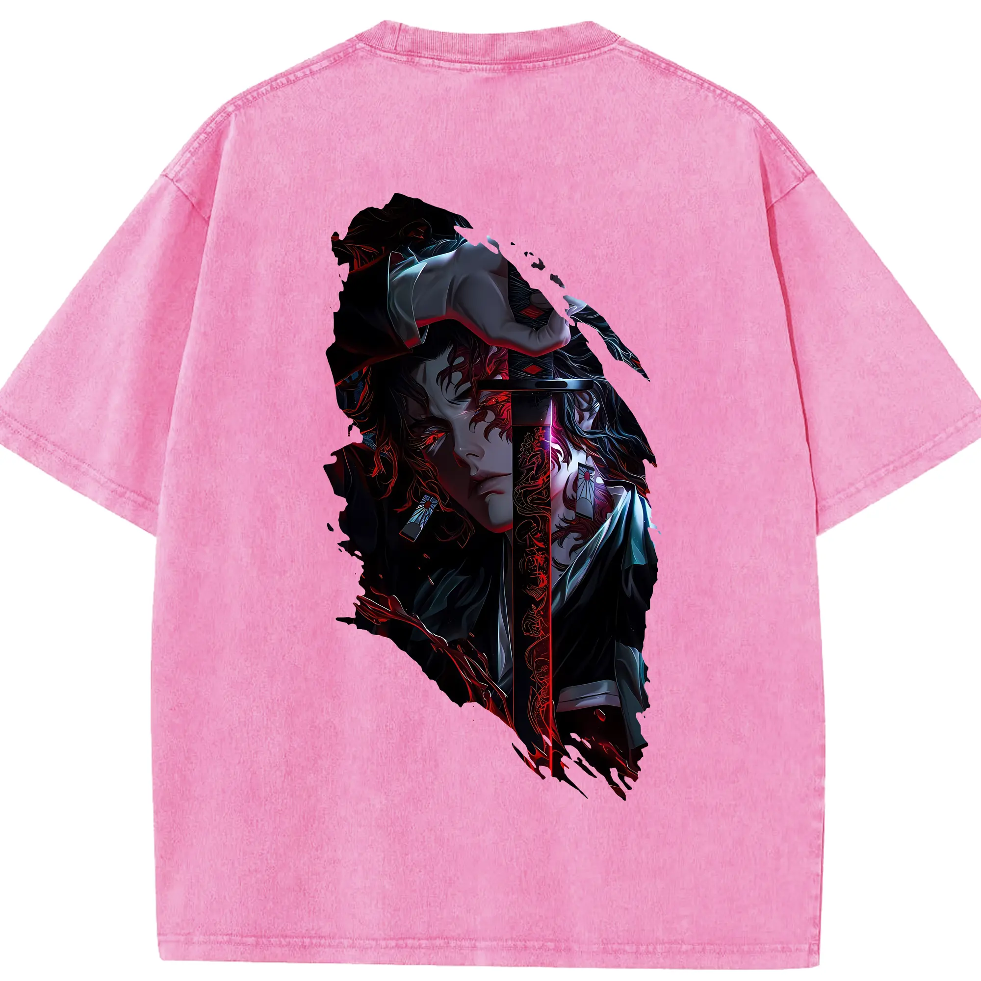 ブリーチ グッズ 黒崎 一護 - 綿100% ヴィンテージ風 半袖Tシャツ ・ 背面プリント ・ 柔らか肌触り ・ 通気性 快適 ・ スポーツ カジュアル 外出用