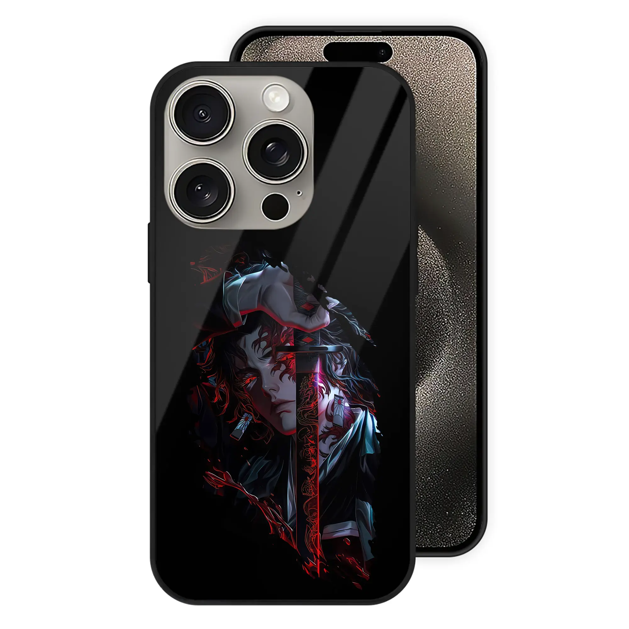 鬼滅の刃 グッズ,継国 縁壱 - IPhone15Pro対応 ・ スマホケース ・ 背面ガラス ・ TPU+強化ガラス ・ 耐衝撃 ・ 黄変防止 ・ ワイヤレス充電対応 ・ 3D立体ボタン