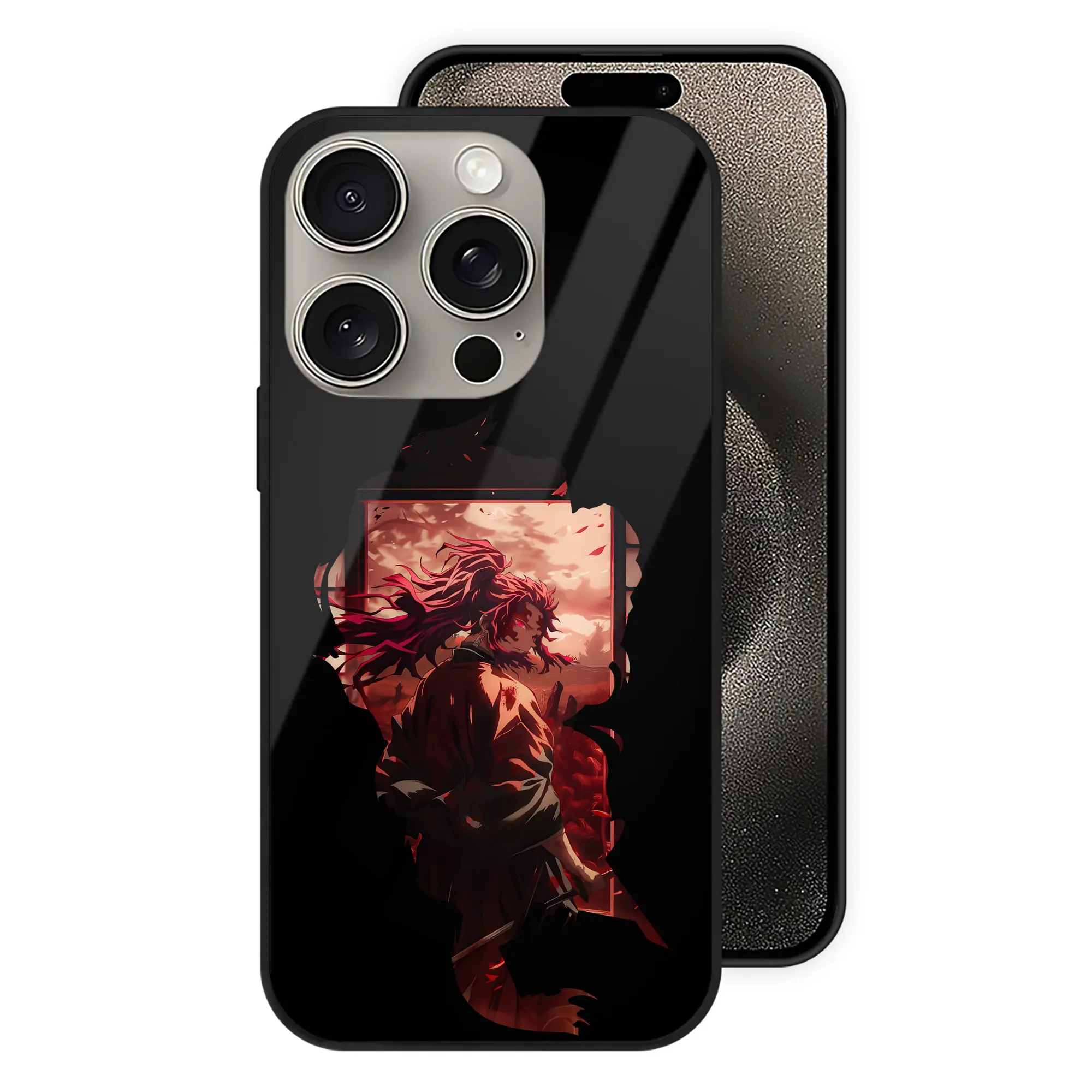 鬼滅の刃 グッズ,継国 縁壱 - IPhone15Pro対応 ・ スマホケース ・ 背面ガラス ・ TPU+強化ガラス ・ 耐衝撃 ・ 黄変防止 ・ ワイヤレス充電対応 ・ 3D立体ボタン
