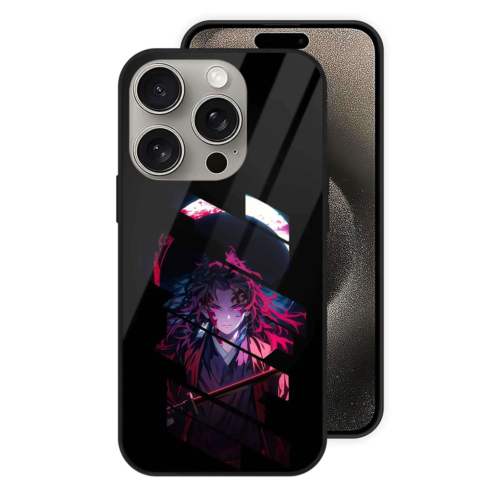 鬼滅の刃 グッズ,継国 縁壱 - IPhone15Pro対応 ・ スマホケース ・ 背面ガラス ・ TPU+強化ガラス ・ 耐衝撃 ・ 黄変防止 ・ ワイヤレス充電対応 ・ 3D立体ボタン