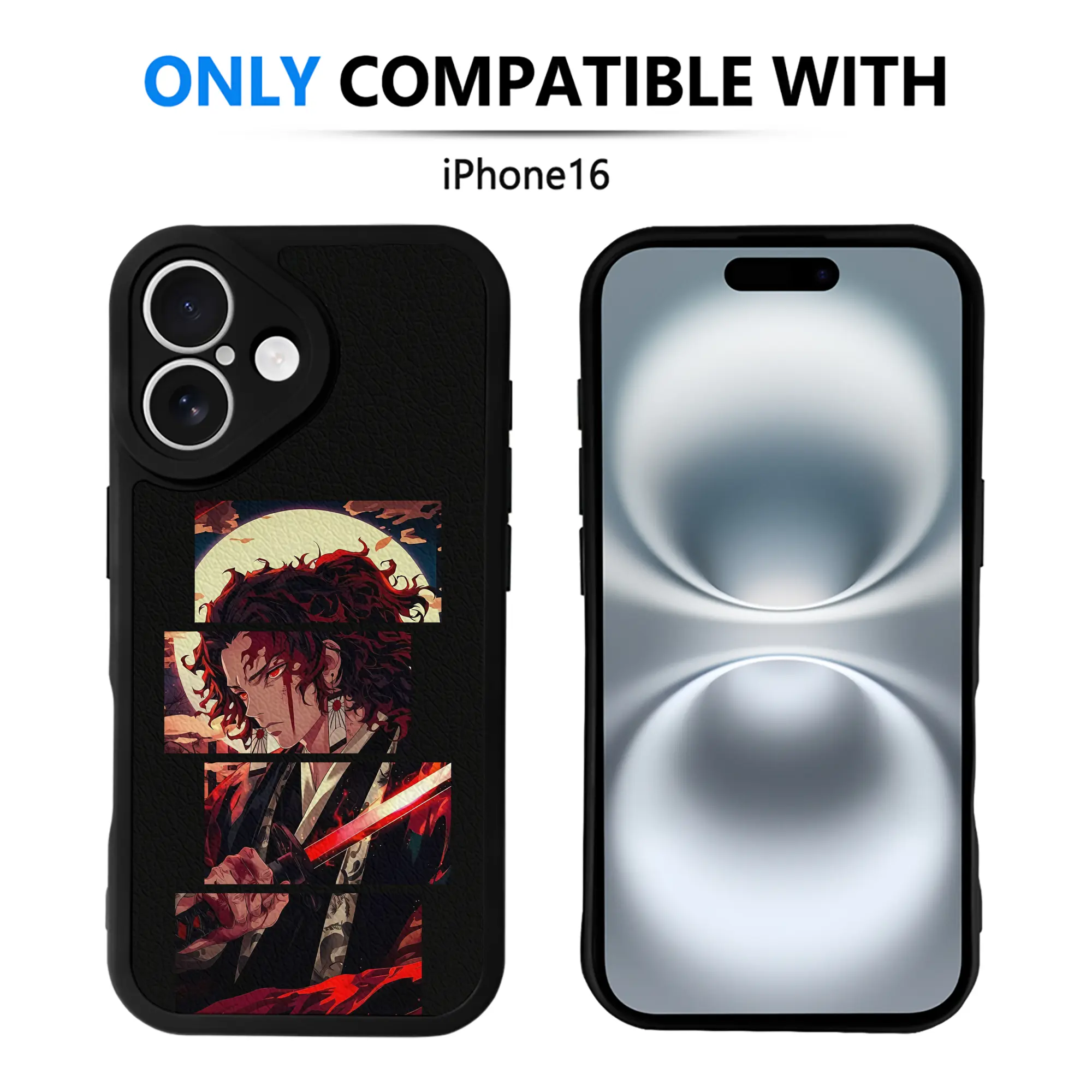 鬼滅の刃 グッズ,継国 縁壱 - IPhone 16シリーズ対応 ・ シリコンスマホケース ・ レザー調 ・ 高精度フィット ・ 耐衝撃 ・ ワイヤレス充電対応 ・ 精密カット