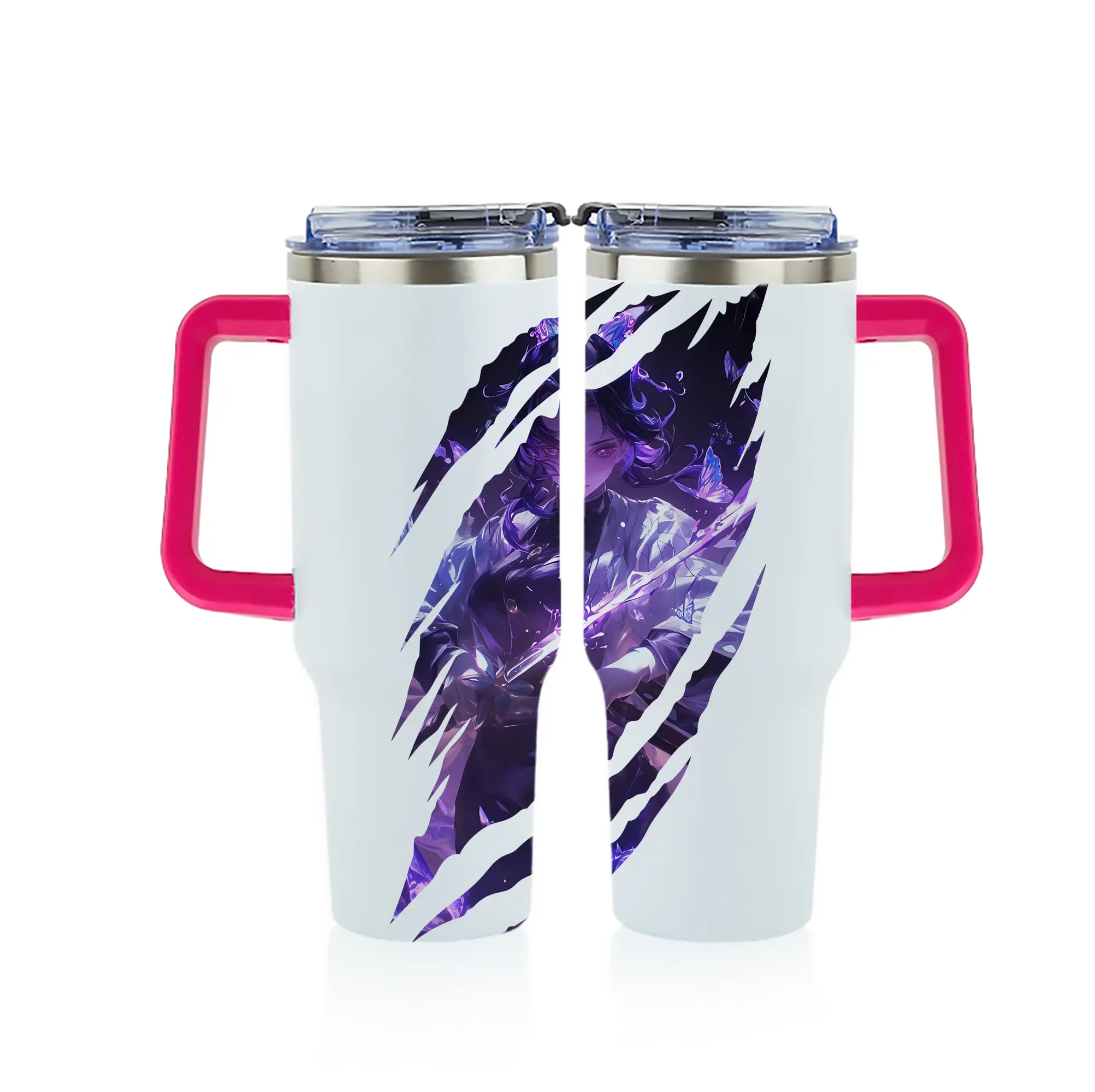 鬼滅の刃 グッズ,胡蝶 しのぶ - 1200mL フルプリント車用タンブラー ・ 304ステンレス 内側 ・ 201ステンレス 外側 ・ 保温 保冷 ・ 通勤 ドライブ アウトドア用