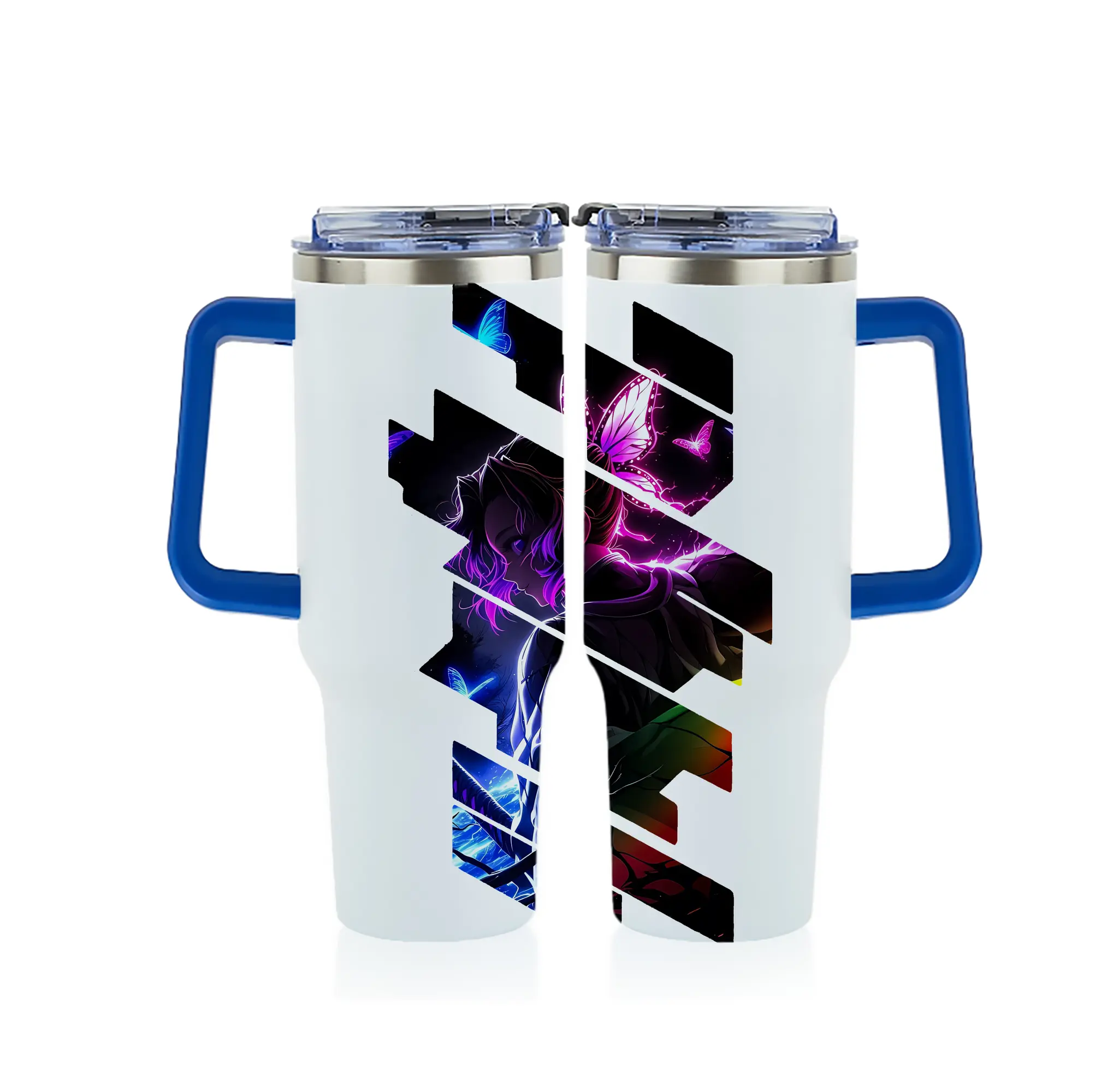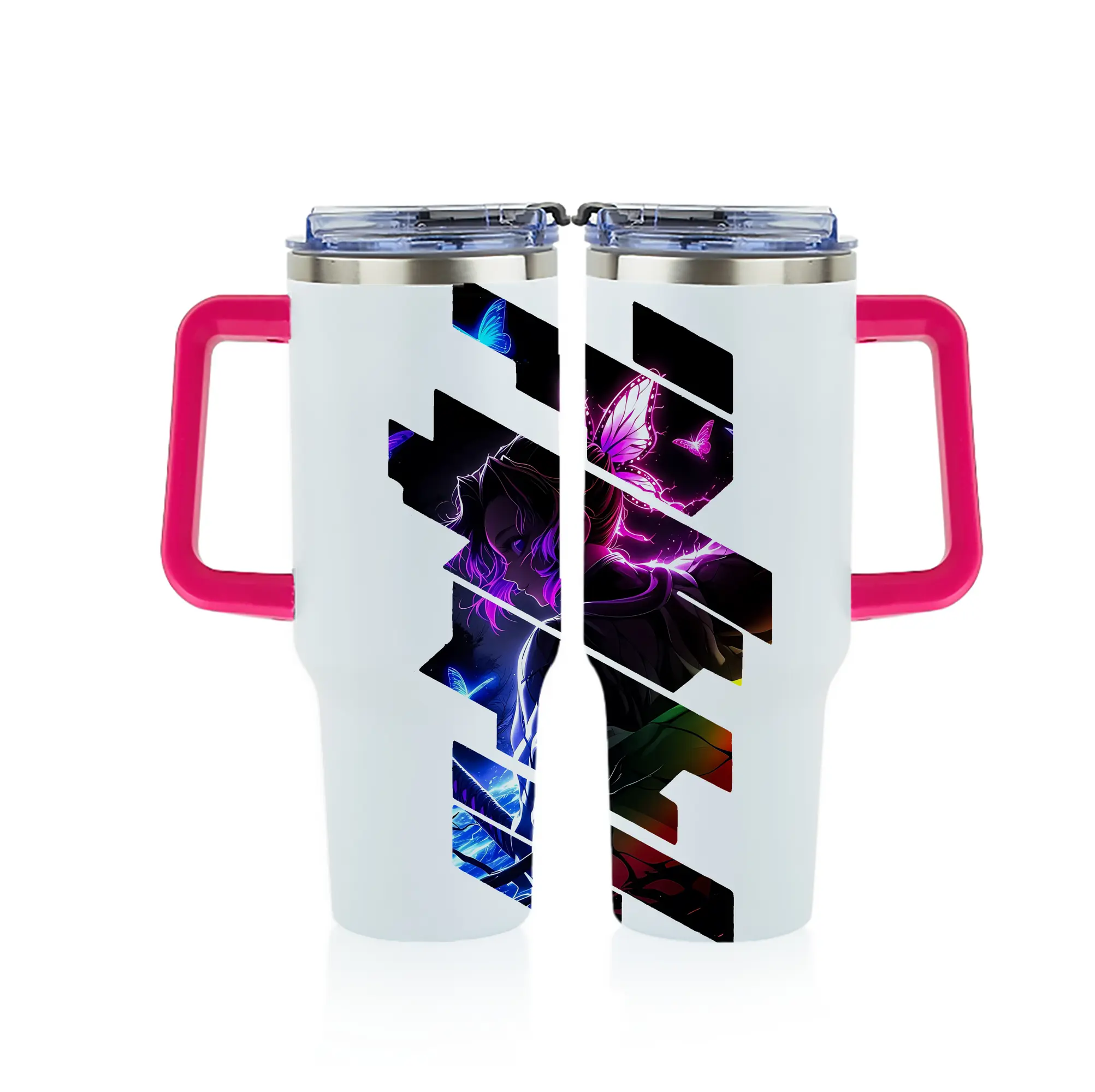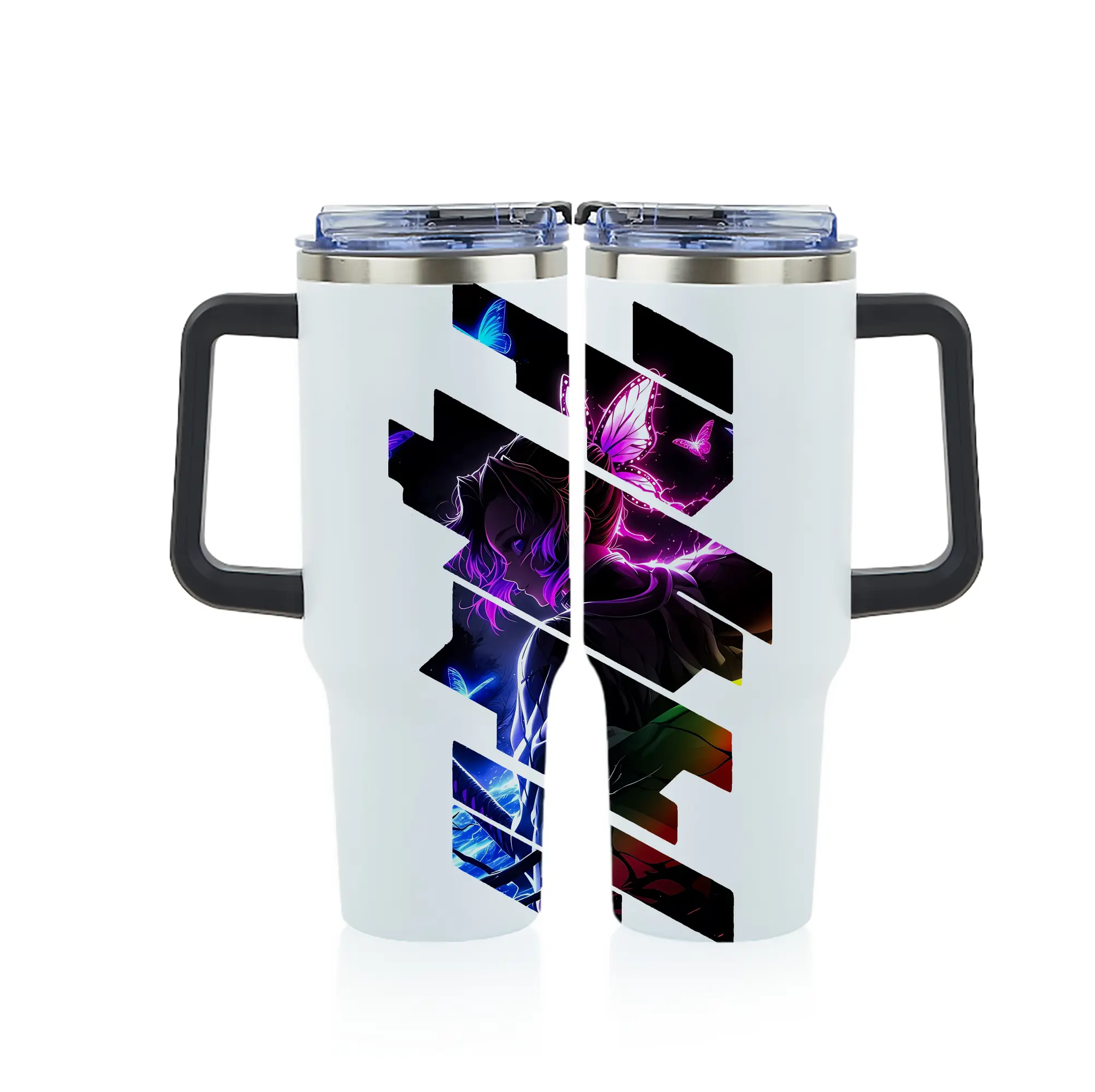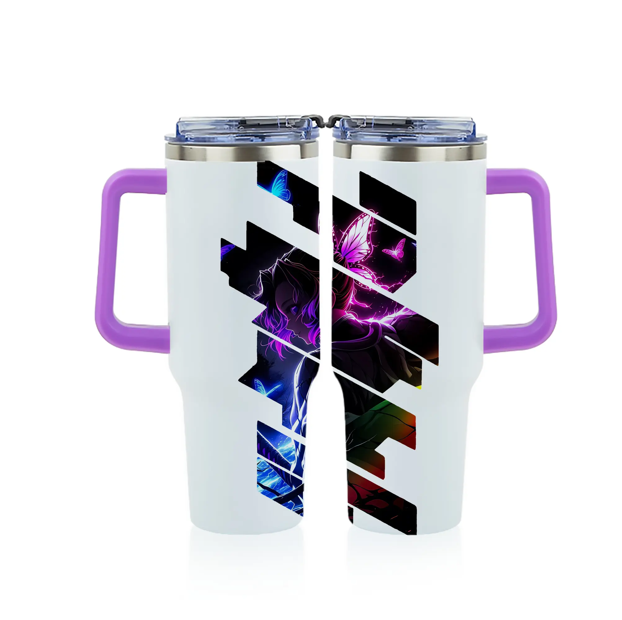 鬼滅の刃 グッズ,胡蝶 しのぶ - 1200mL フルプリント車用タンブラー ・ 304ステンレス 内側 ・ 201ステンレス 外側 ・ 保温 保冷 ・ 通勤 ドライブ アウトドア用