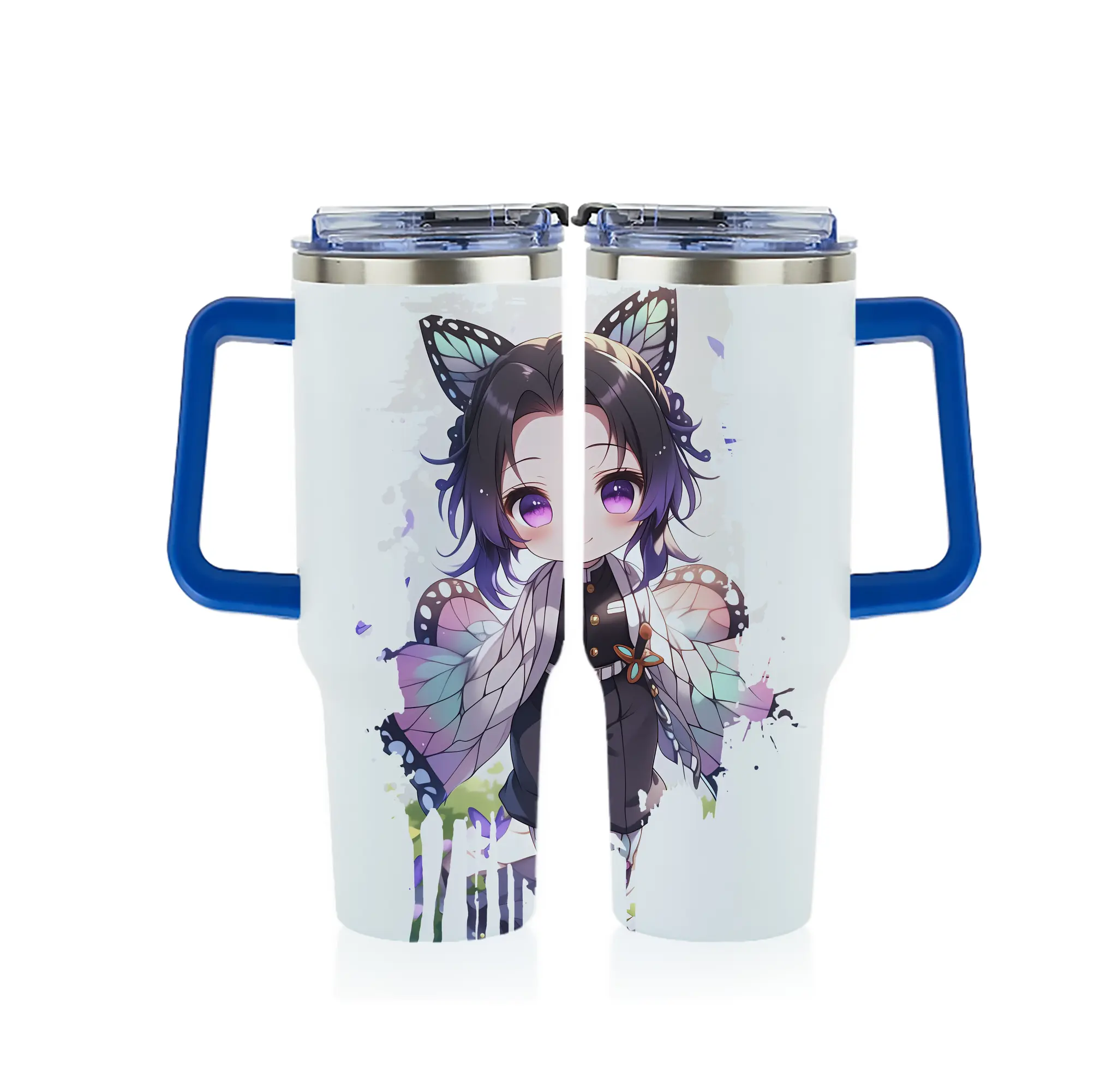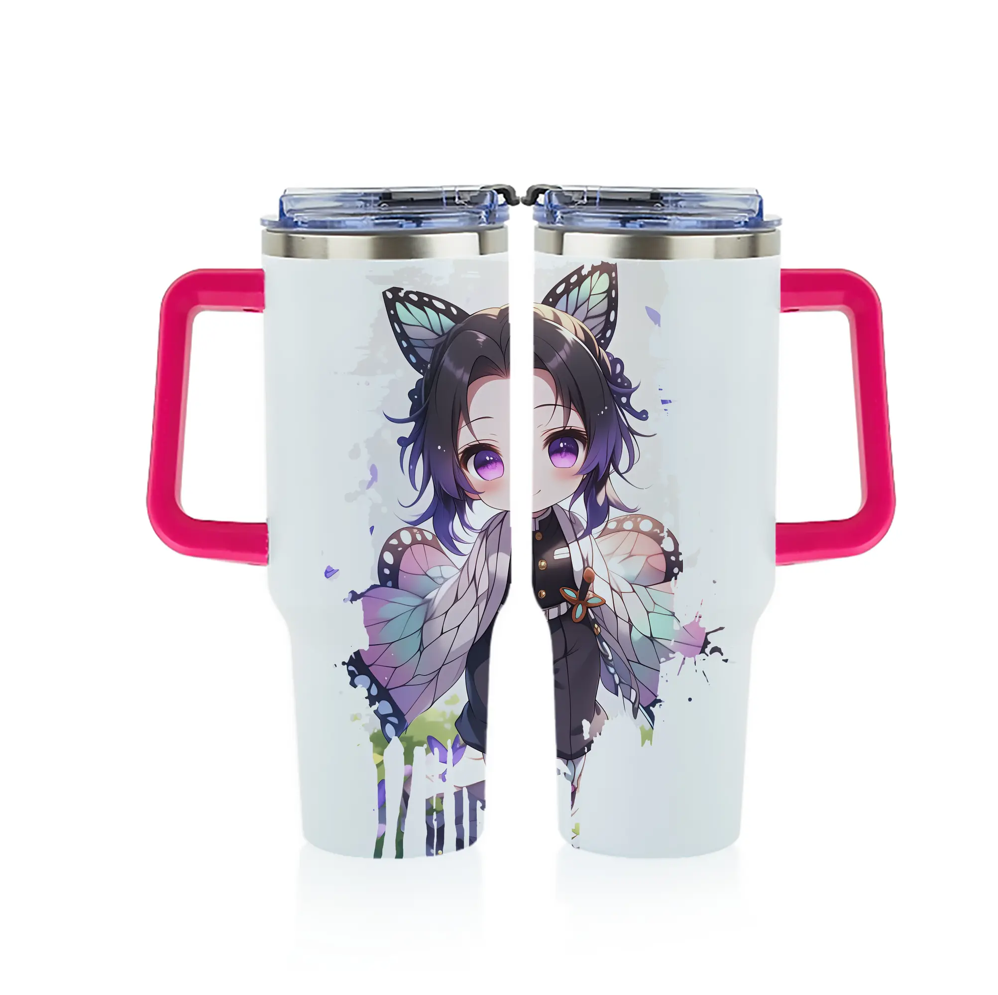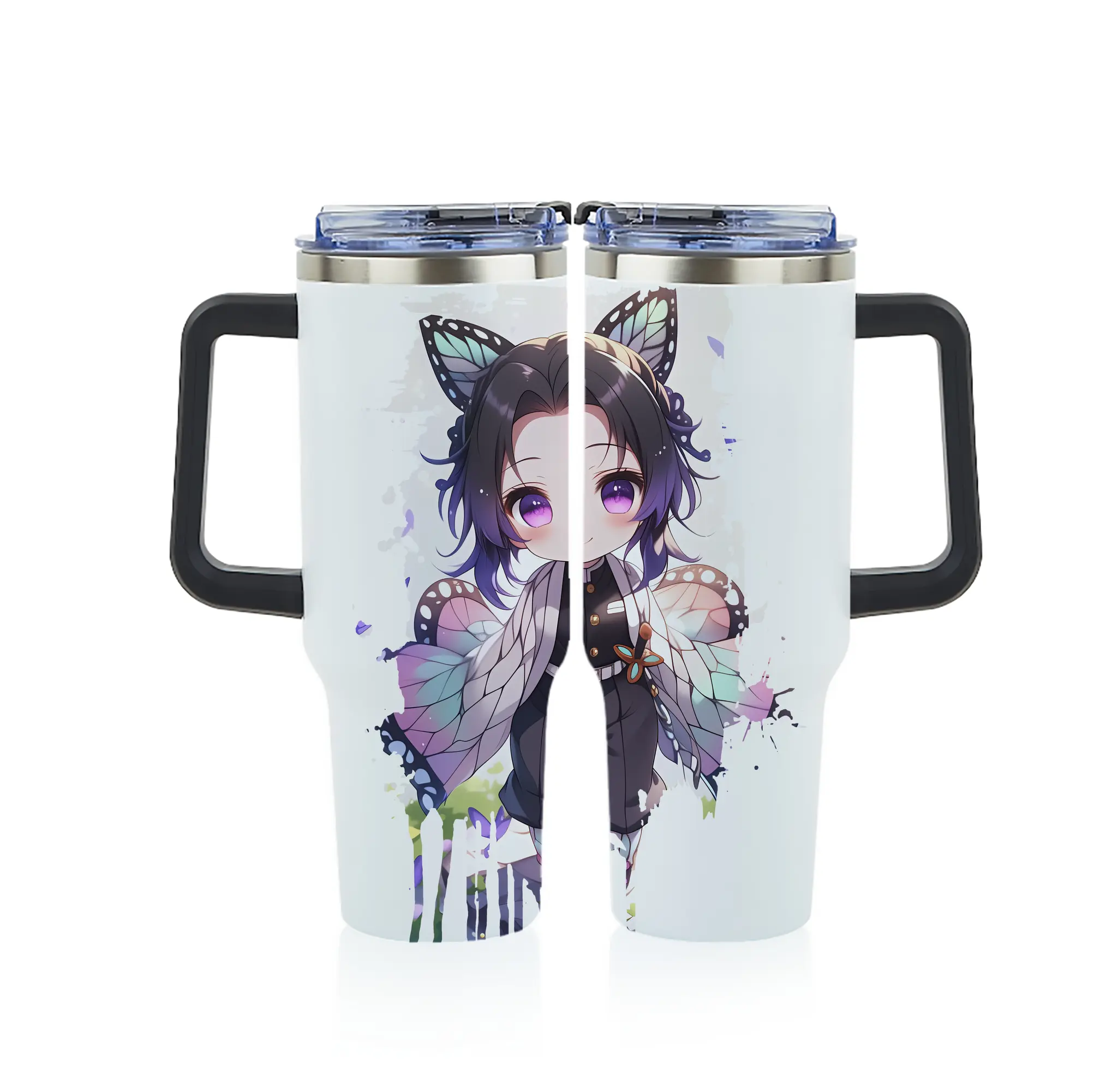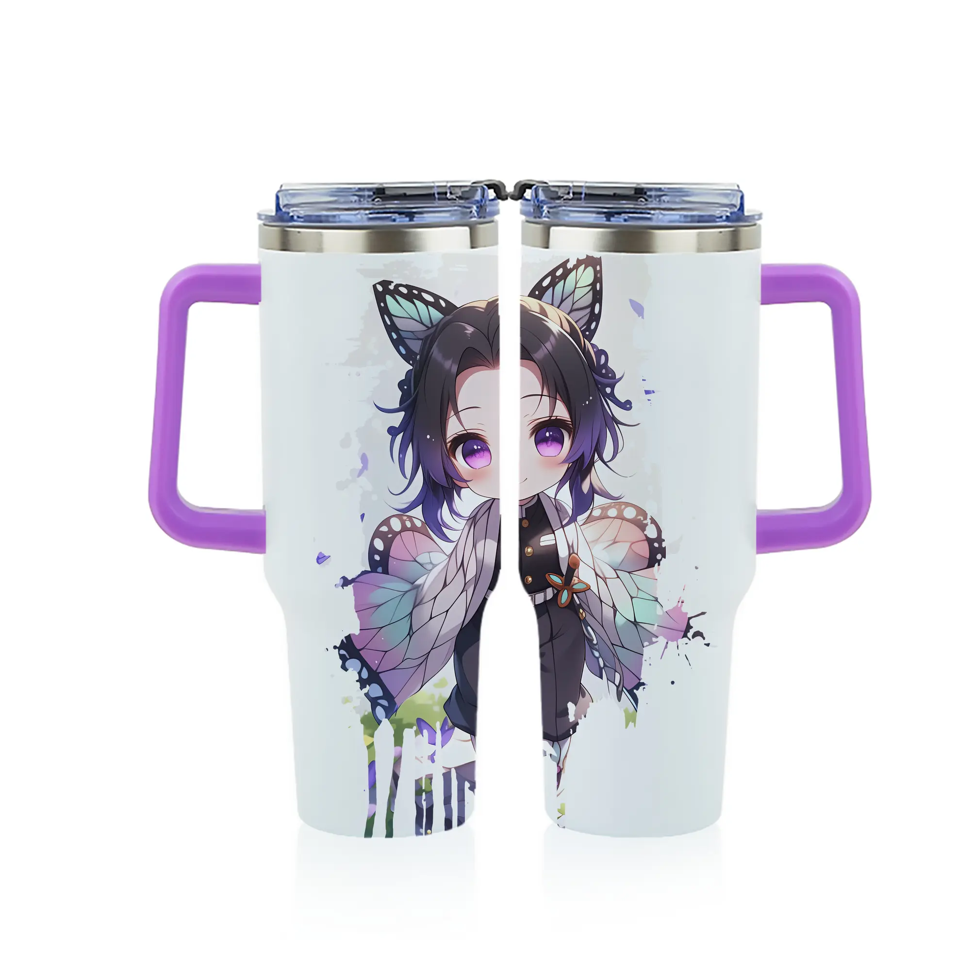 鬼滅の刃 グッズ,胡蝶 しのぶ - 1200mL フルプリント車用タンブラー ・ 304ステンレス 内側 ・ 201ステンレス 外側 ・ 保温 保冷 ・ 通勤 ドライブ アウトドア用