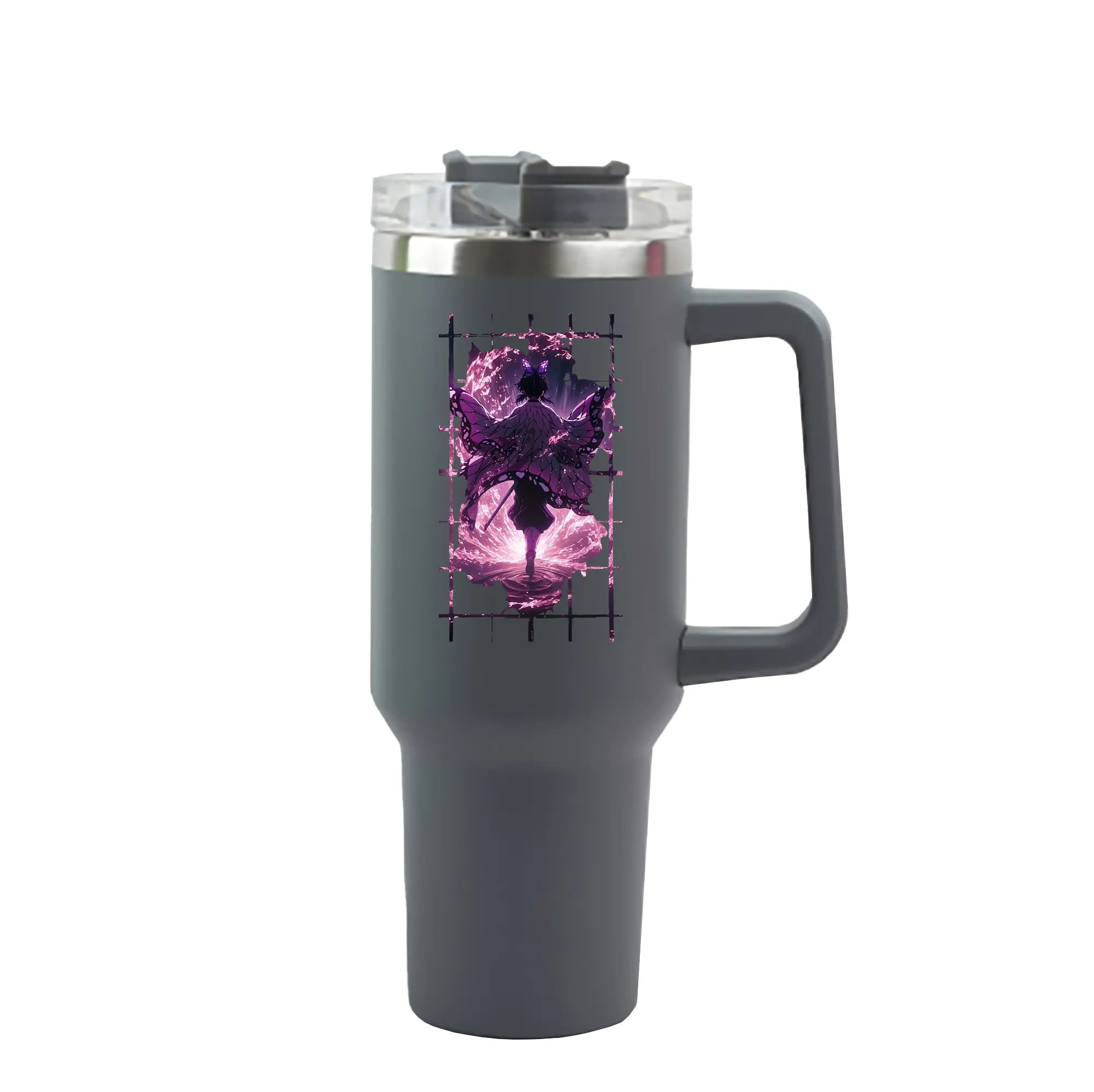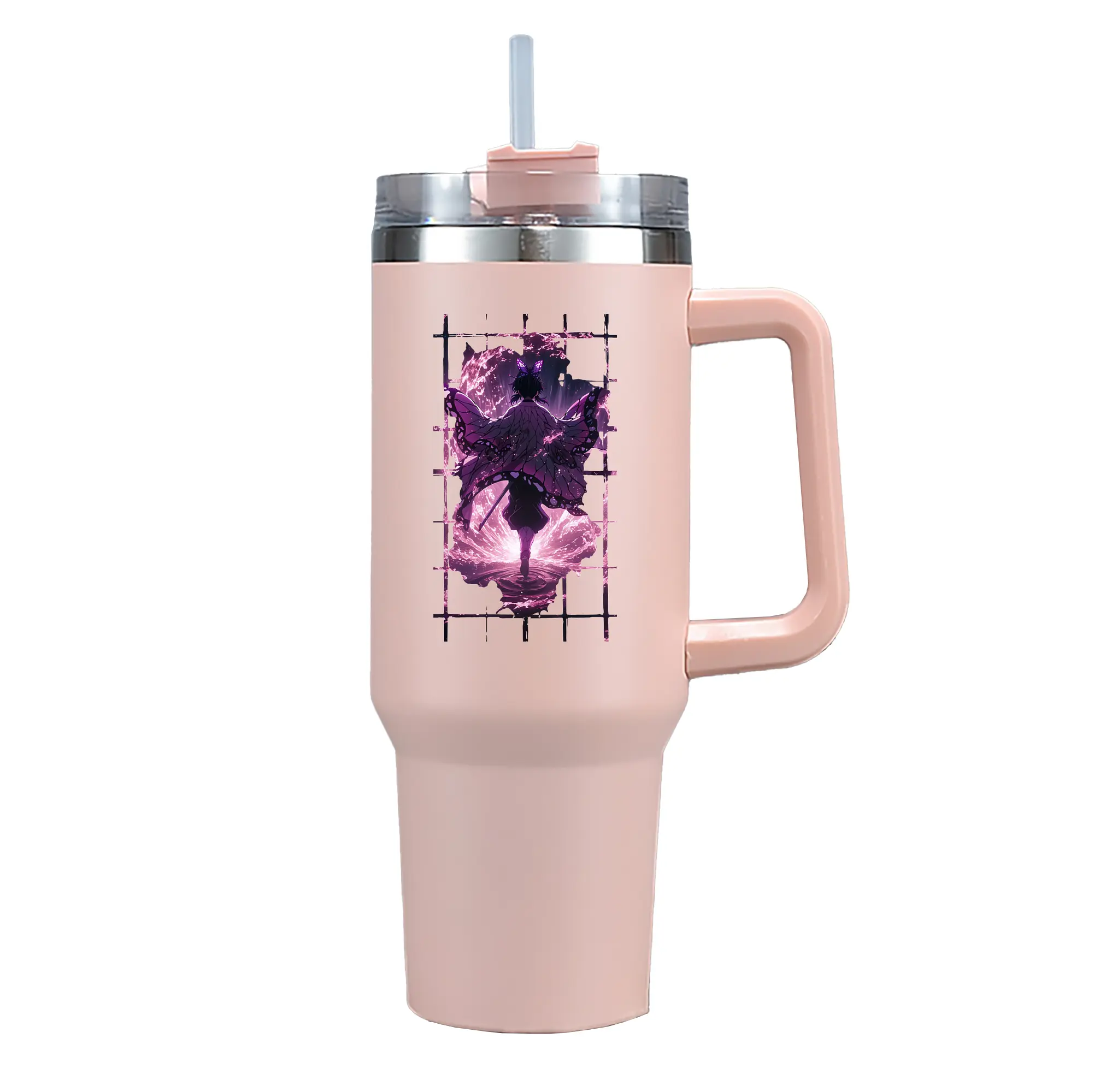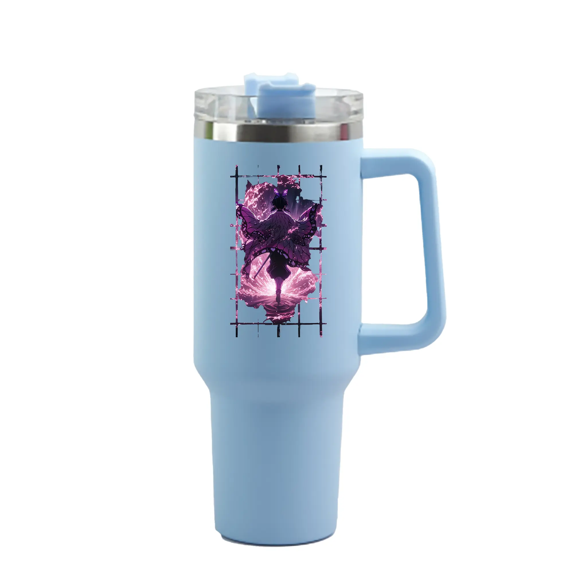 鬼滅の刃 グッズ,胡蝶 しのぶ - 1200mL 車用タンブラー ・ クリスタルステッカー ・ 304ステンレス 内側 ・ 201ステンレス 外側 ・ 保温 保冷 ・ ハンドル&ストロー付き ・ 通勤 ドライブ アウトドア用