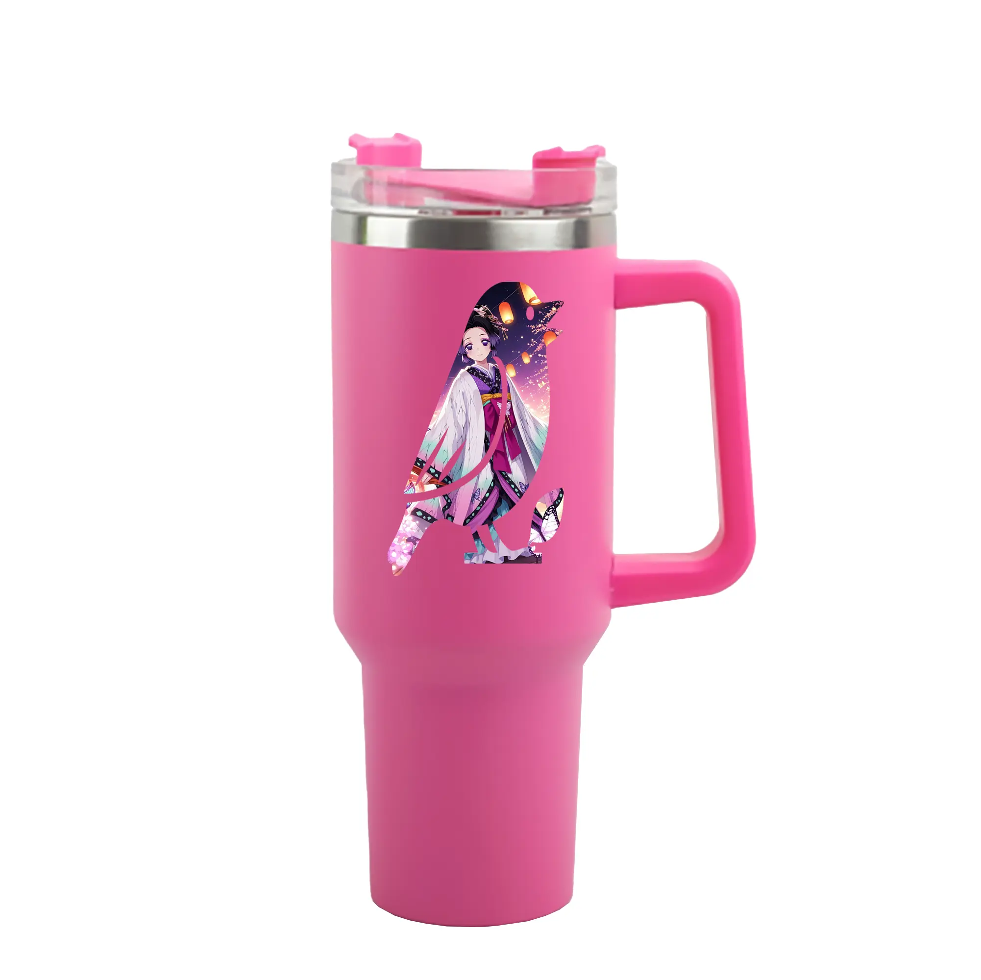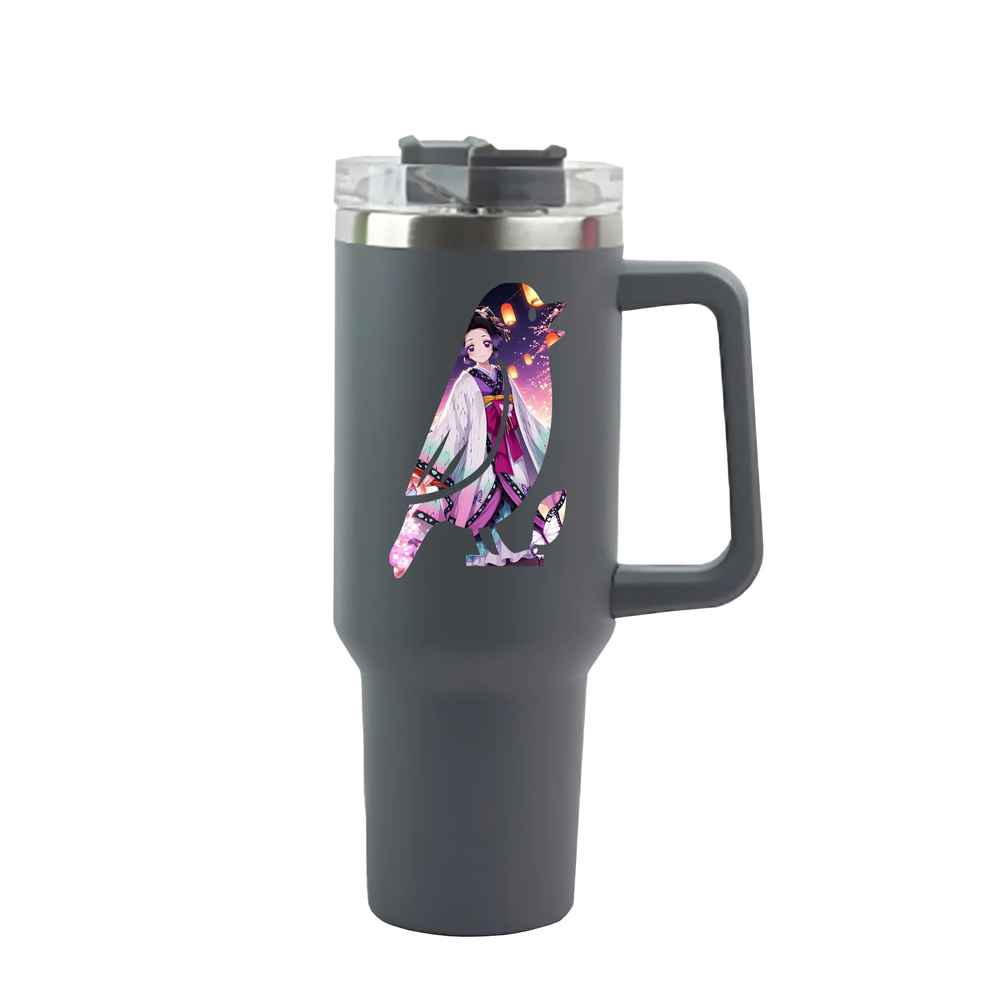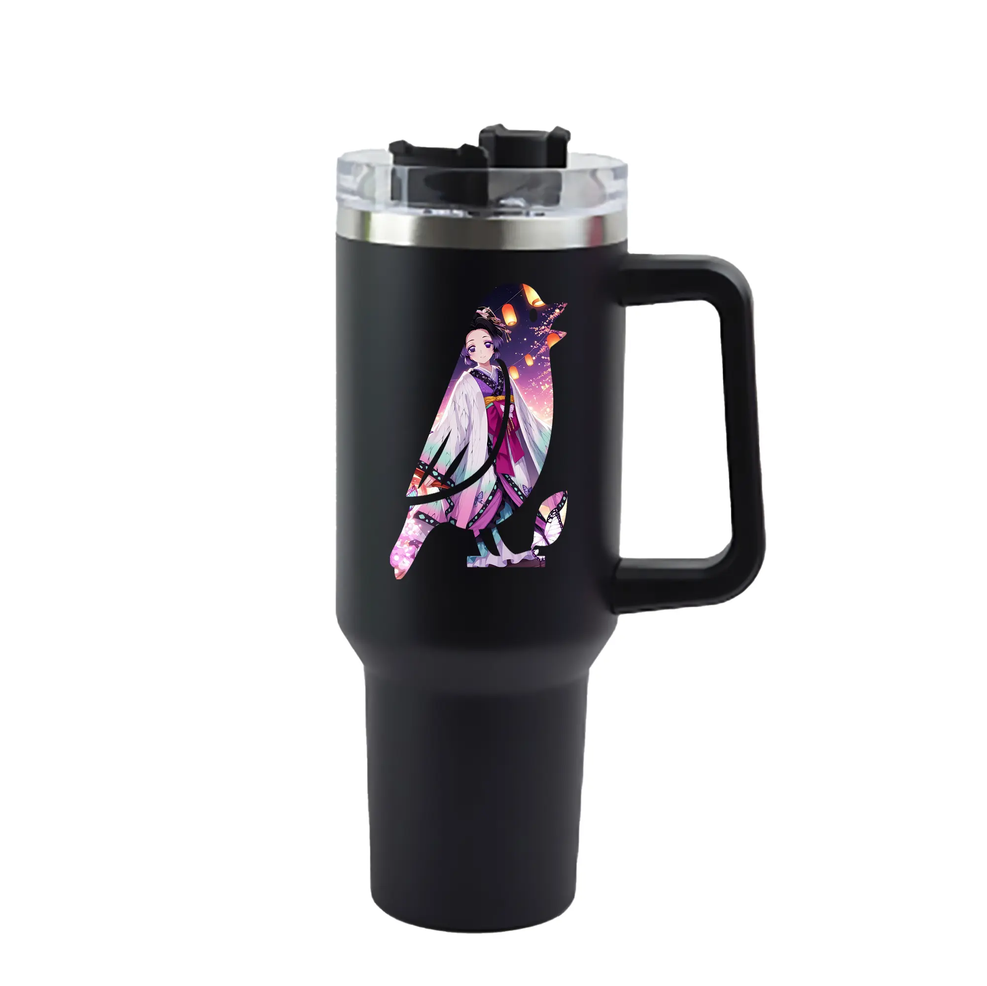 鬼滅の刃 グッズ,胡蝶 しのぶ - 1200mL 車用タンブラー ・ クリスタルステッカー ・ 304ステンレス 内側 ・ 201ステンレス 外側 ・ 保温 保冷 ・ ハンドル&ストロー付き ・ 通勤 ドライブ アウトドア用