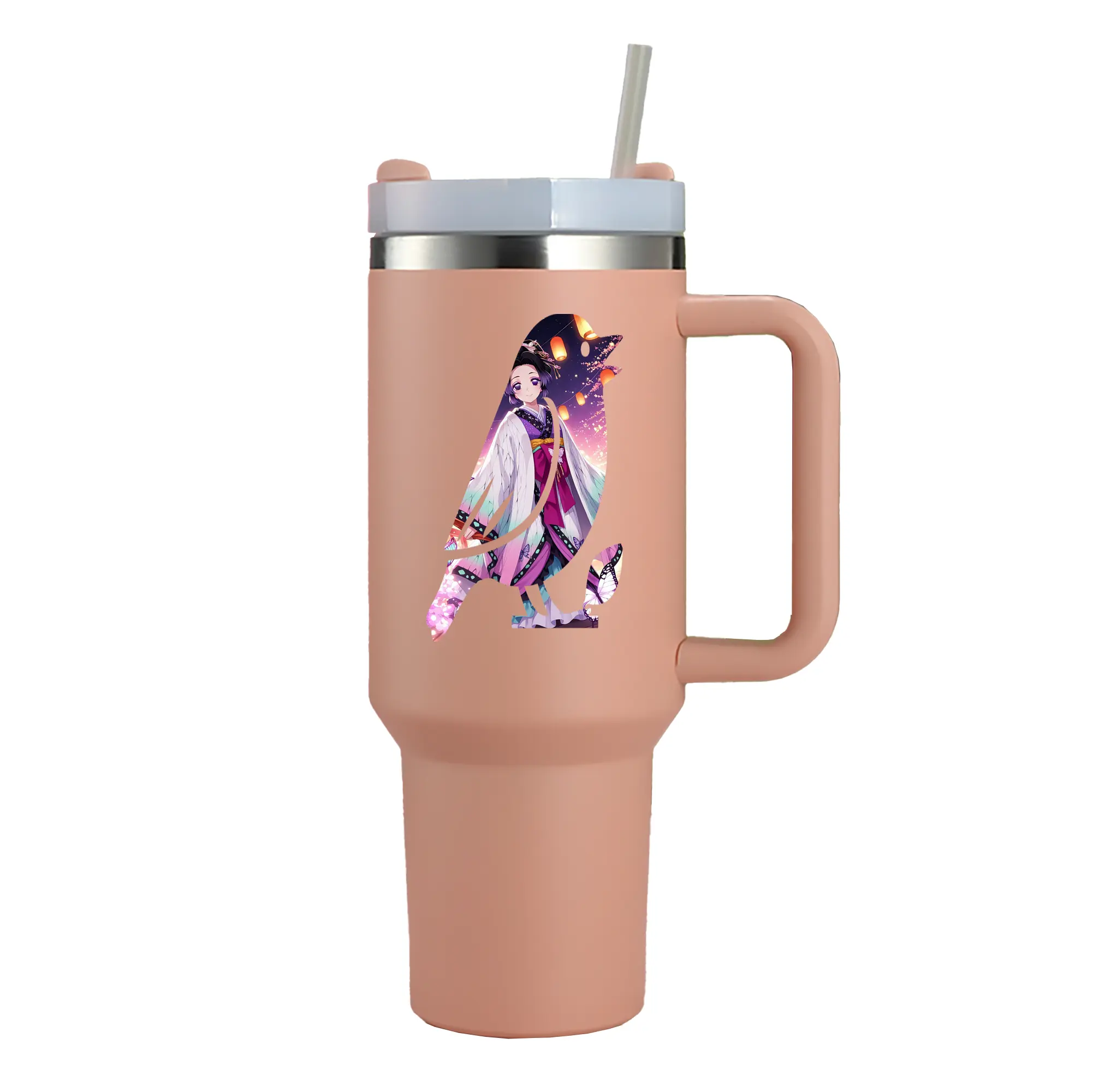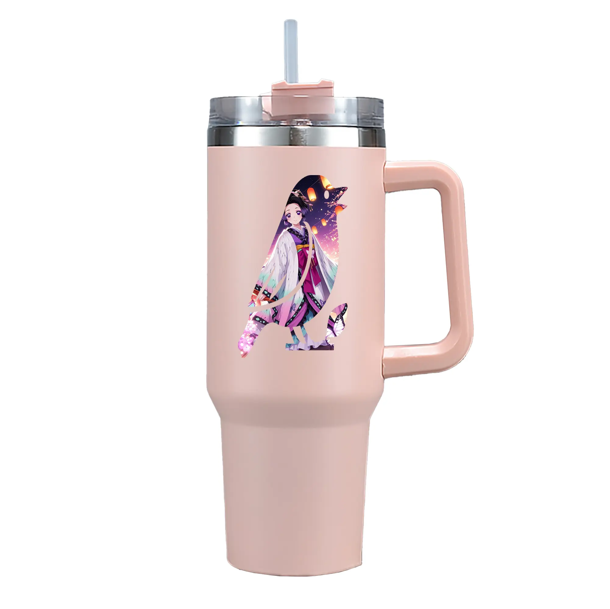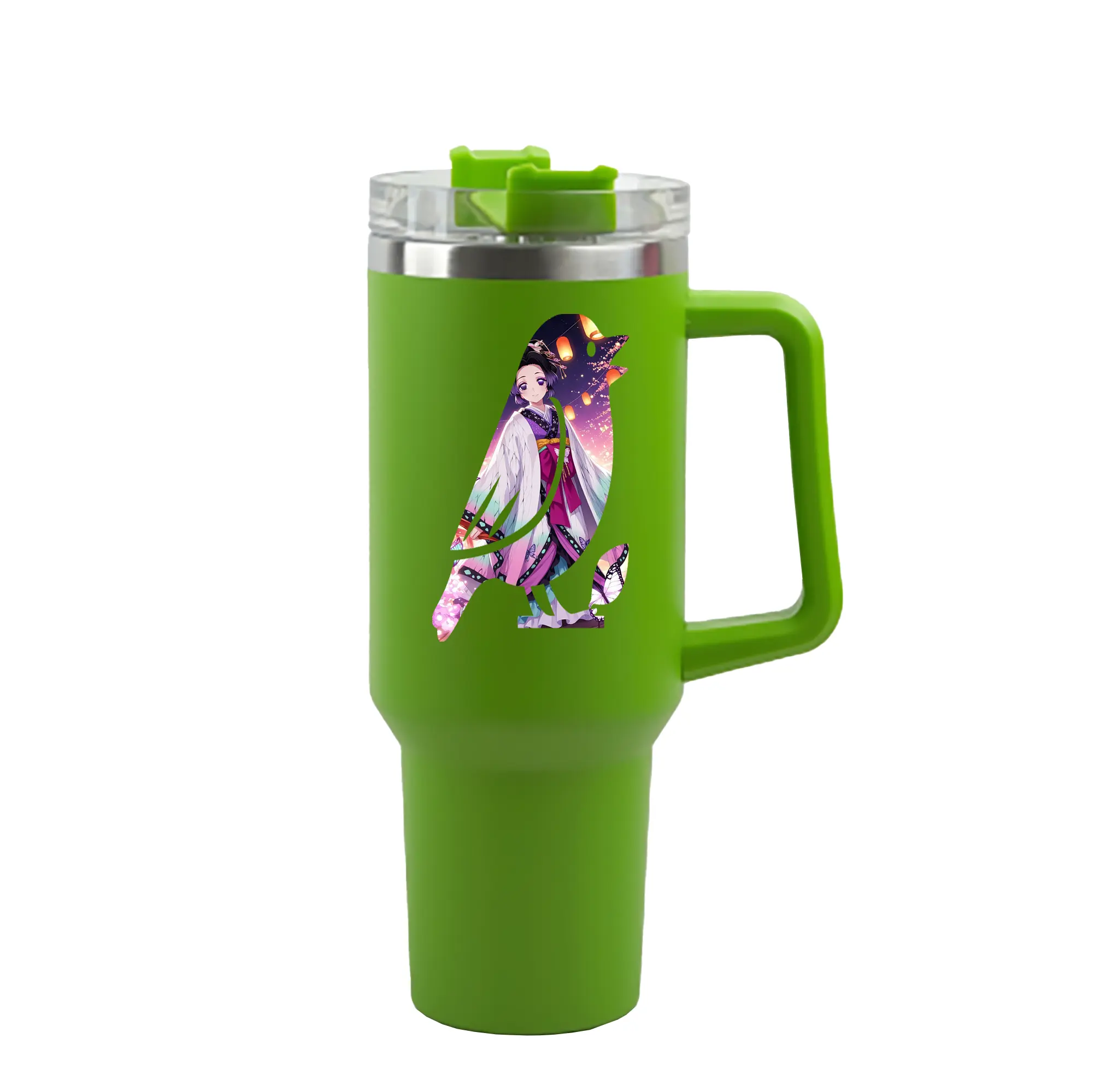鬼滅の刃 グッズ,胡蝶 しのぶ - 1200mL 車用タンブラー ・ クリスタルステッカー ・ 304ステンレス 内側 ・ 201ステンレス 外側 ・ 保温 保冷 ・ ハンドル&ストロー付き ・ 通勤 ドライブ アウトドア用