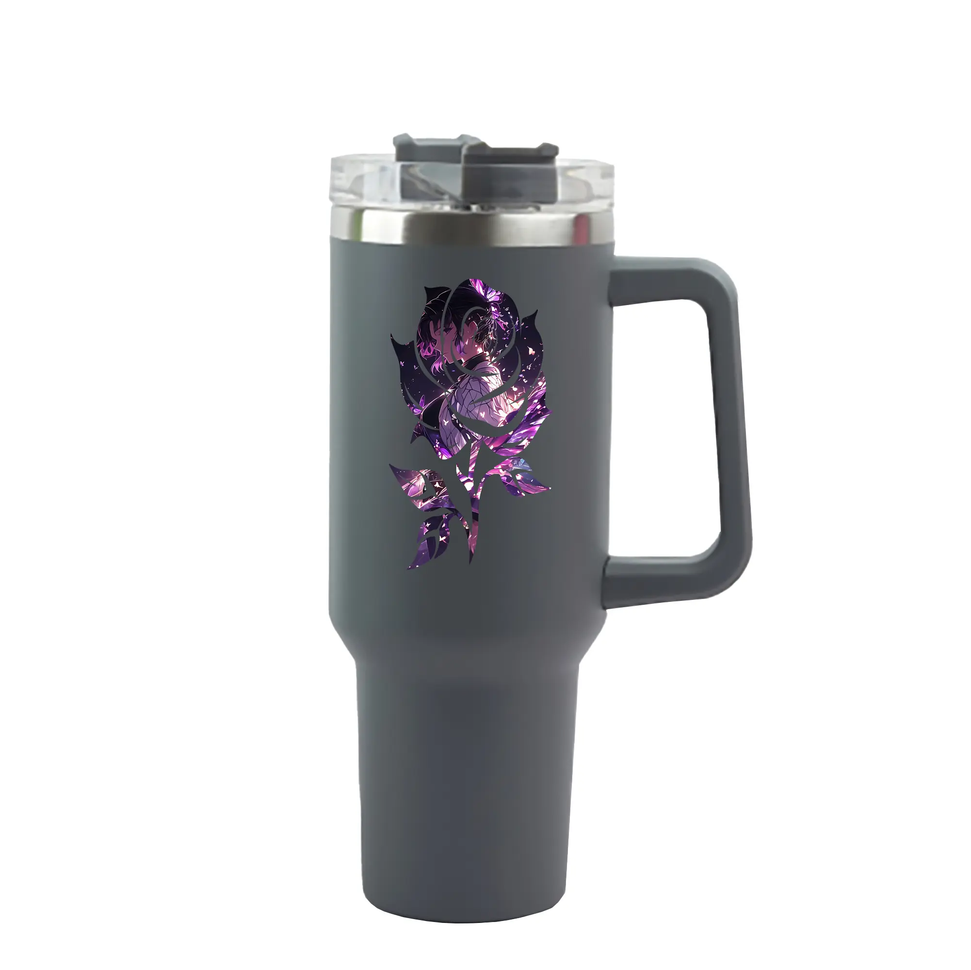 鬼滅の刃 グッズ,胡蝶 しのぶ - 1200mL 車用タンブラー ・ クリスタルステッカー ・ 304ステンレス 内側 ・ 201ステンレス 外側 ・ 保温 保冷 ・ ハンドル&ストロー付き ・ 通勤 ドライブ アウトドア用