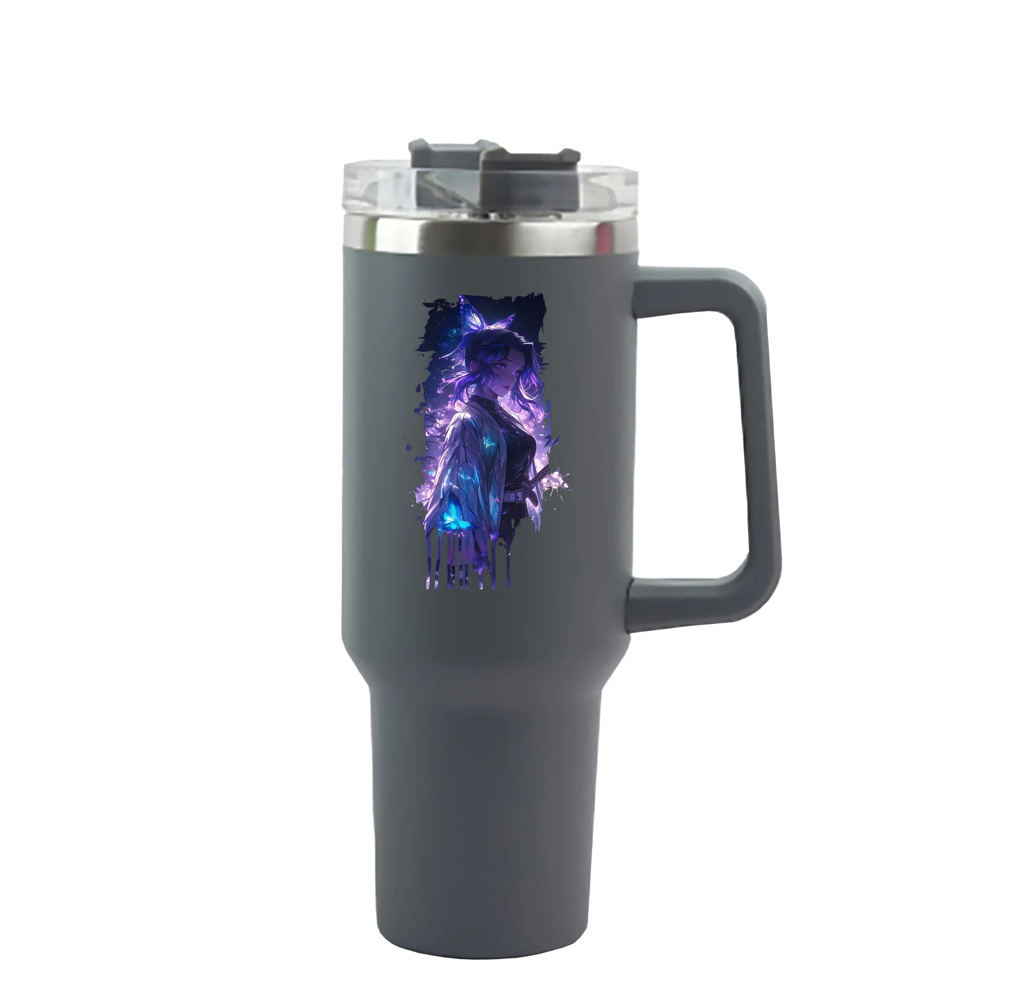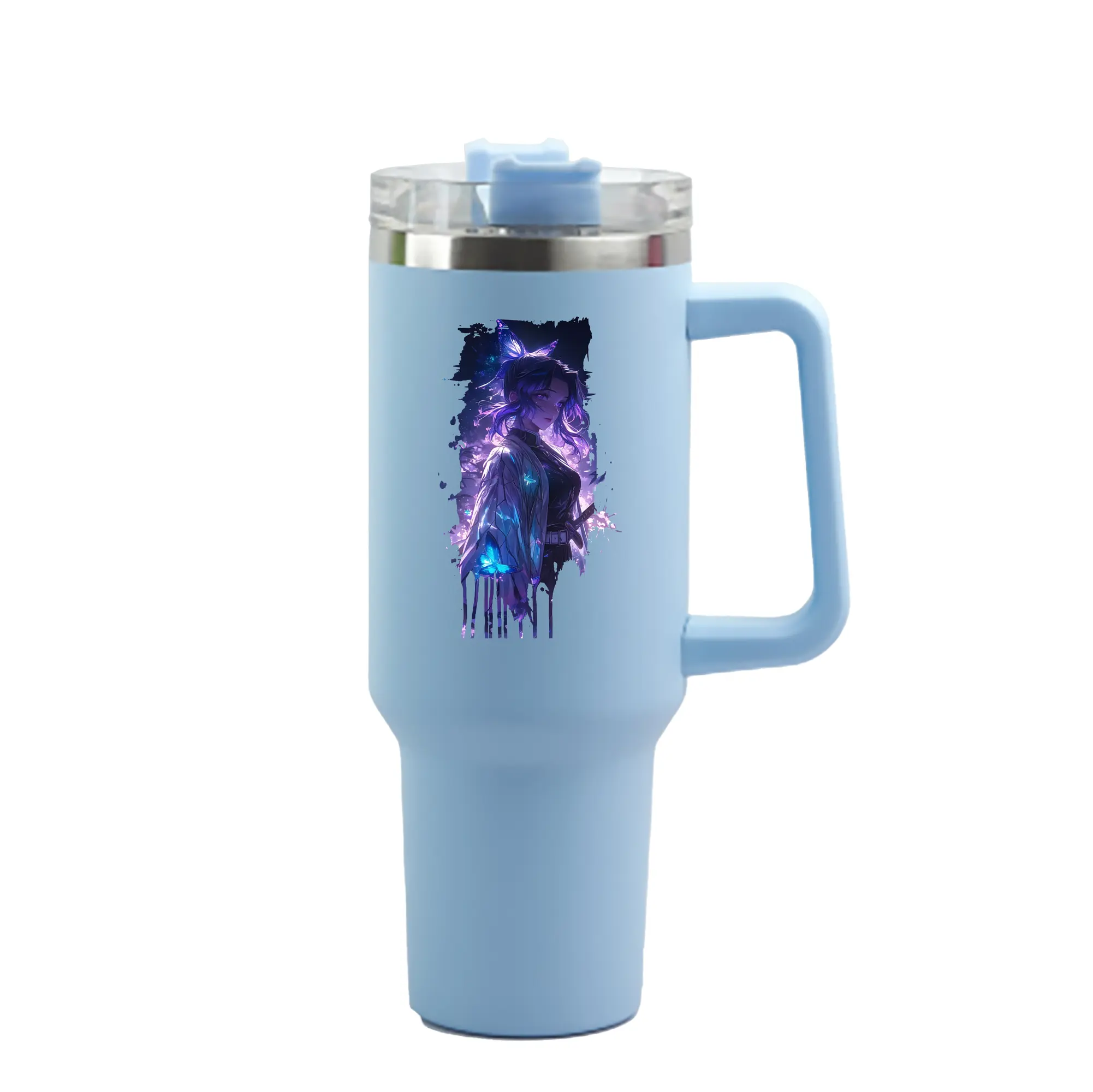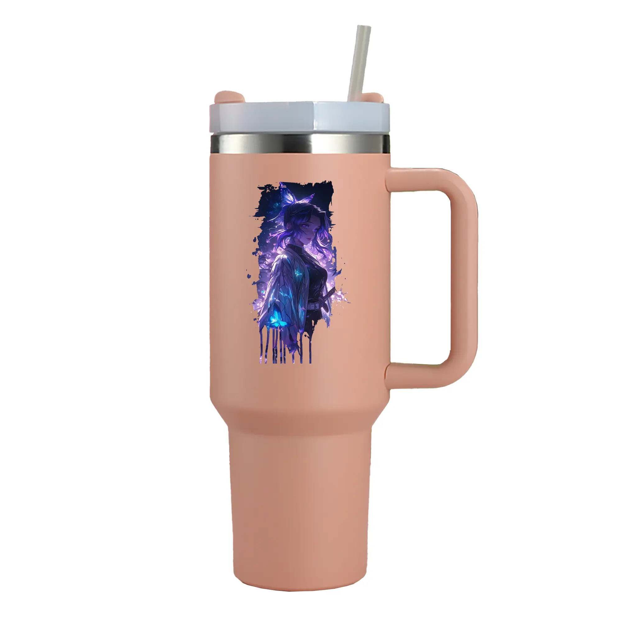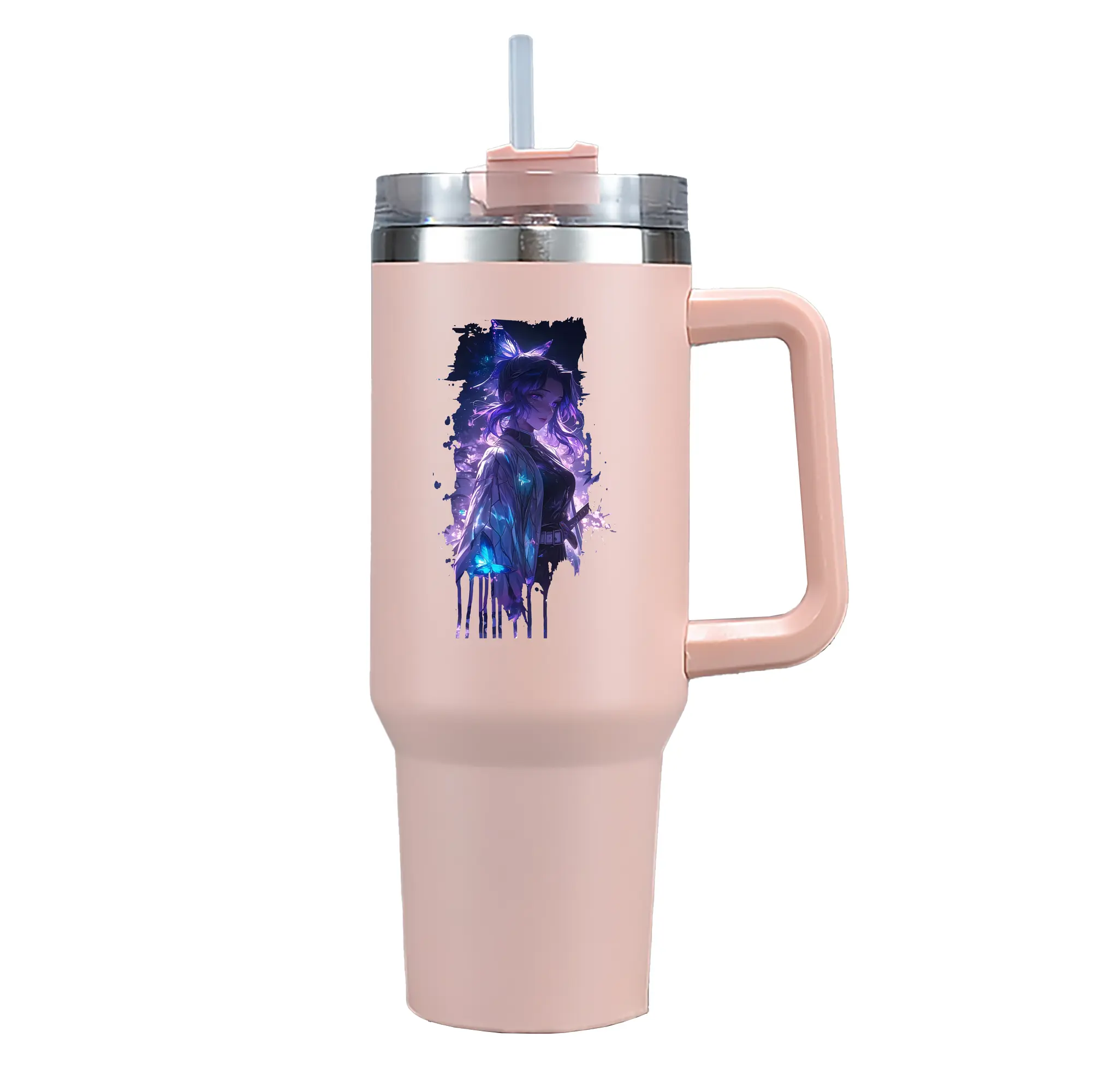 鬼滅の刃 グッズ,胡蝶 しのぶ - 1200mL 車用タンブラー ・ クリスタルステッカー ・ 304ステンレス 内側 ・ 201ステンレス 外側 ・ 保温 保冷 ・ ハンドル&ストロー付き ・ 通勤 ドライブ アウトドア用