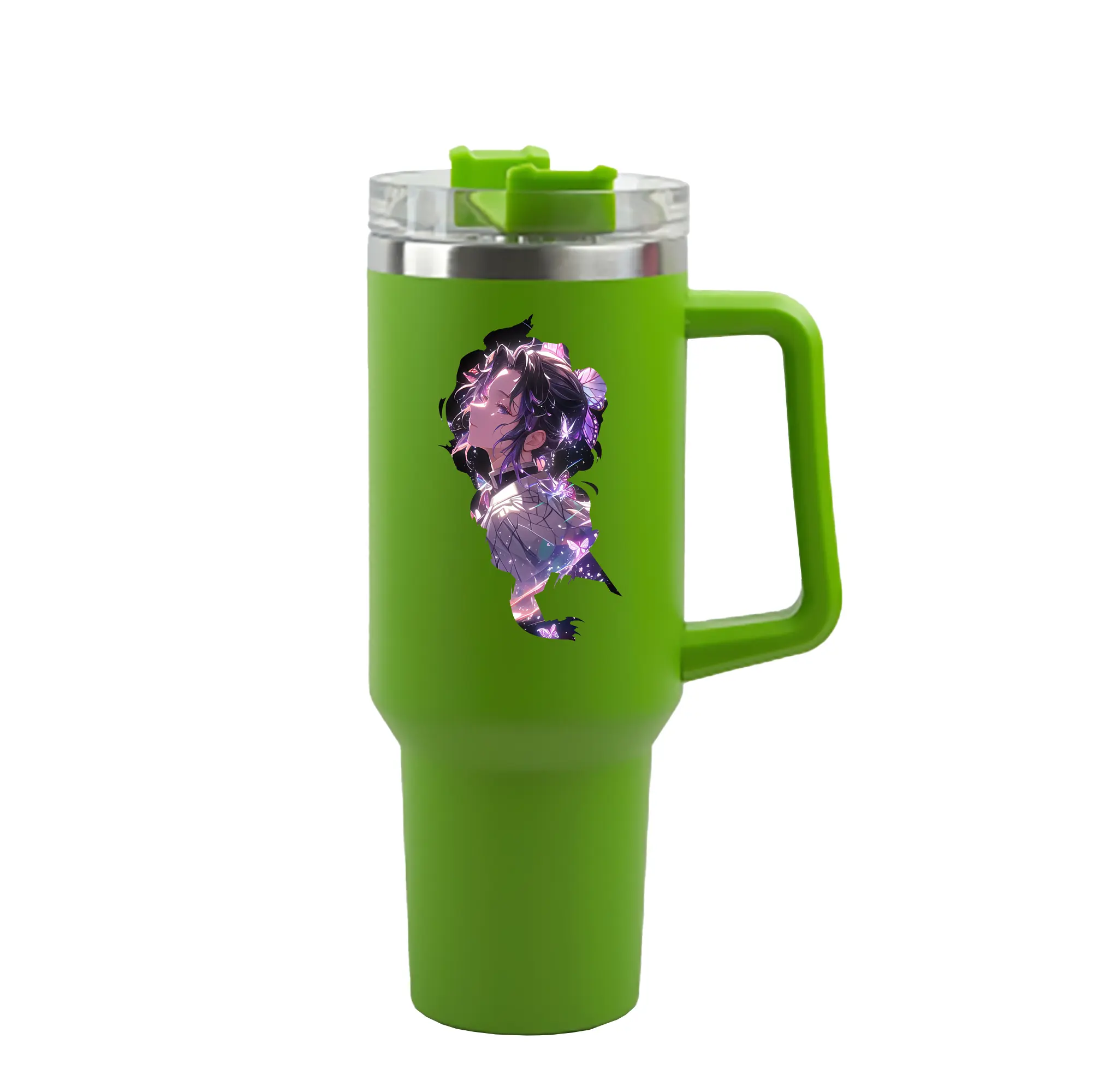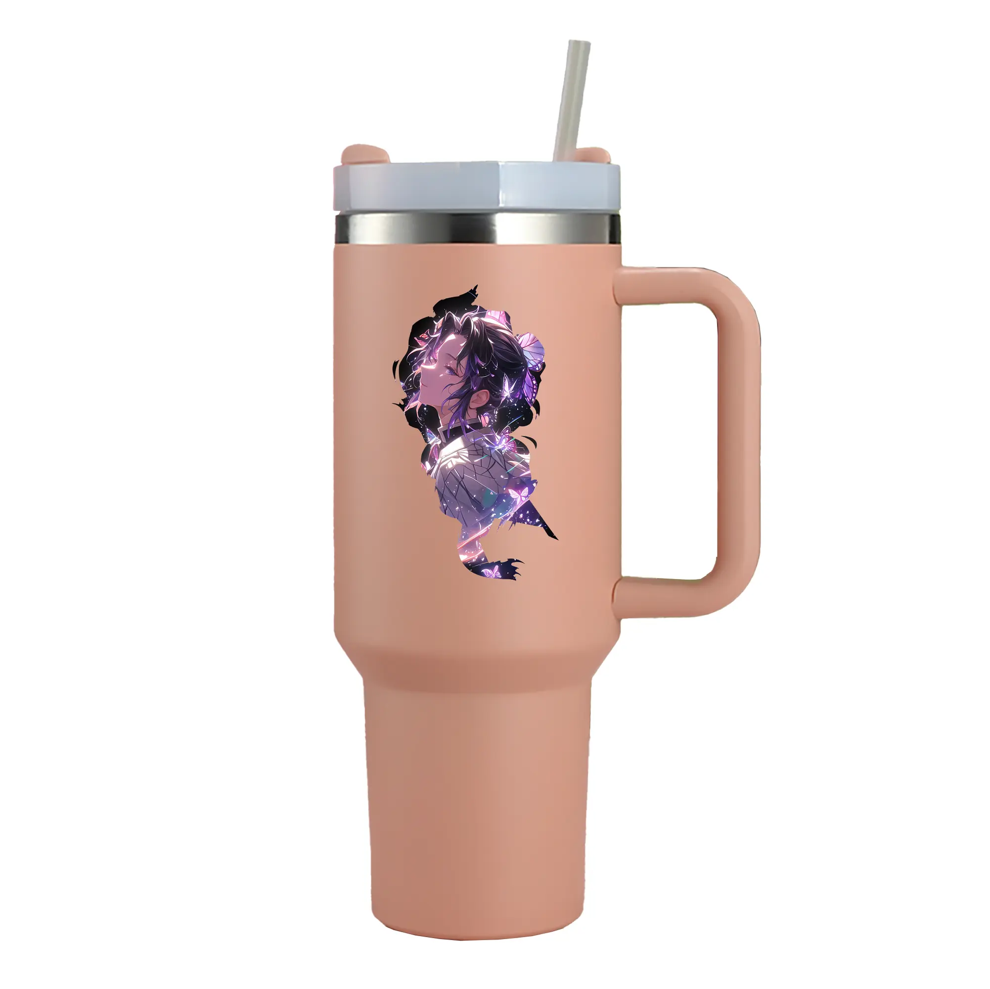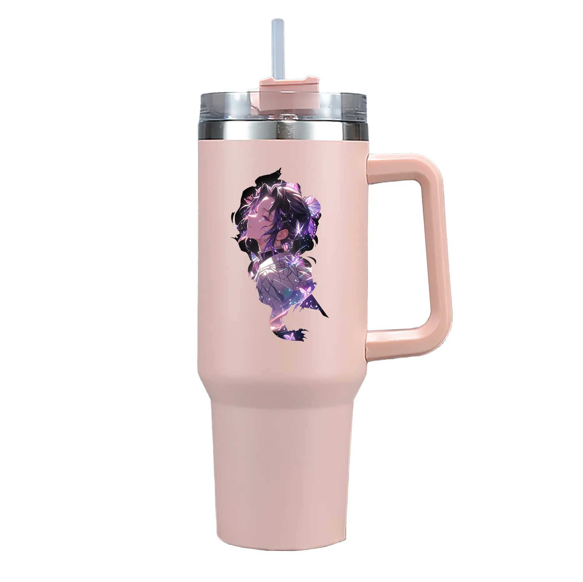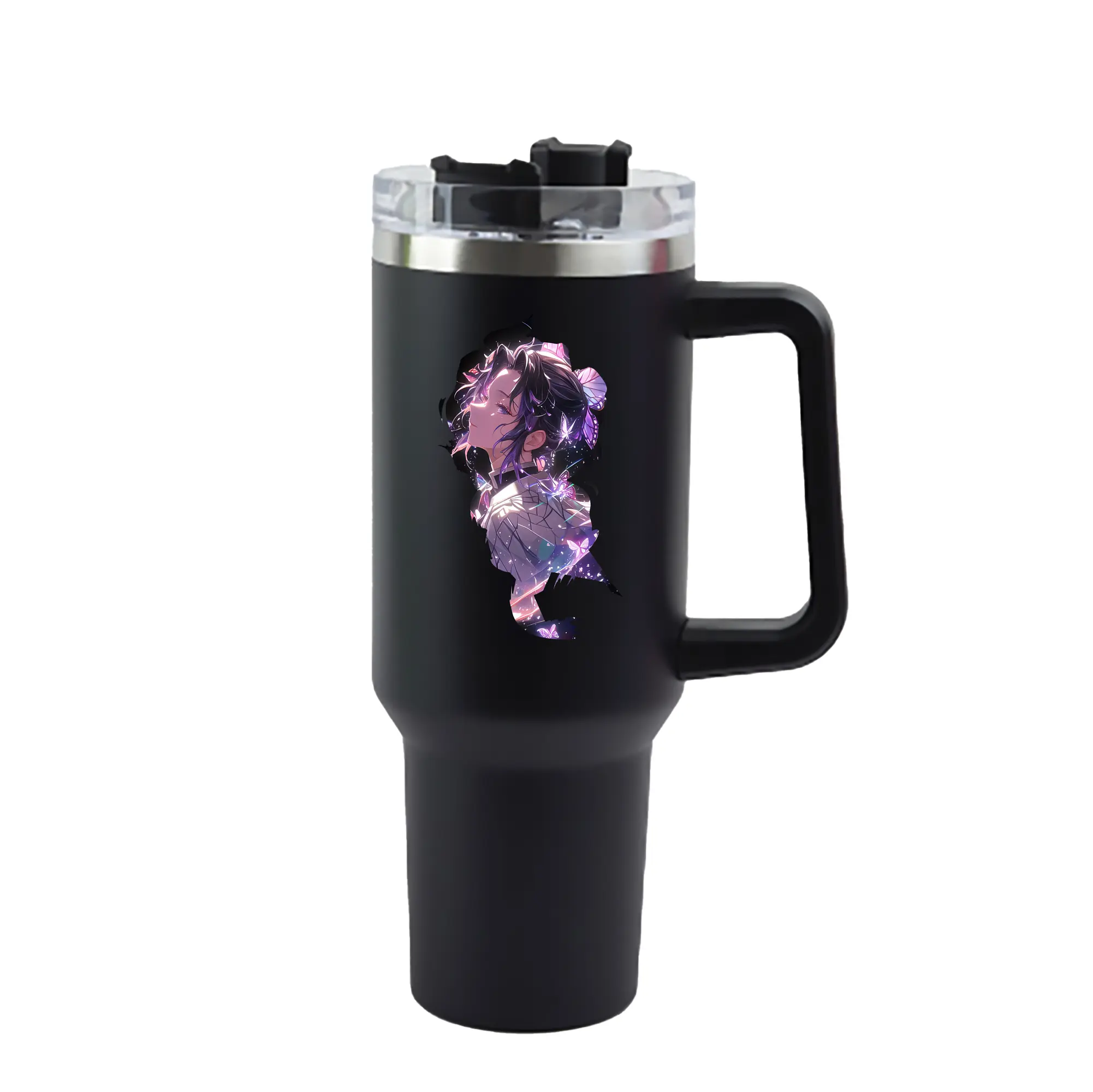 鬼滅の刃 グッズ,胡蝶 しのぶ - 1200mL 車用タンブラー ・ クリスタルステッカー ・ 304ステンレス 内側 ・ 201ステンレス 外側 ・ 保温 保冷 ・ ハンドル&ストロー付き ・ 通勤 ドライブ アウトドア用