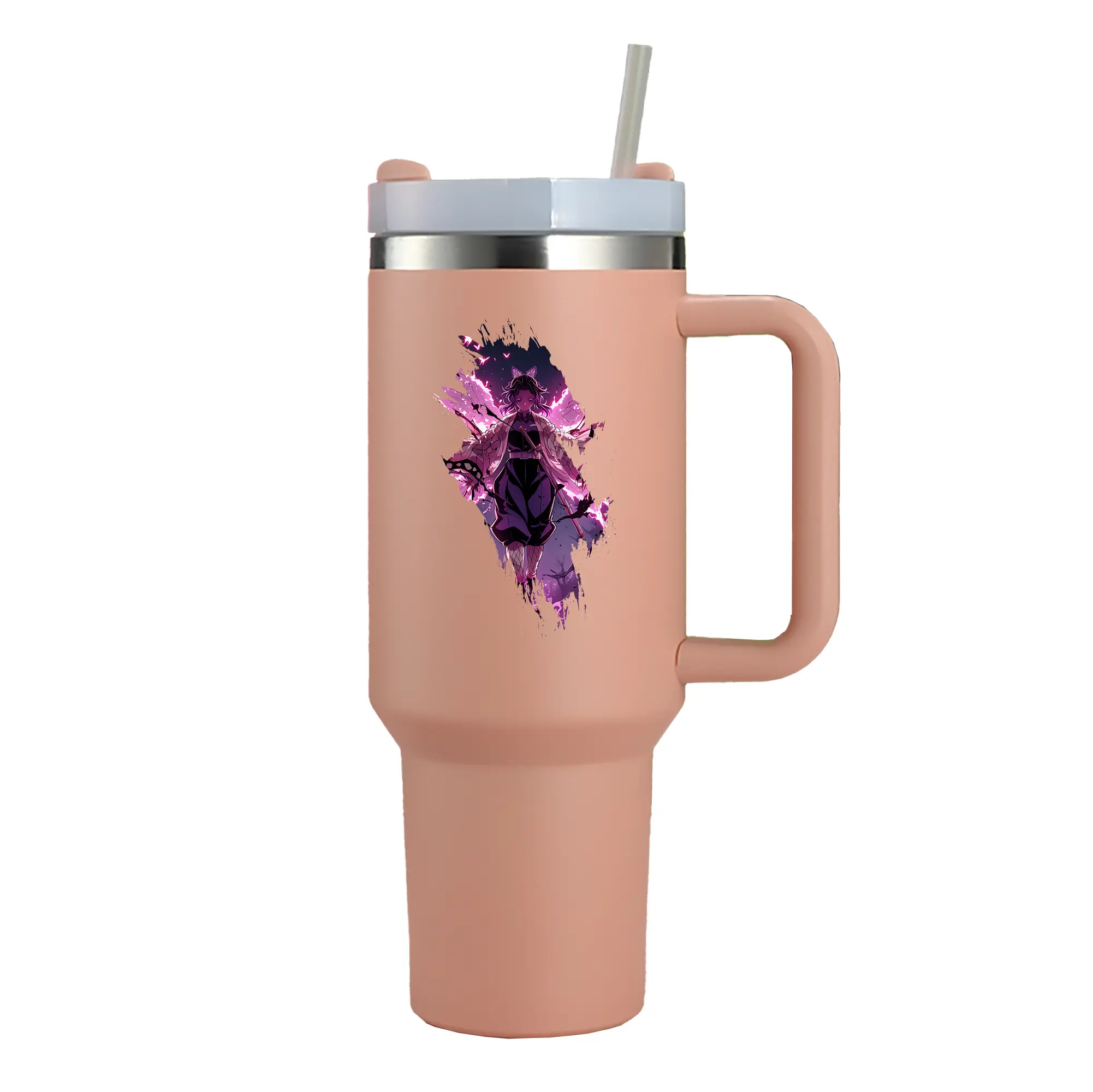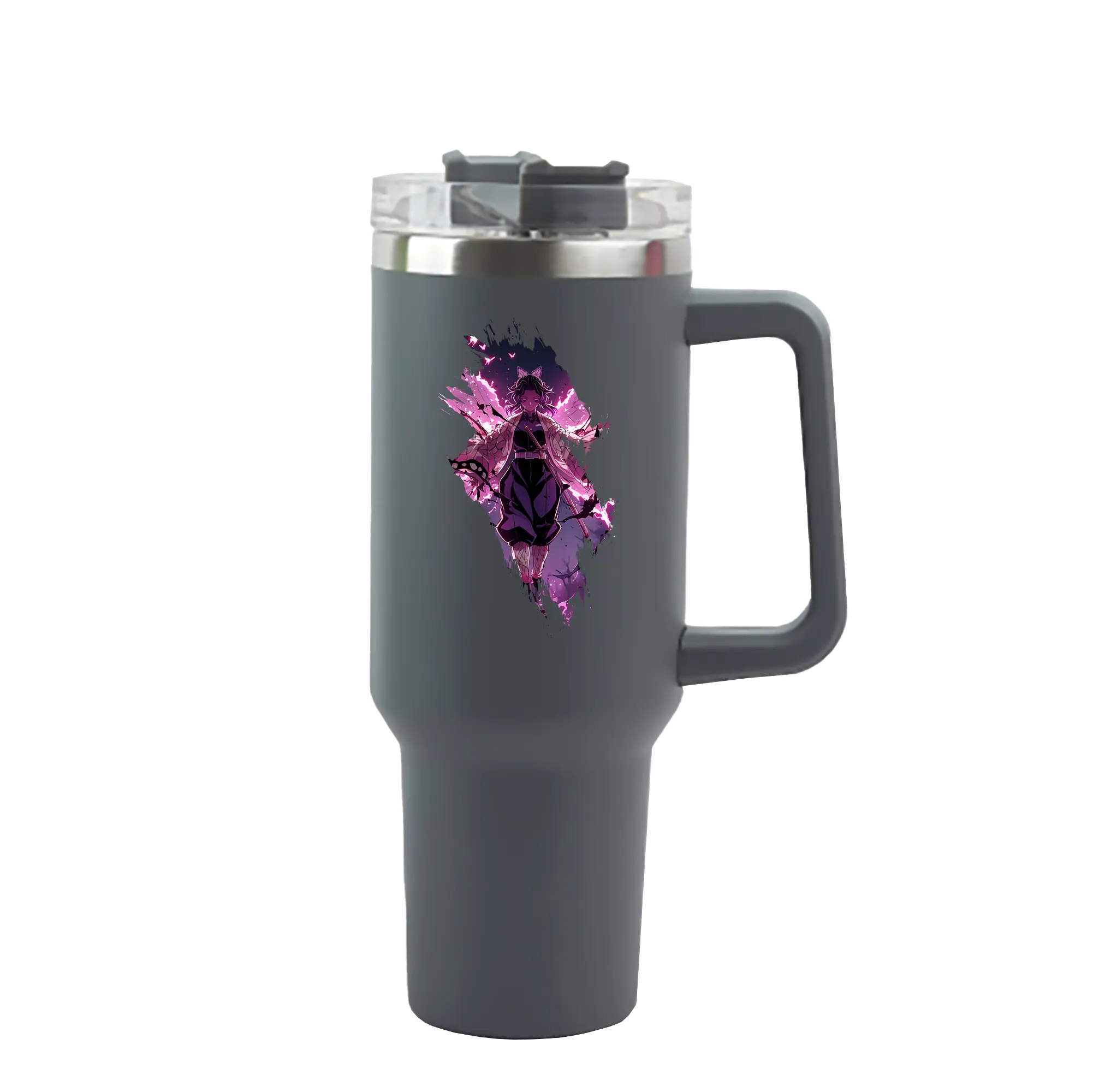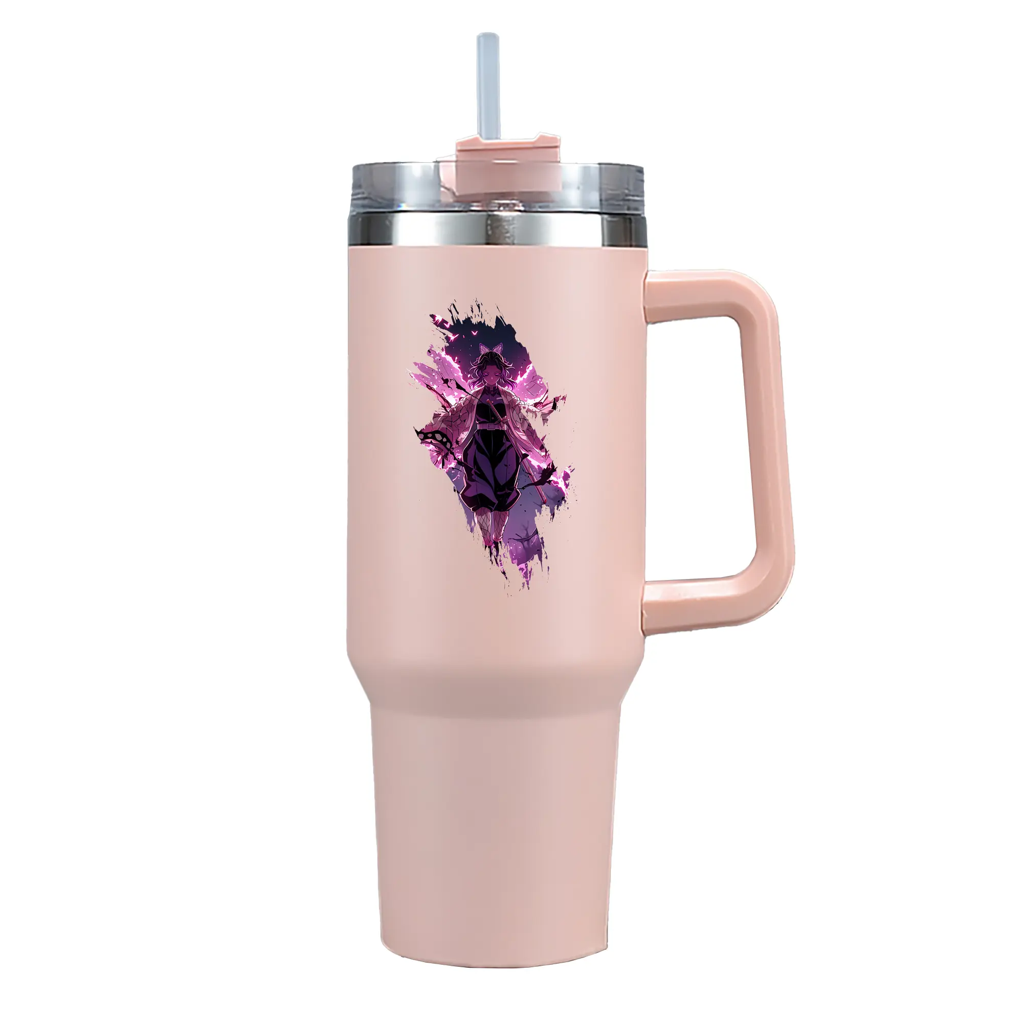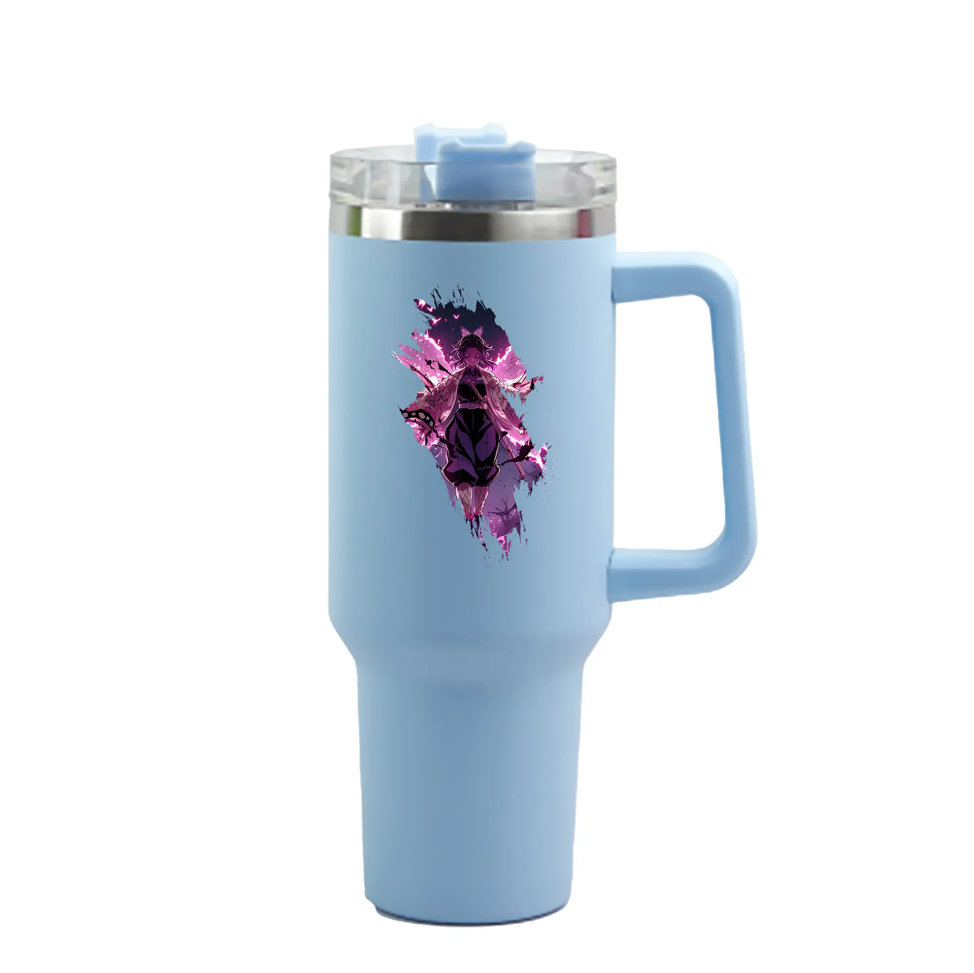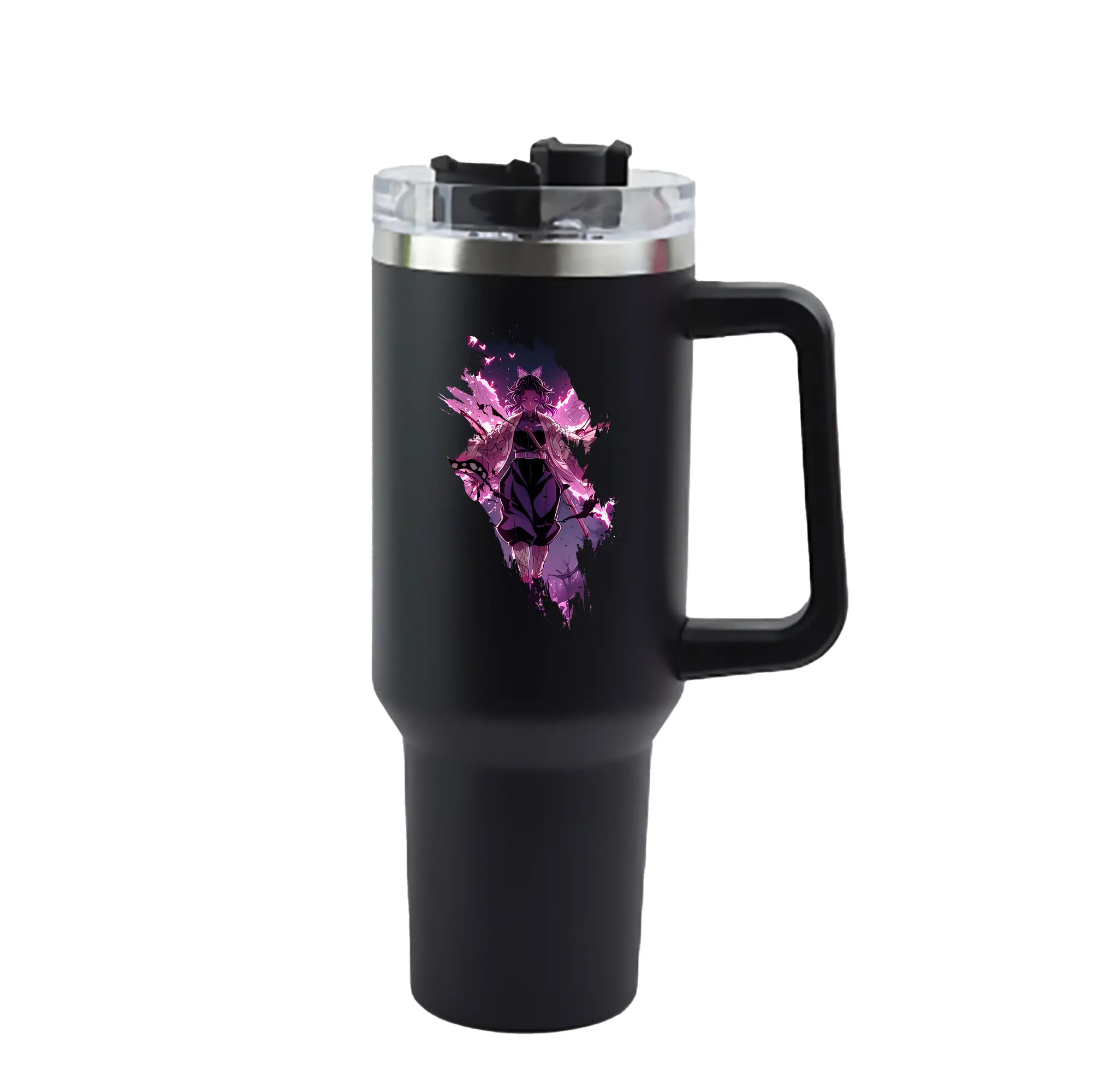 鬼滅の刃 グッズ,胡蝶 しのぶ - 1200mL 車用タンブラー ・ クリスタルステッカー ・ 304ステンレス 内側 ・ 201ステンレス 外側 ・ 保温 保冷 ・ ハンドル&ストロー付き ・ 通勤 ドライブ アウトドア用