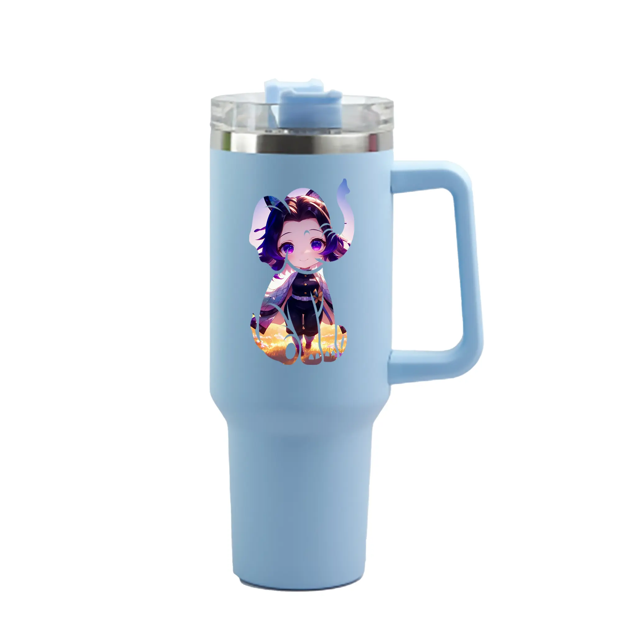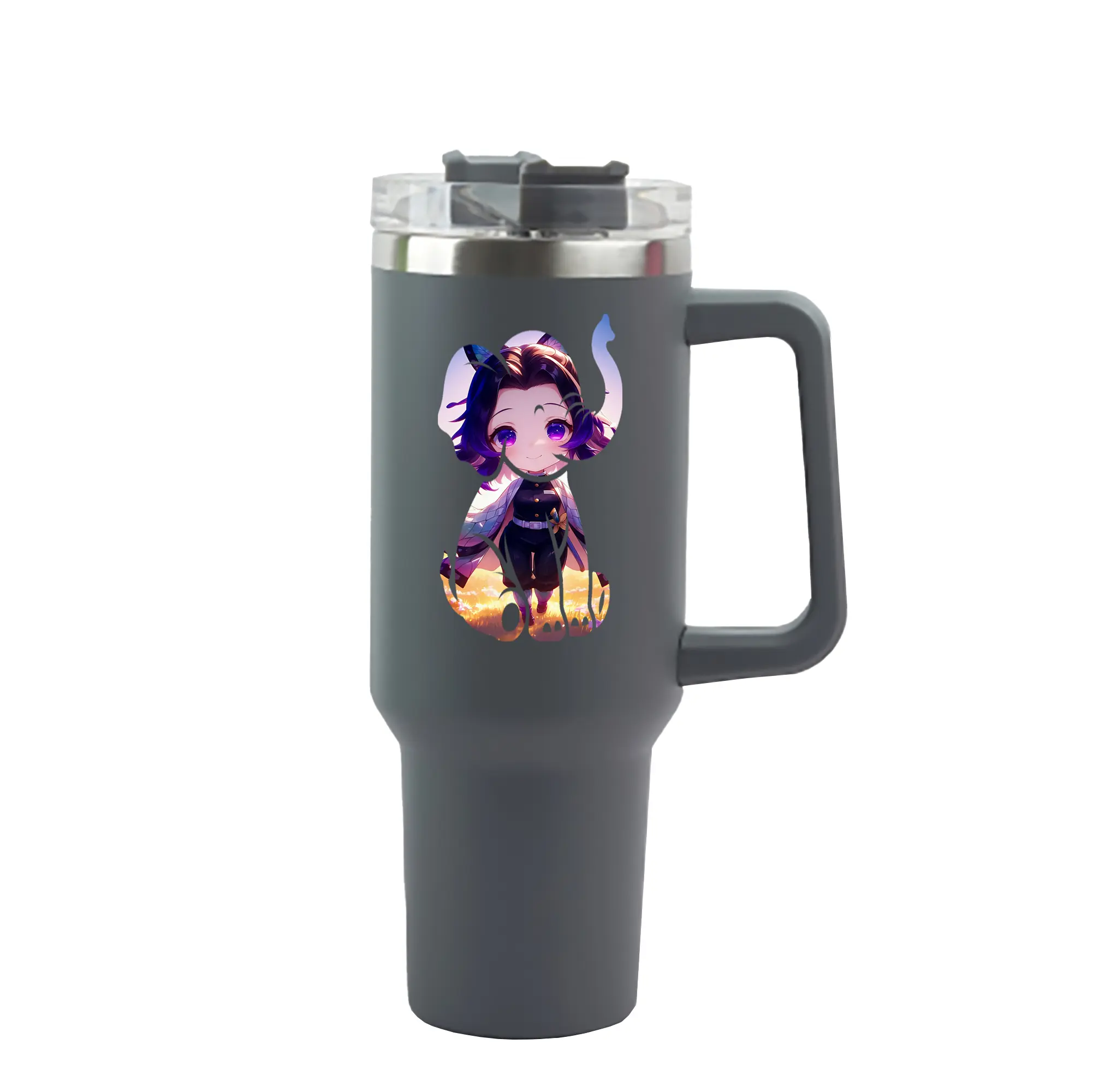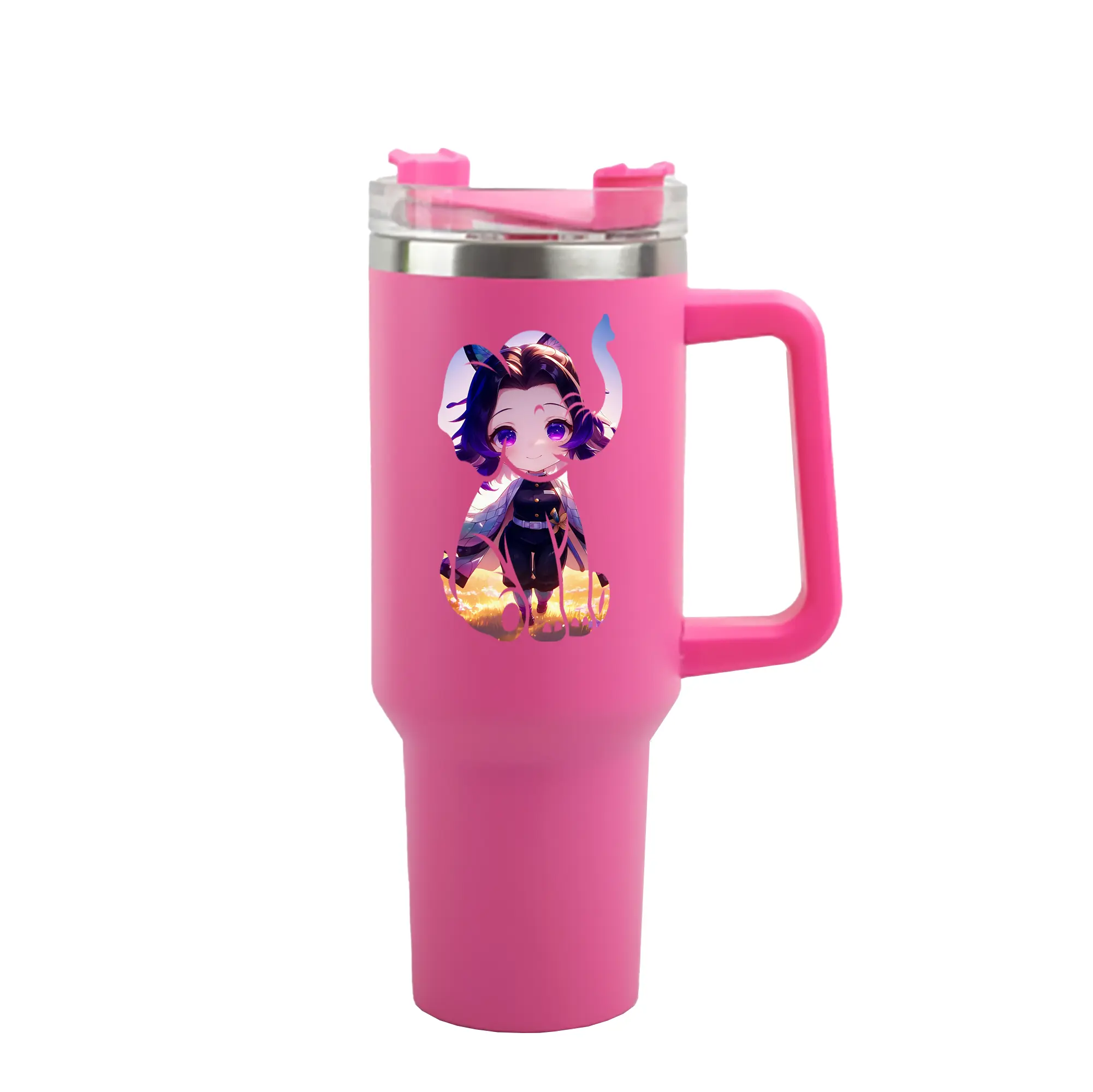 鬼滅の刃 グッズ,胡蝶 しのぶ - 1200mL 車用タンブラー ・ クリスタルステッカー ・ 304ステンレス 内側 ・ 201ステンレス 外側 ・ 保温 保冷 ・ ハンドル&ストロー付き ・ 通勤 ドライブ アウトドア用