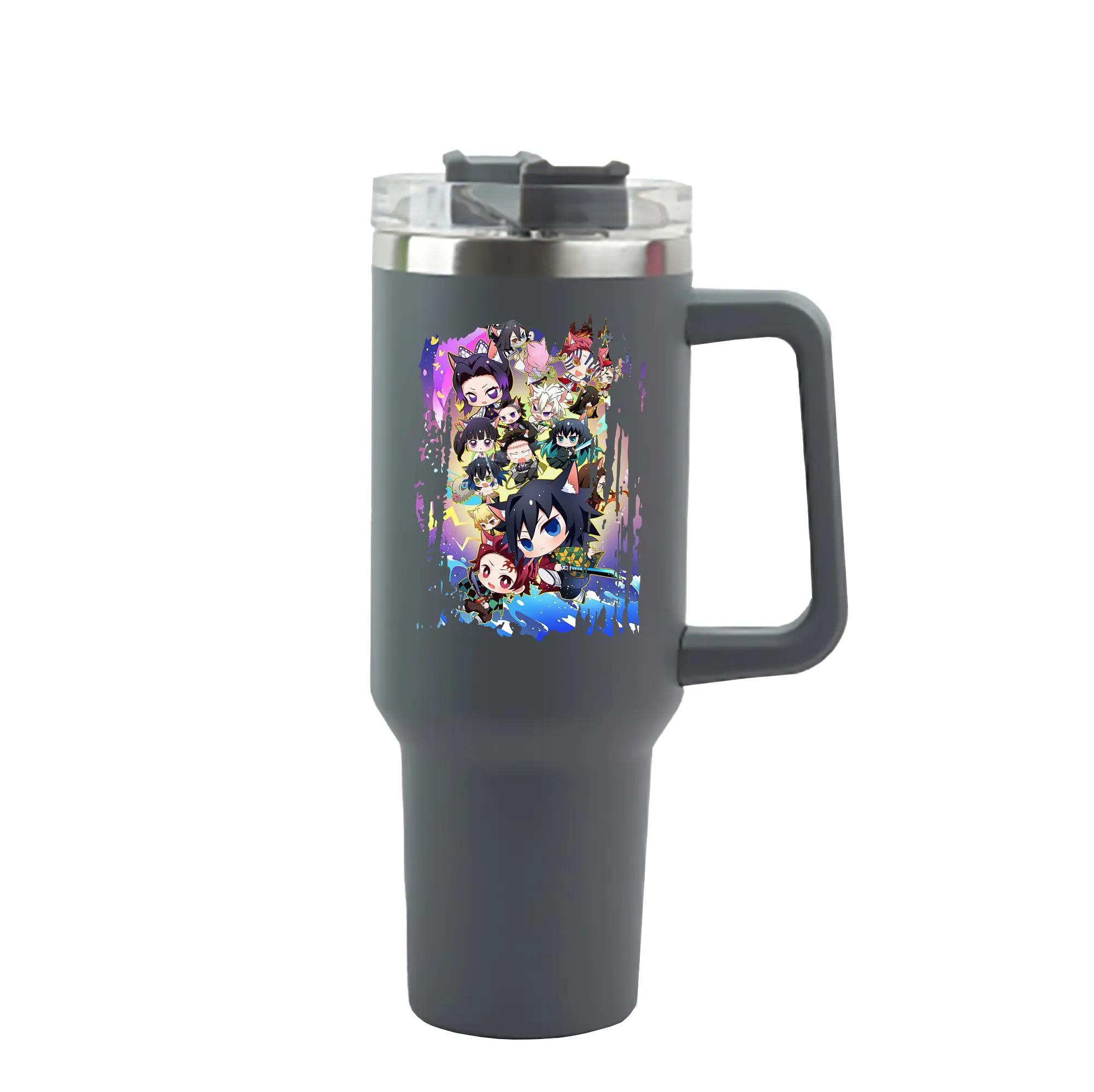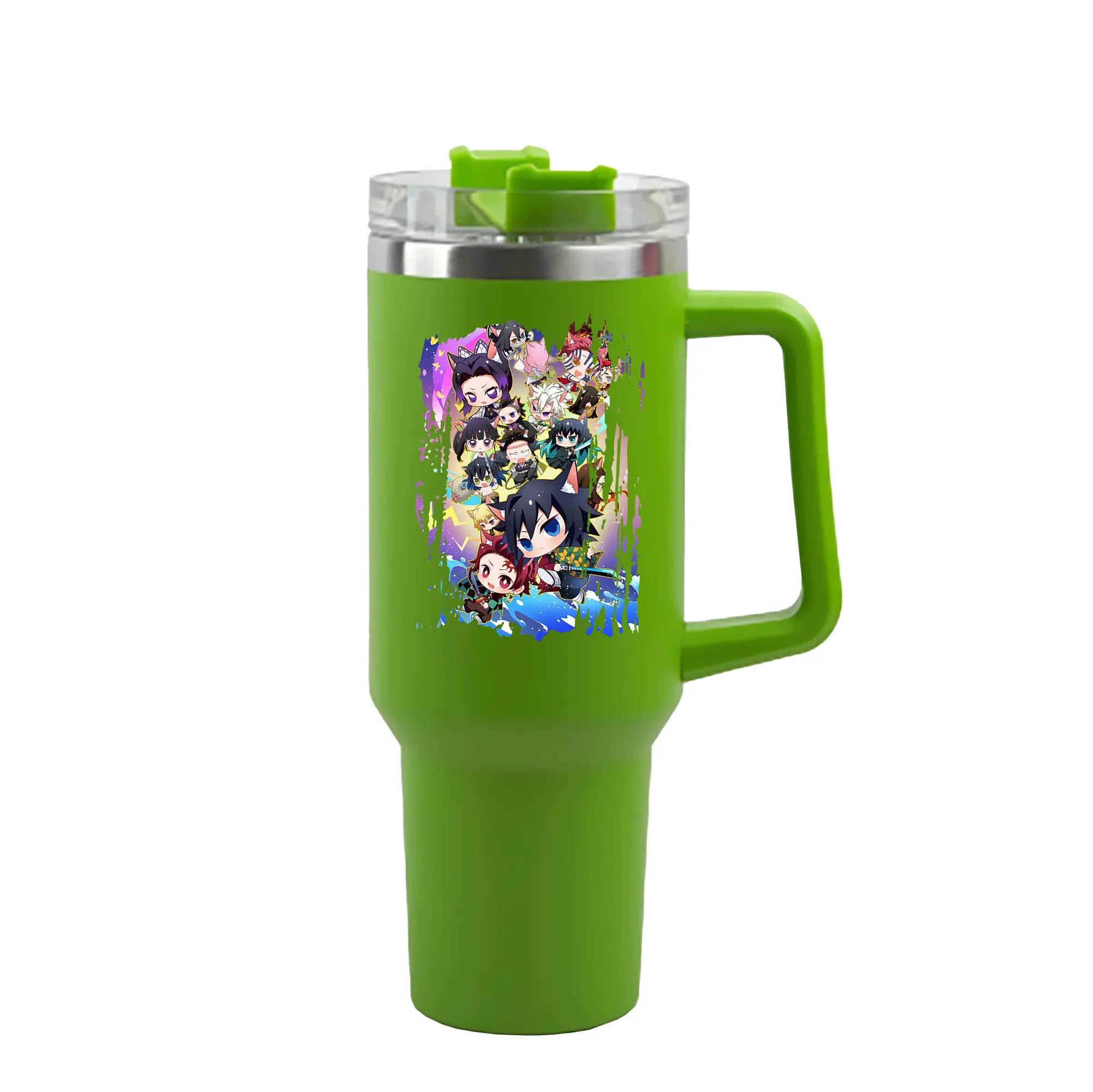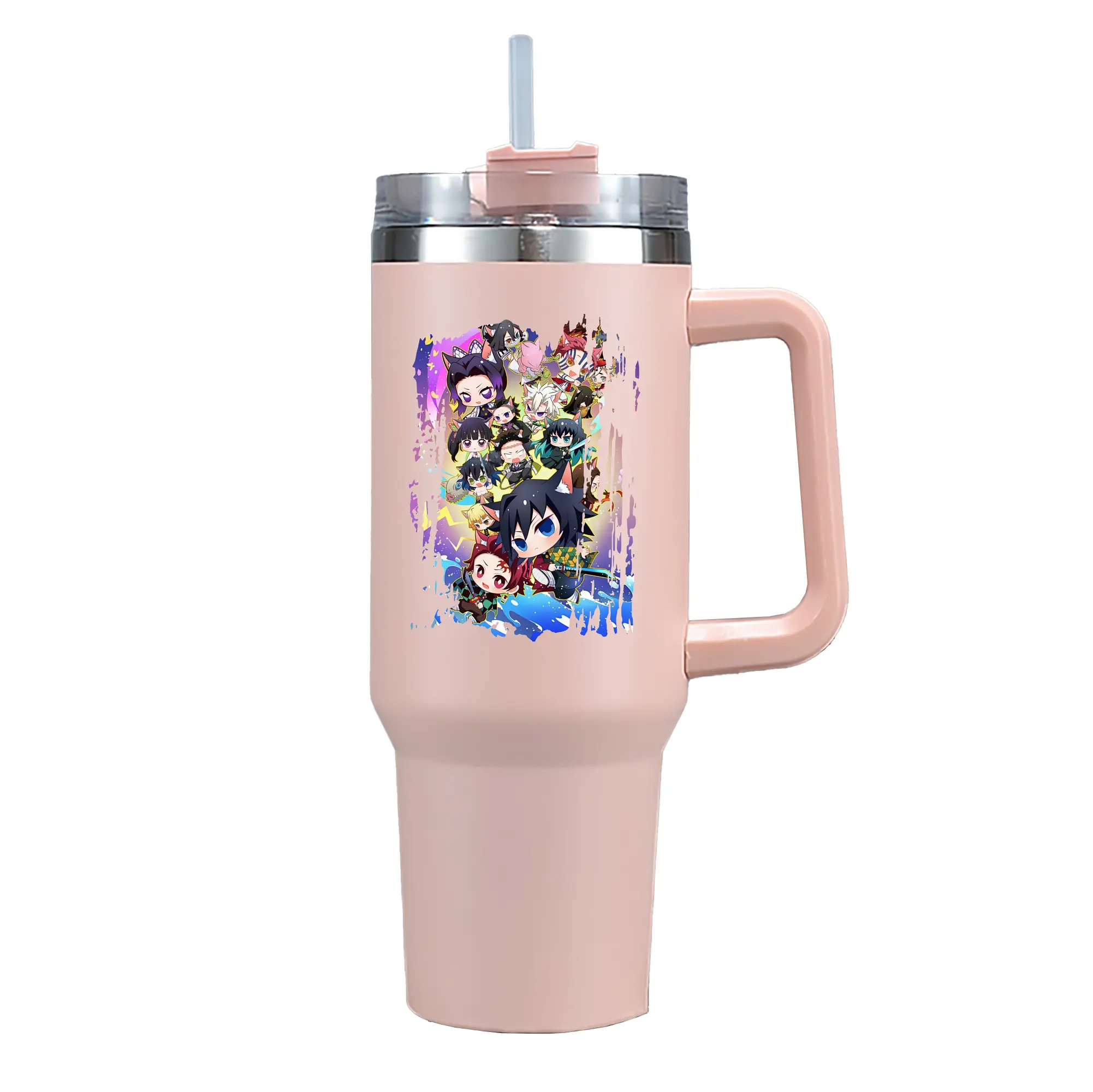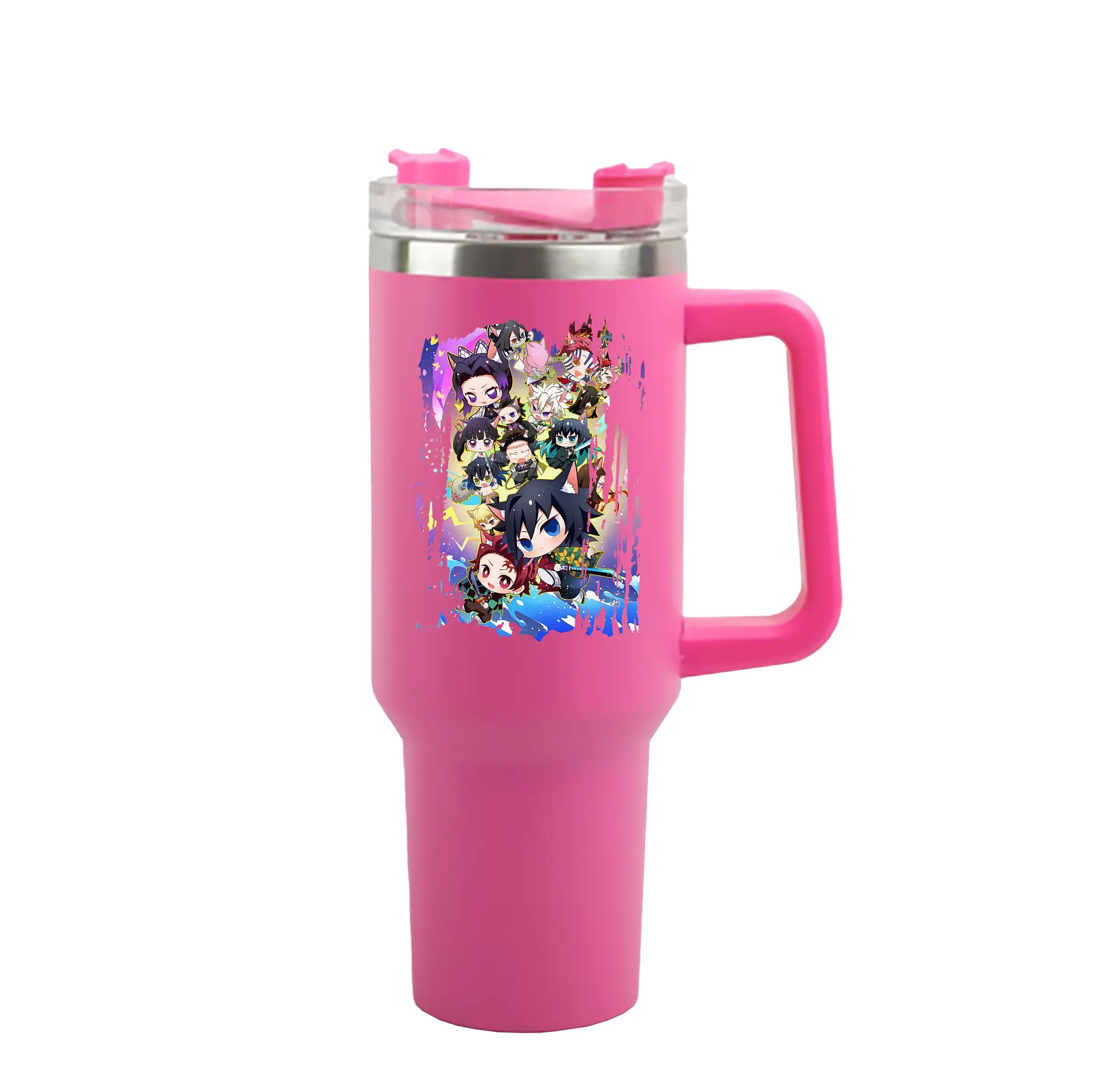 鬼滅の刃 グッズ,胡蝶 しのぶ - 1200mL 車用タンブラー ・ クリスタルステッカー ・ 304ステンレス 内側 ・ 201ステンレス 外側 ・ 保温 保冷 ・ ハンドル&ストロー付き ・ 通勤 ドライブ アウトドア用