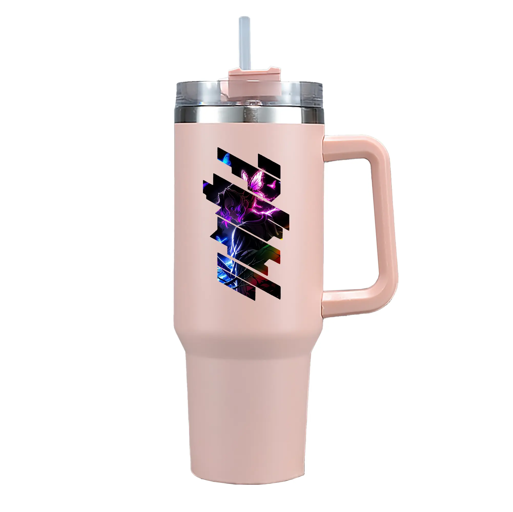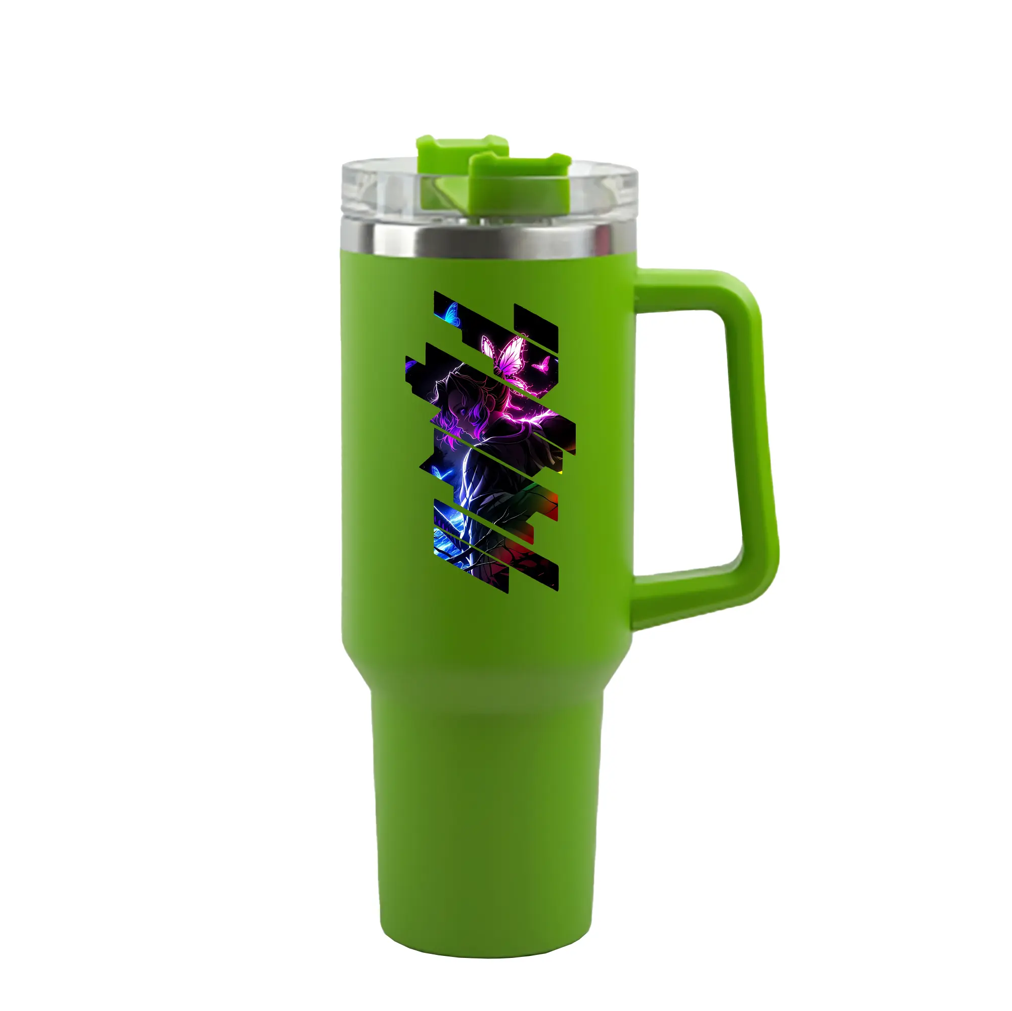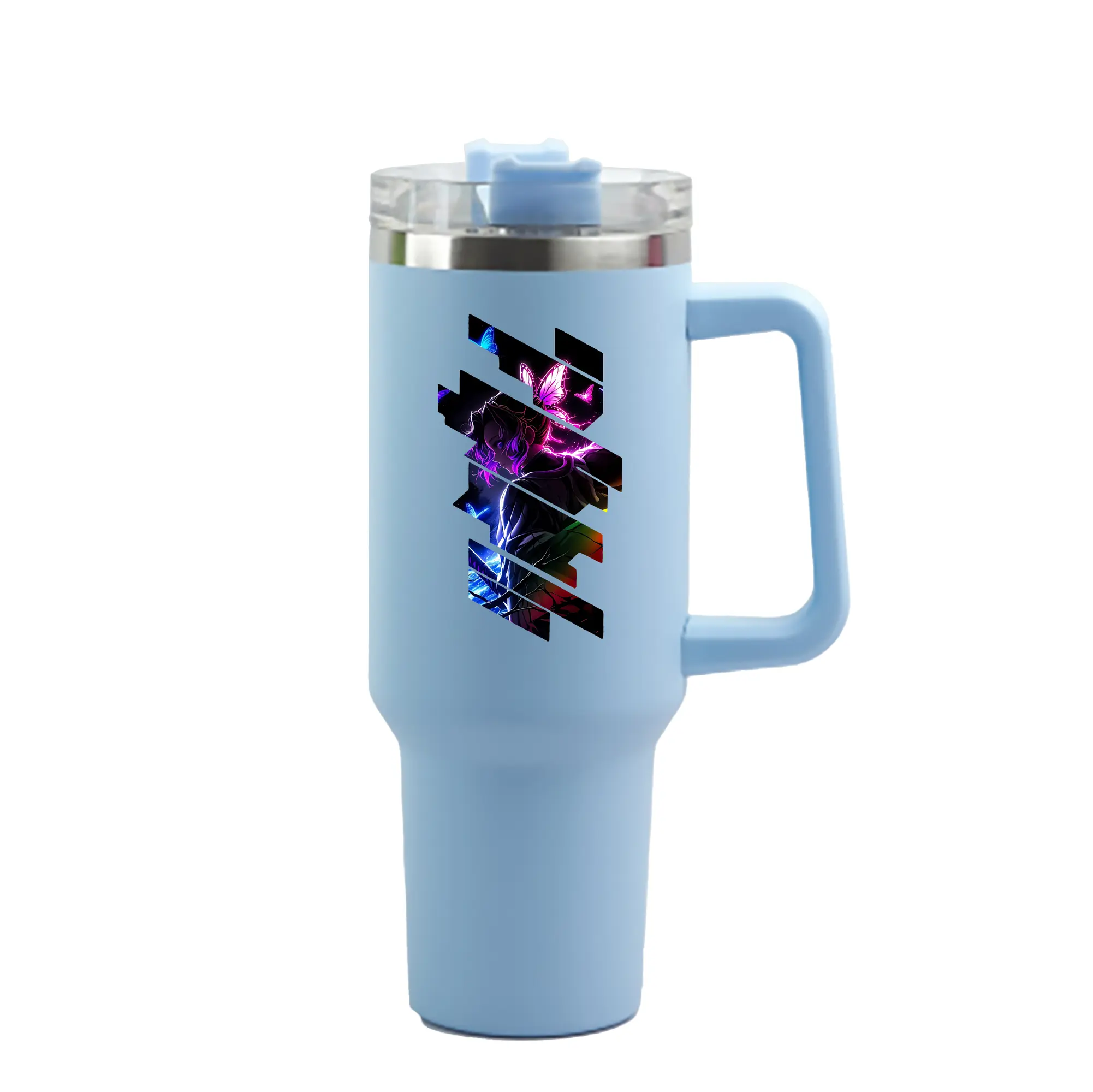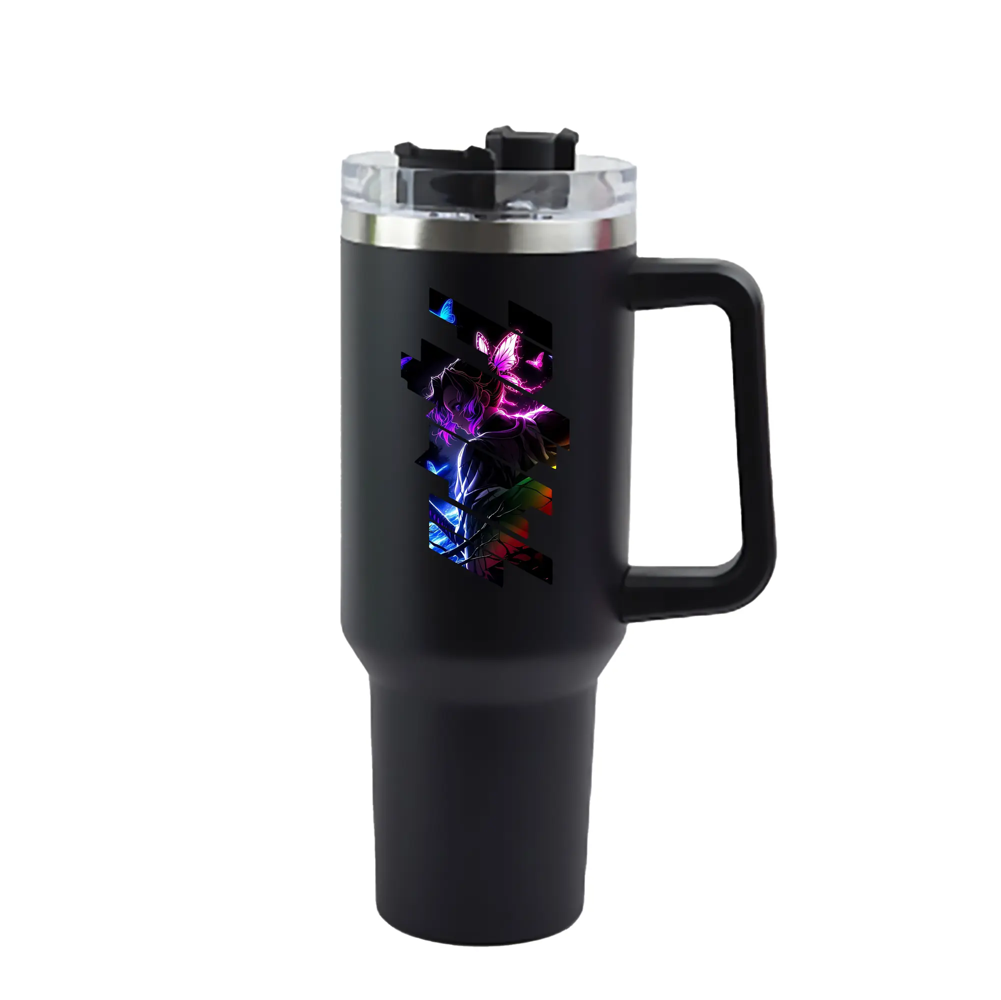 鬼滅の刃 グッズ,胡蝶 しのぶ - 1200mL 車用タンブラー ・ クリスタルステッカー ・ 304ステンレス 内側 ・ 201ステンレス 外側 ・ 保温 保冷 ・ ハンドル&ストロー付き ・ 通勤 ドライブ アウトドア用