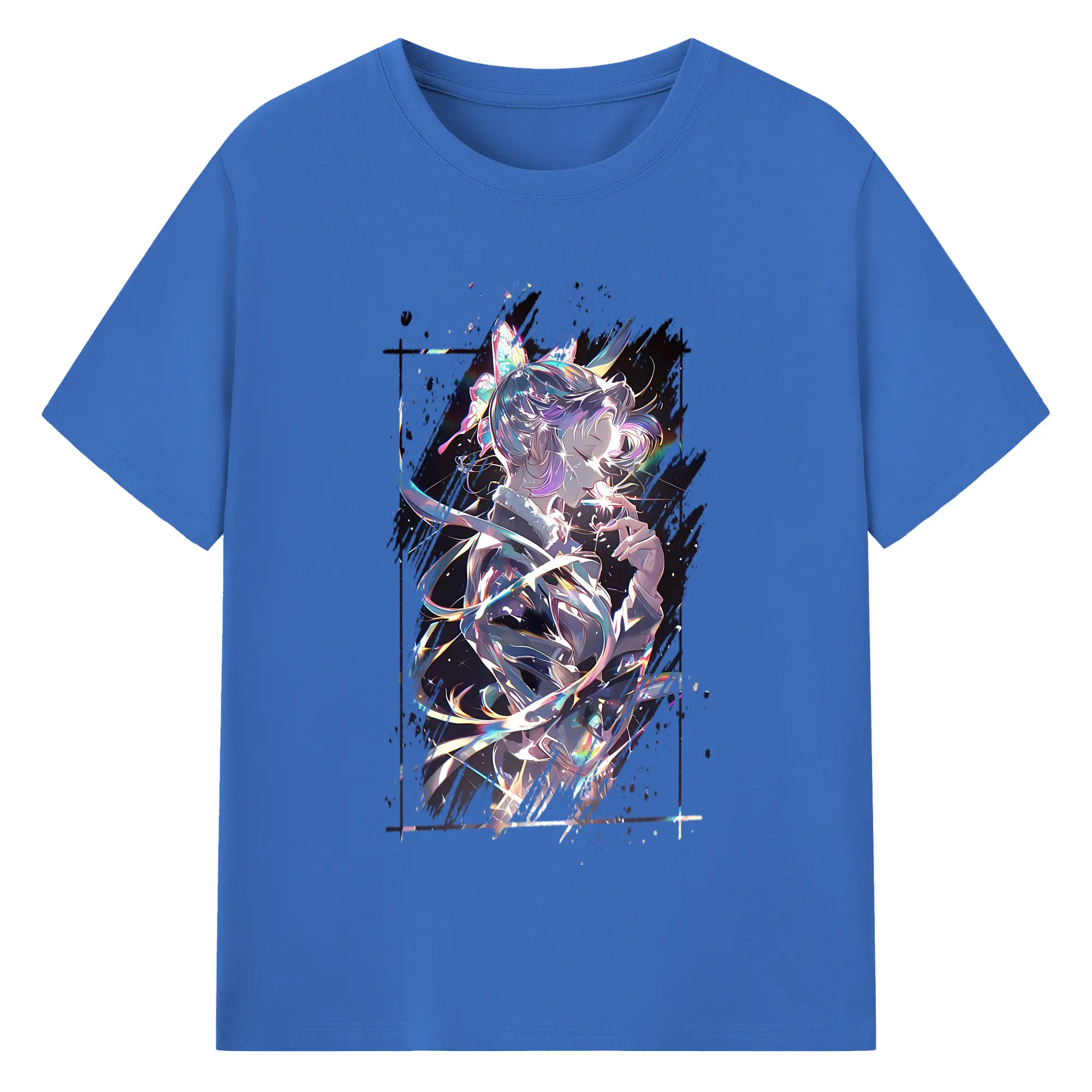 美少女戦士セーラームーン グッズ 水野 亜美 - 綿100% 半袖Tシャツ ・ フロントプリント ・ 快適 通気性 ・ 日常使い 散歩 スポーツ用