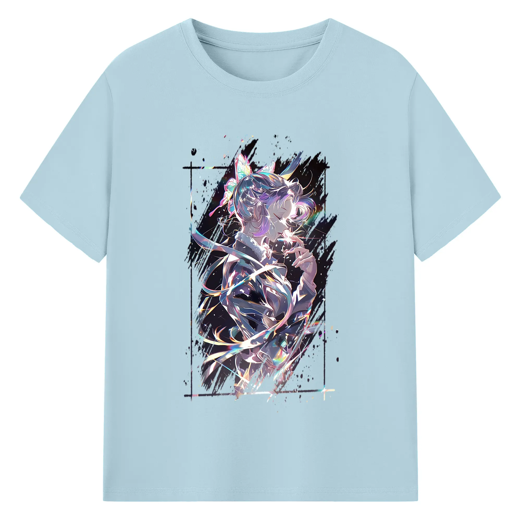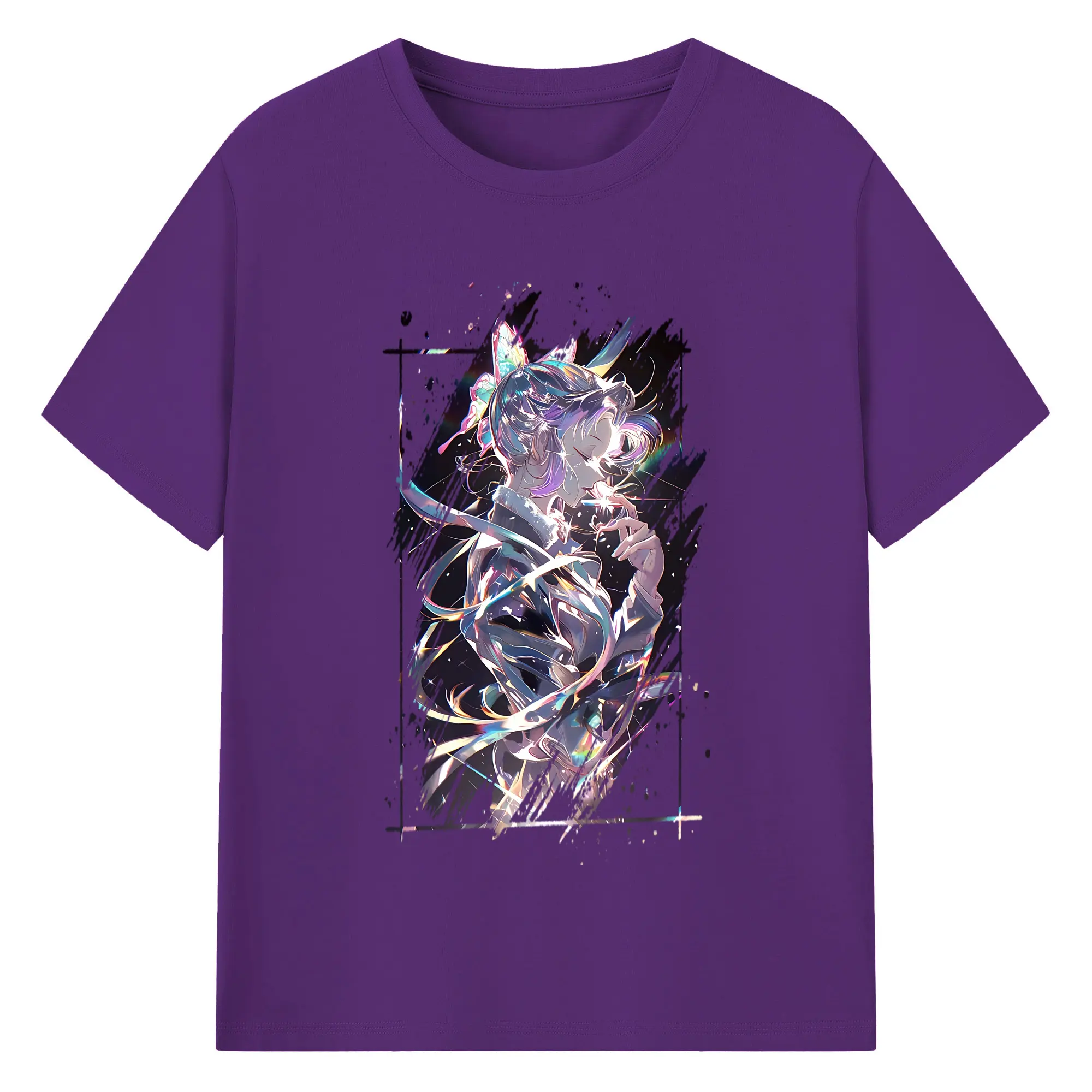 鬼滅の刃 グッズ,胡蝶 しのぶ - 綿100% 半袖Tシャツ ・ バックプリント ・ 快適 通気性 ・ 日常使い 散歩 スポーツ用