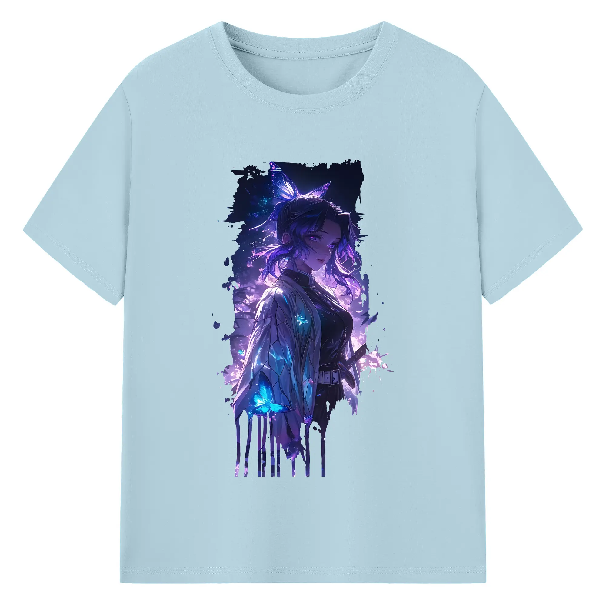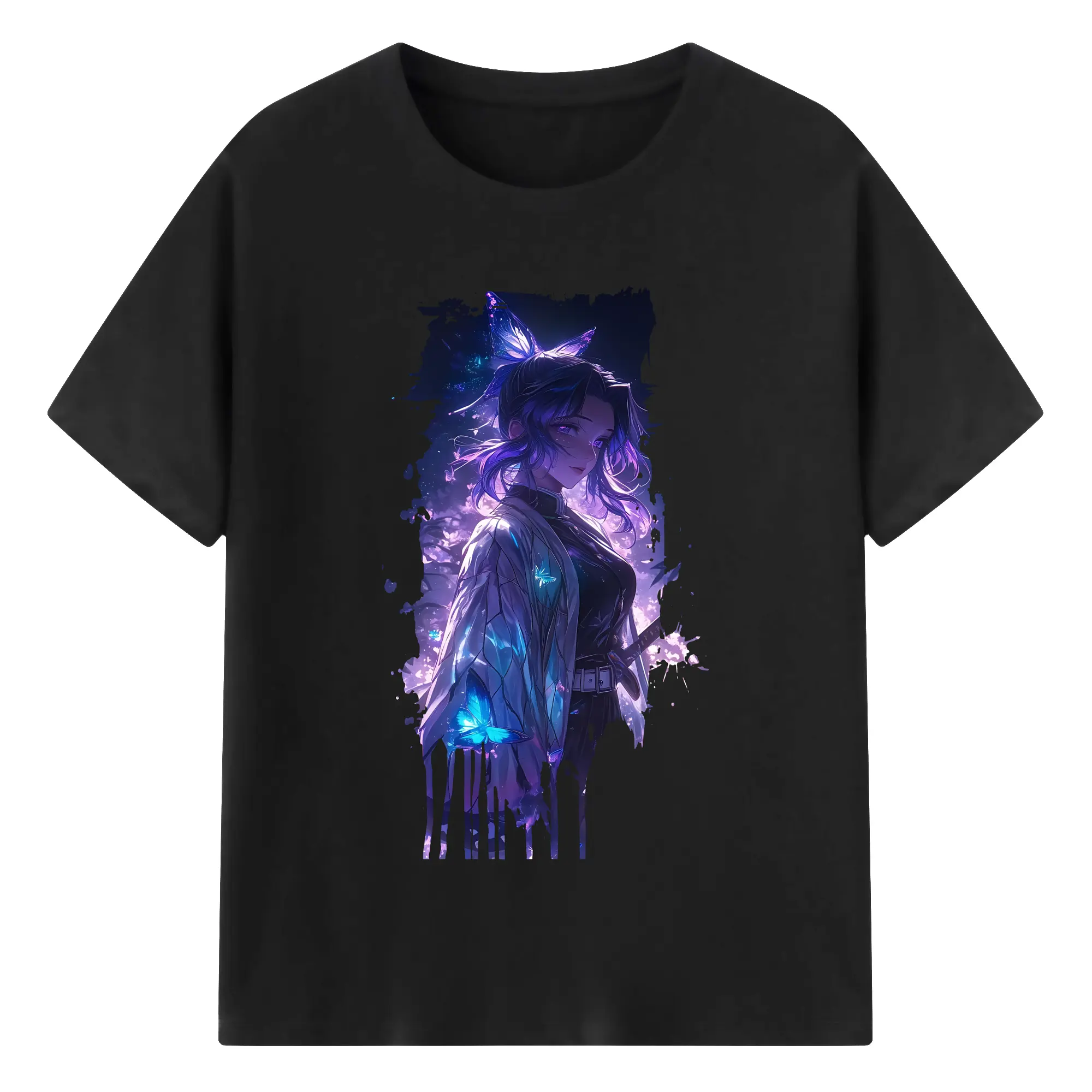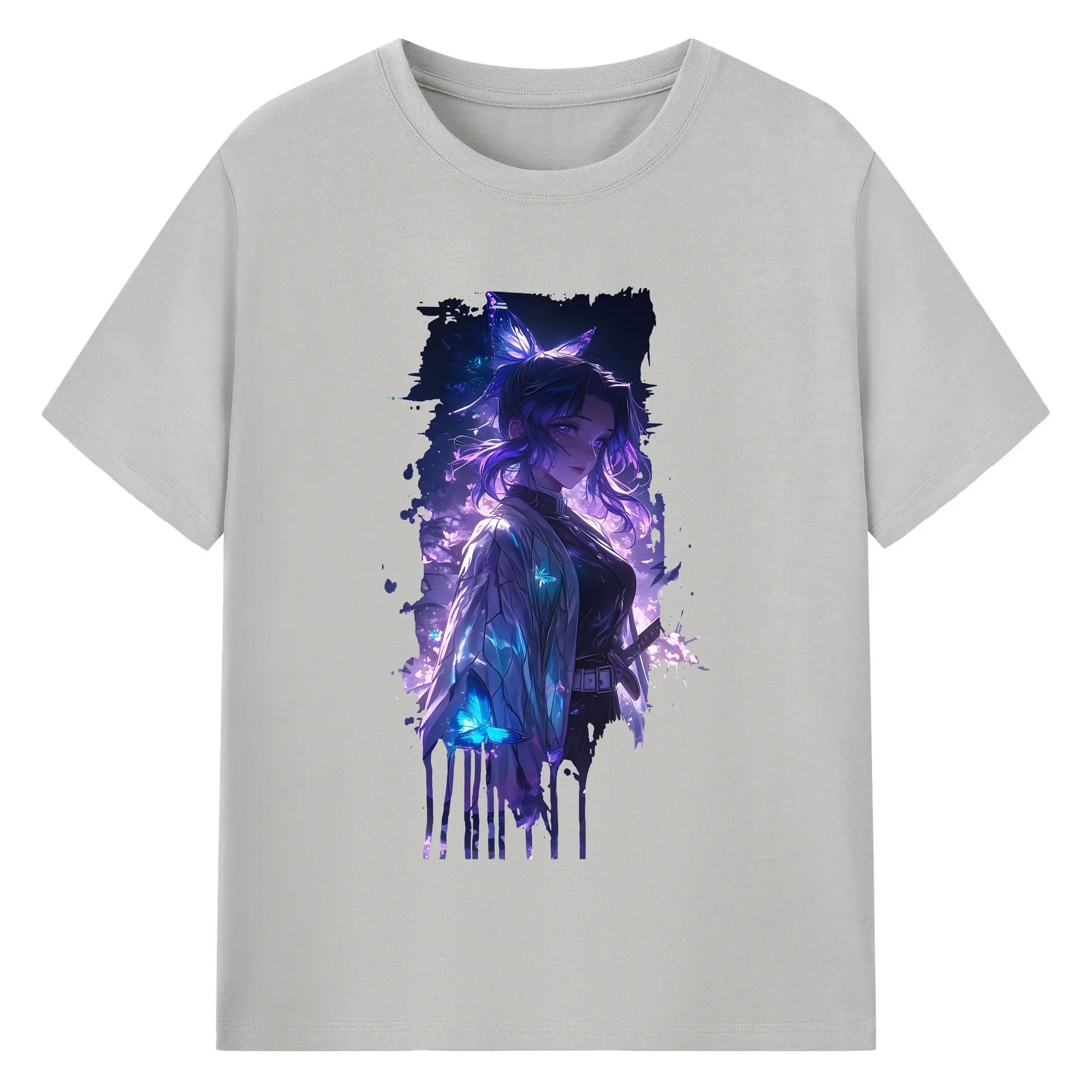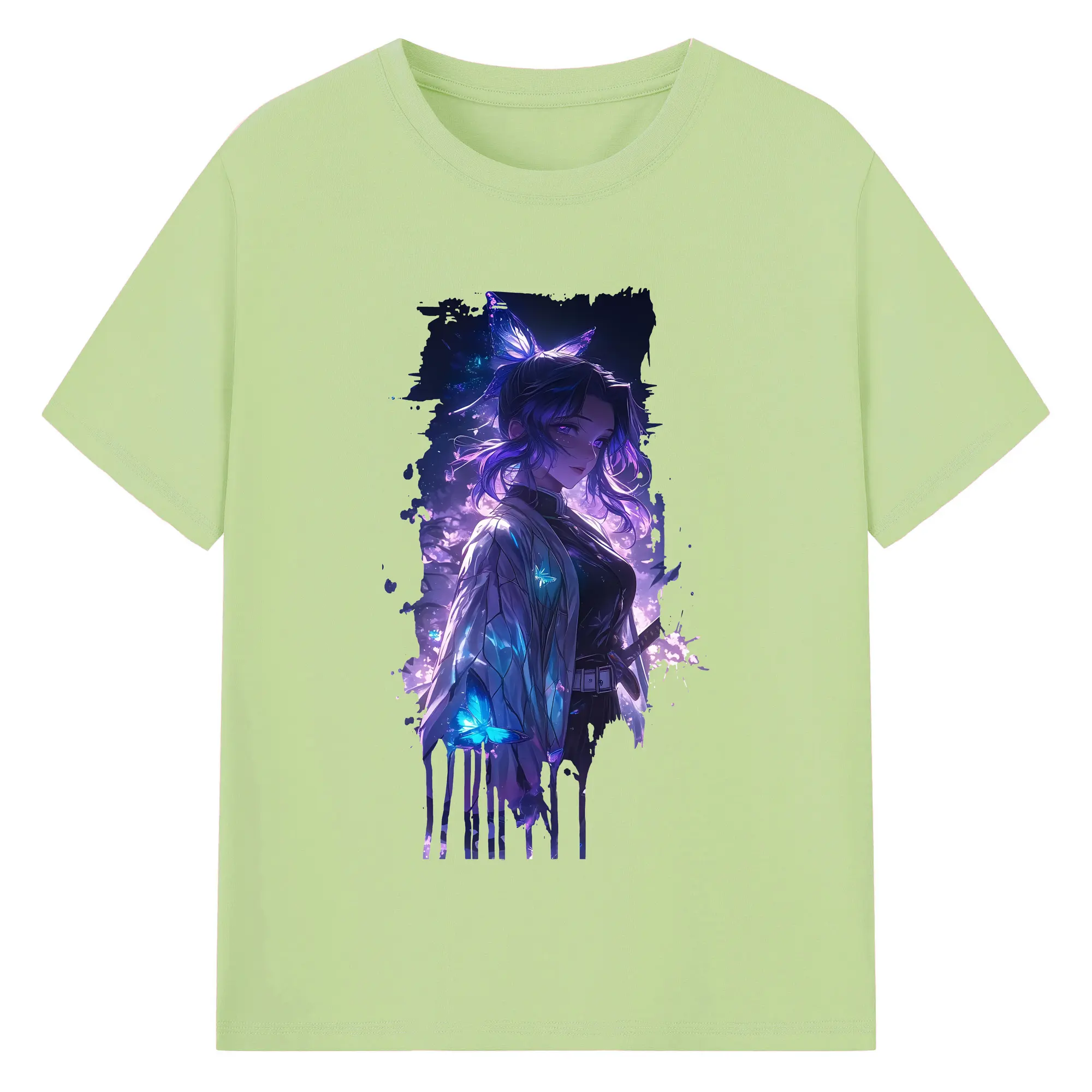 鬼滅の刃 グッズ,胡蝶 しのぶ - 綿100% 半袖Tシャツ ・ バックプリント ・ 快適 通気性 ・ 日常使い 散歩 スポーツ用