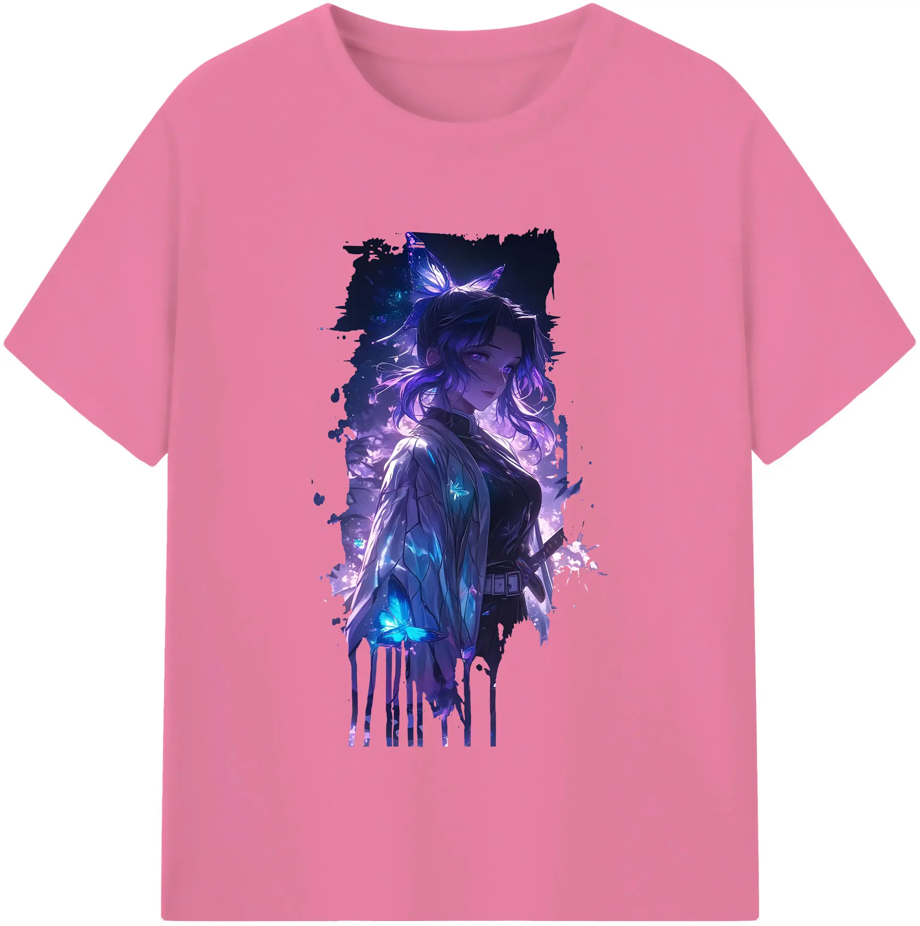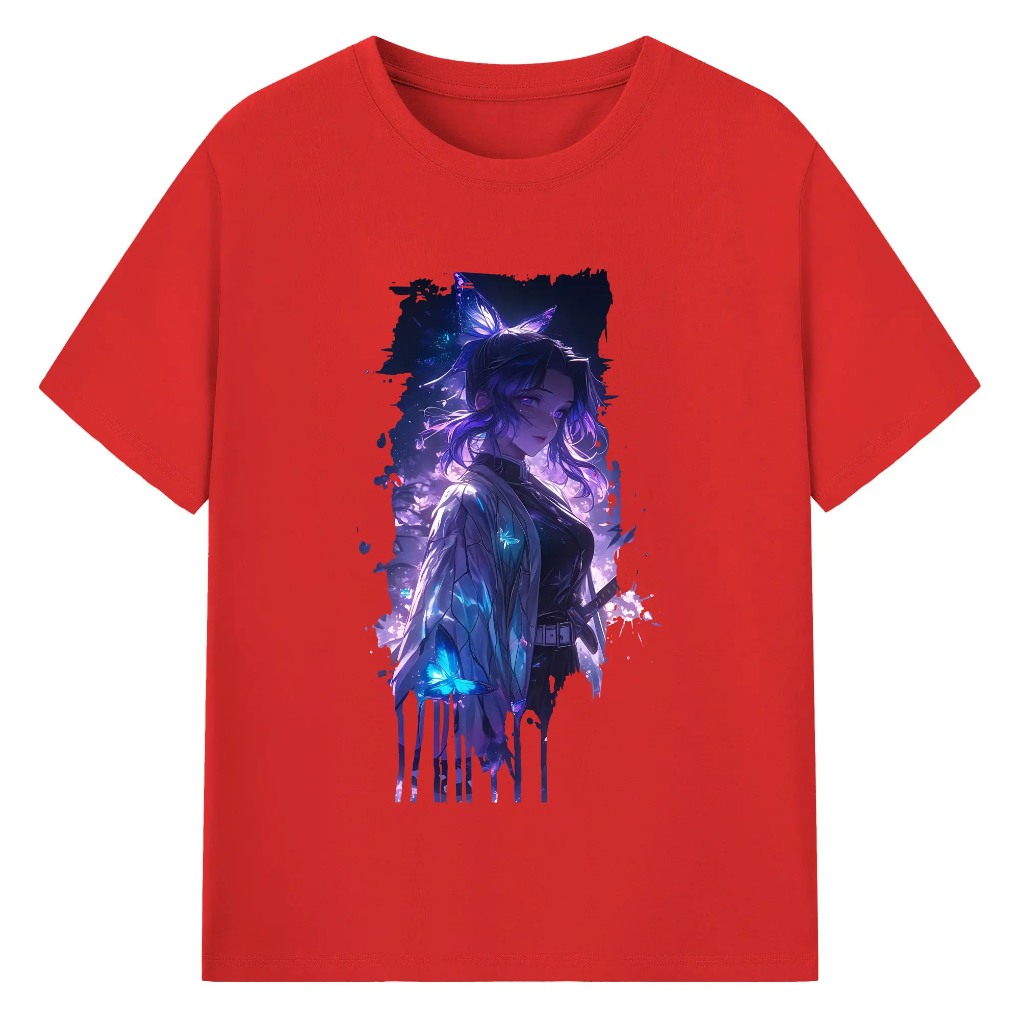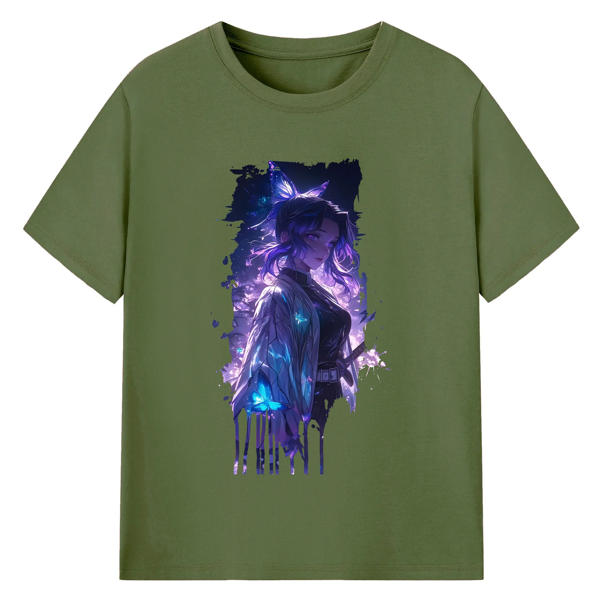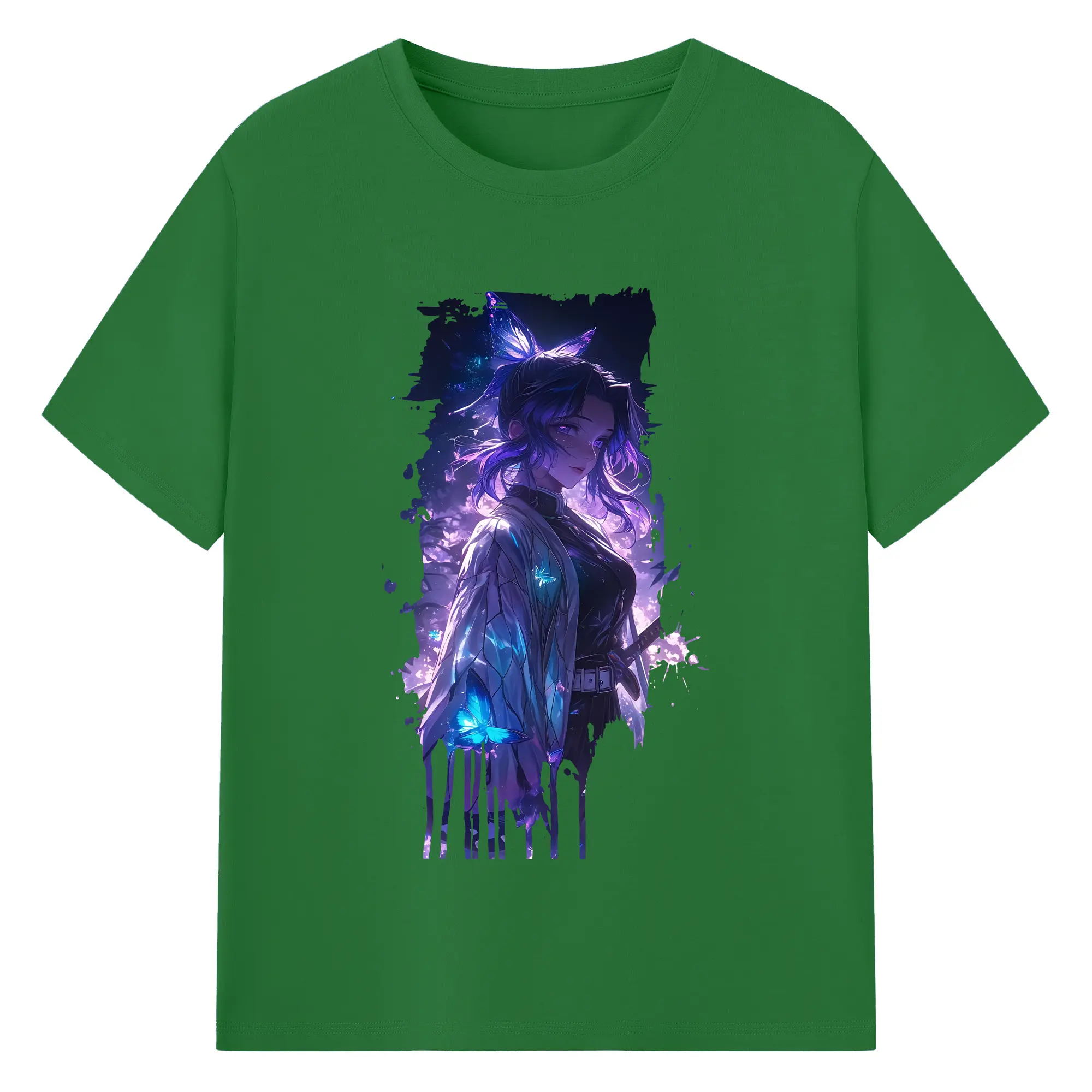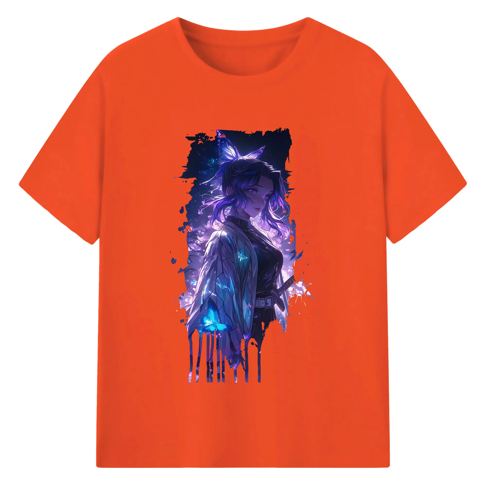 鬼滅の刃 グッズ,胡蝶 しのぶ - 綿100% 半袖Tシャツ ・ バックプリント ・ 快適 通気性 ・ 日常使い 散歩 スポーツ用