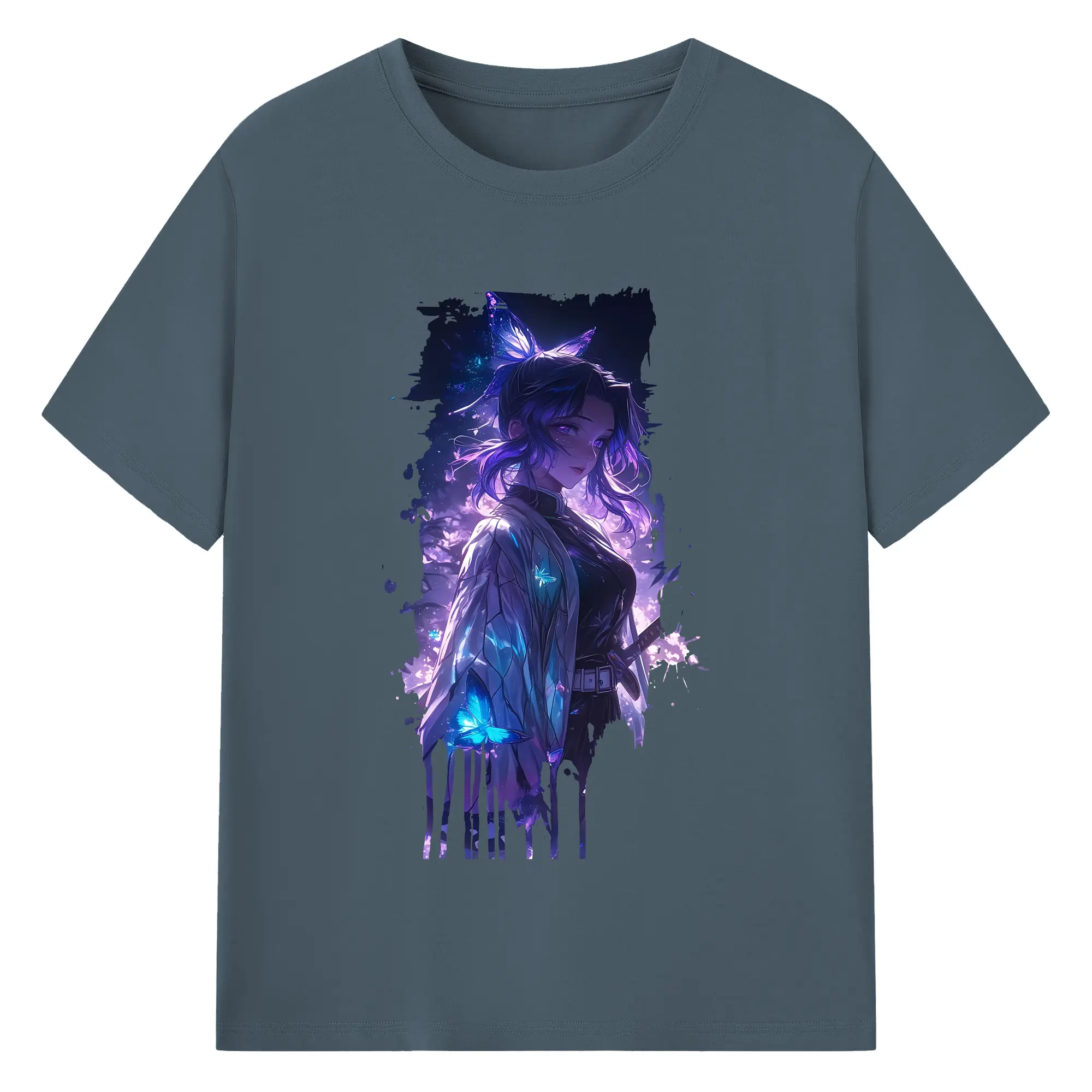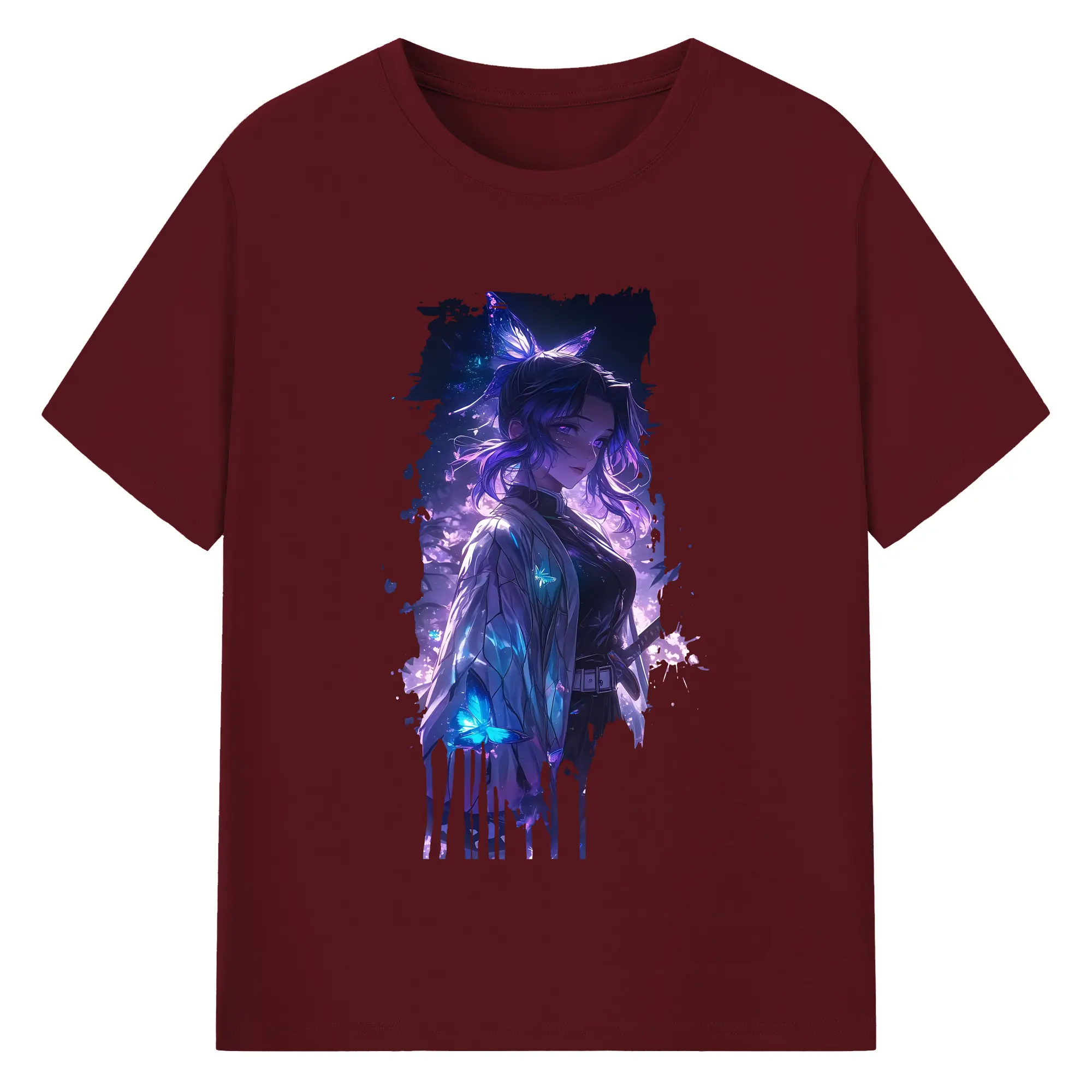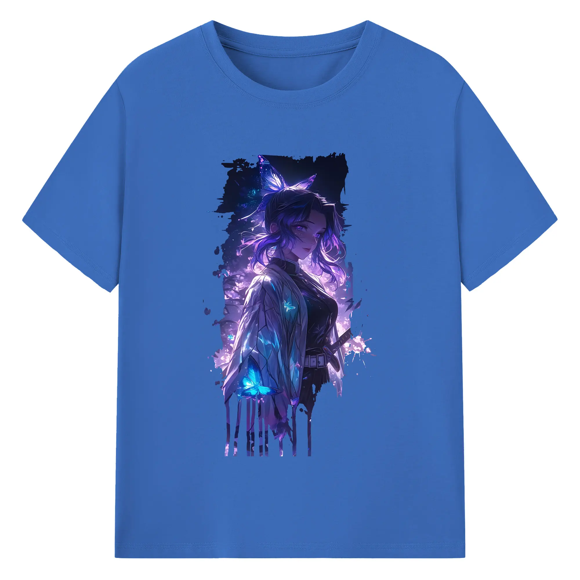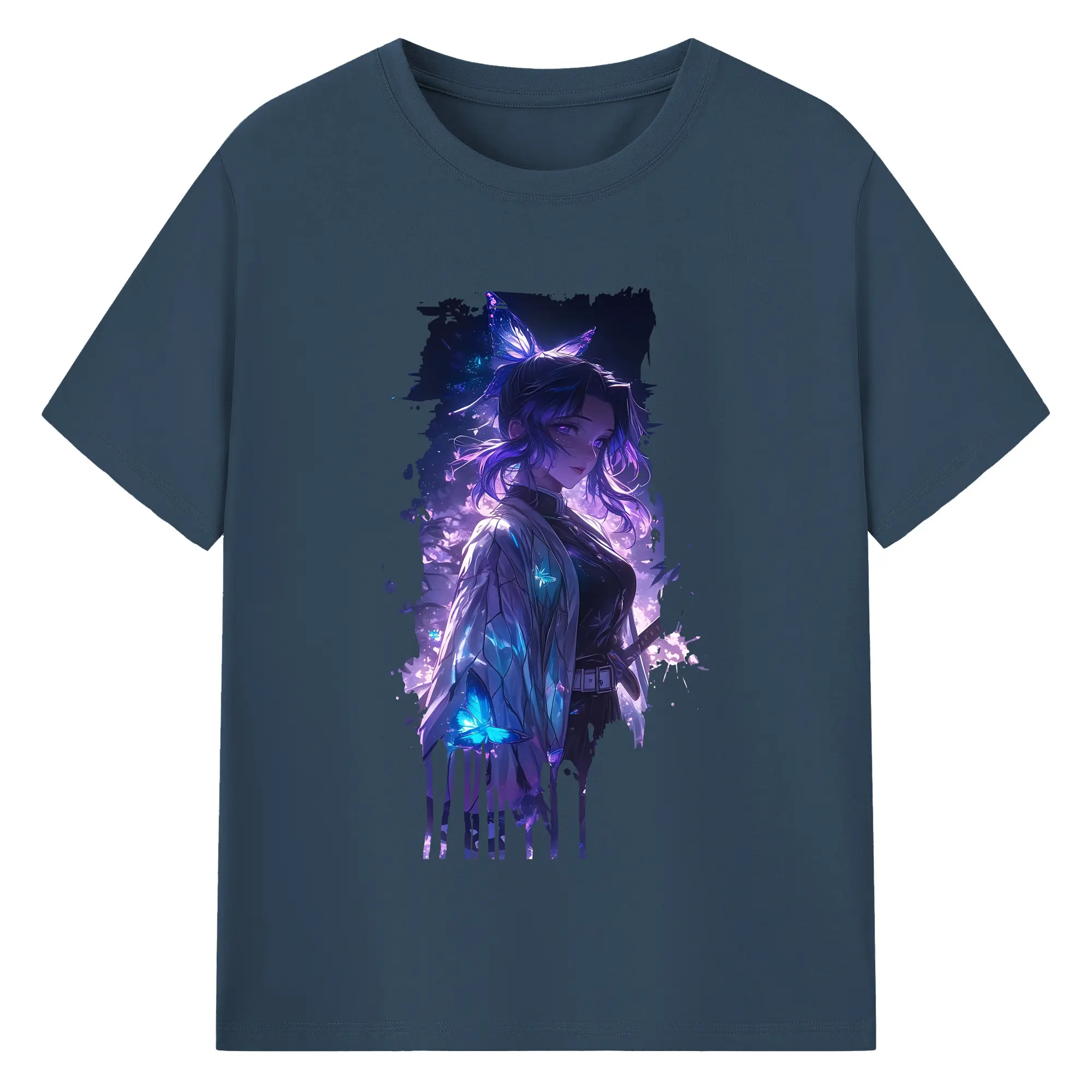 鬼滅の刃 グッズ,胡蝶 しのぶ - 綿100% 半袖Tシャツ ・ バックプリント ・ 快適 通気性 ・ 日常使い 散歩 スポーツ用