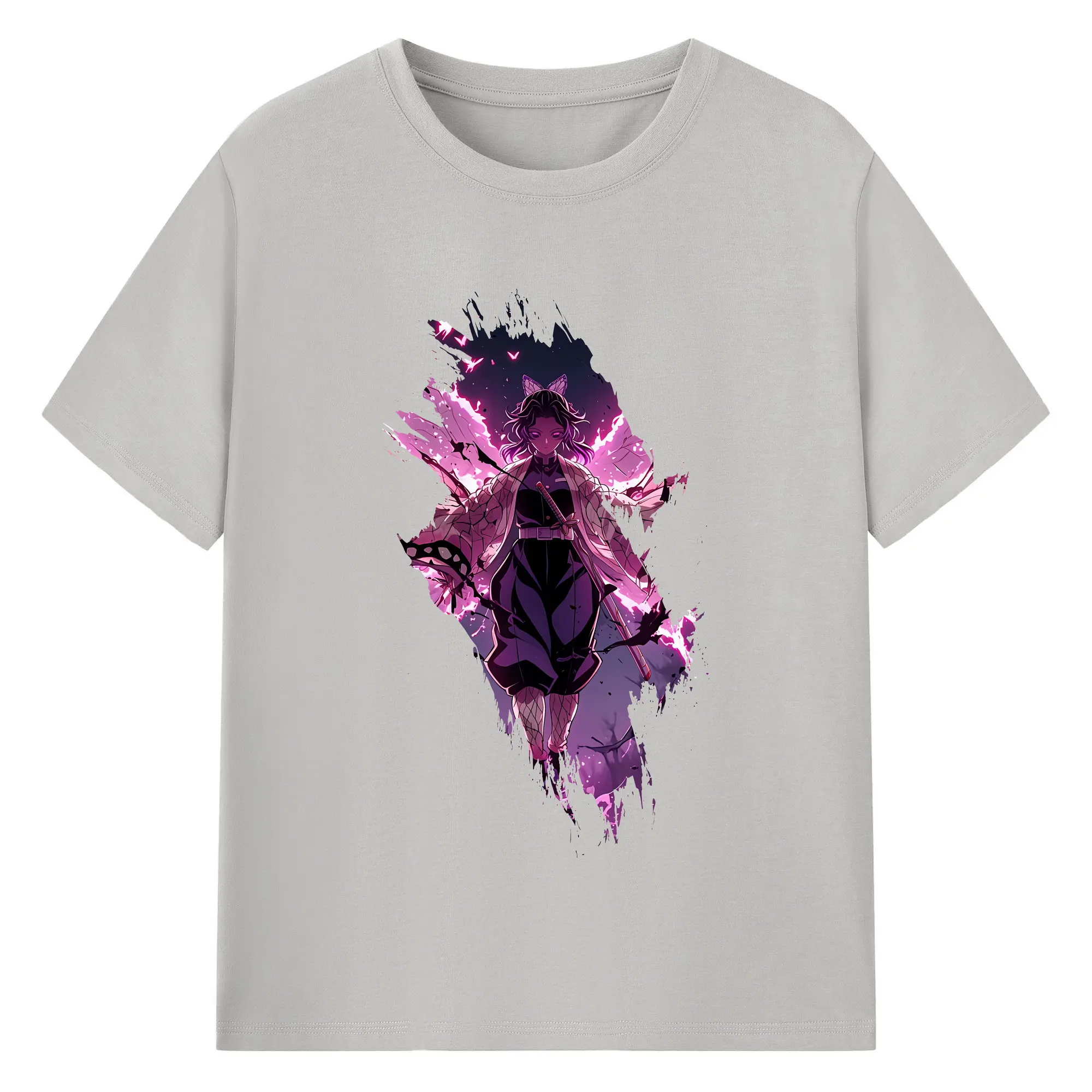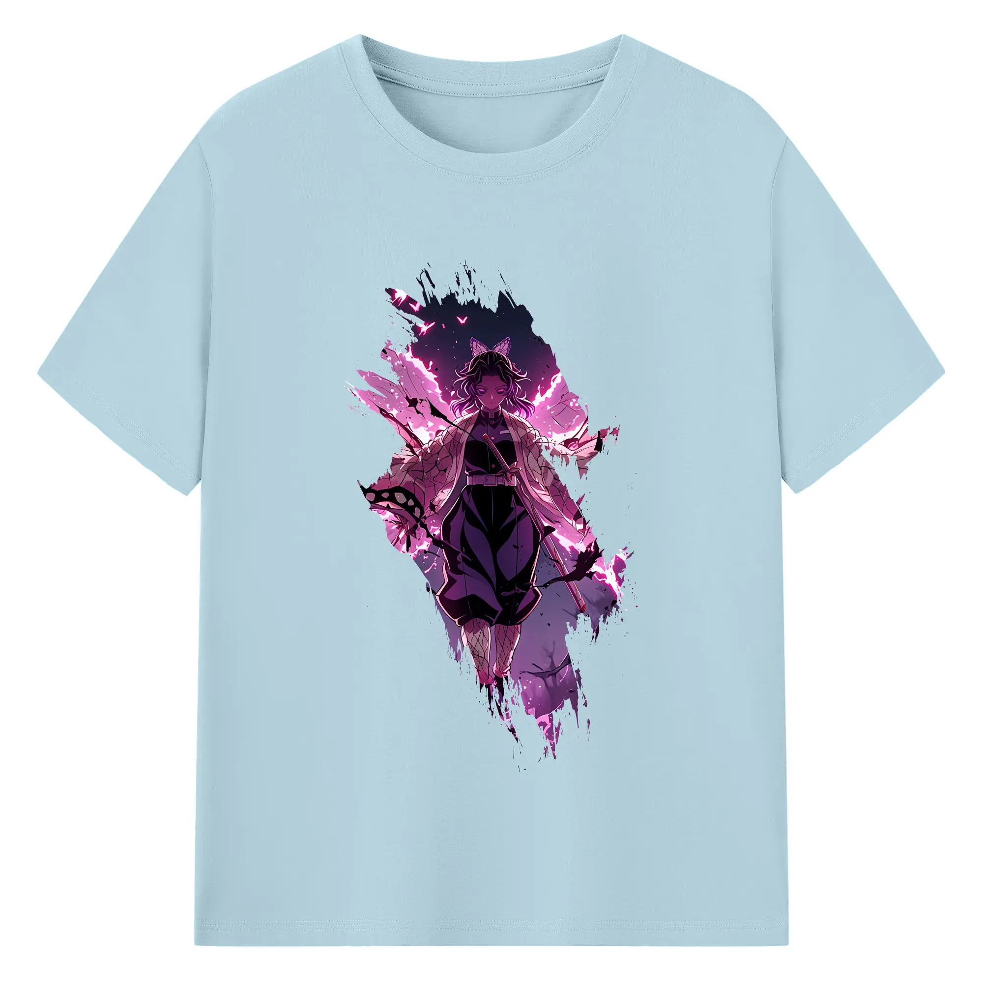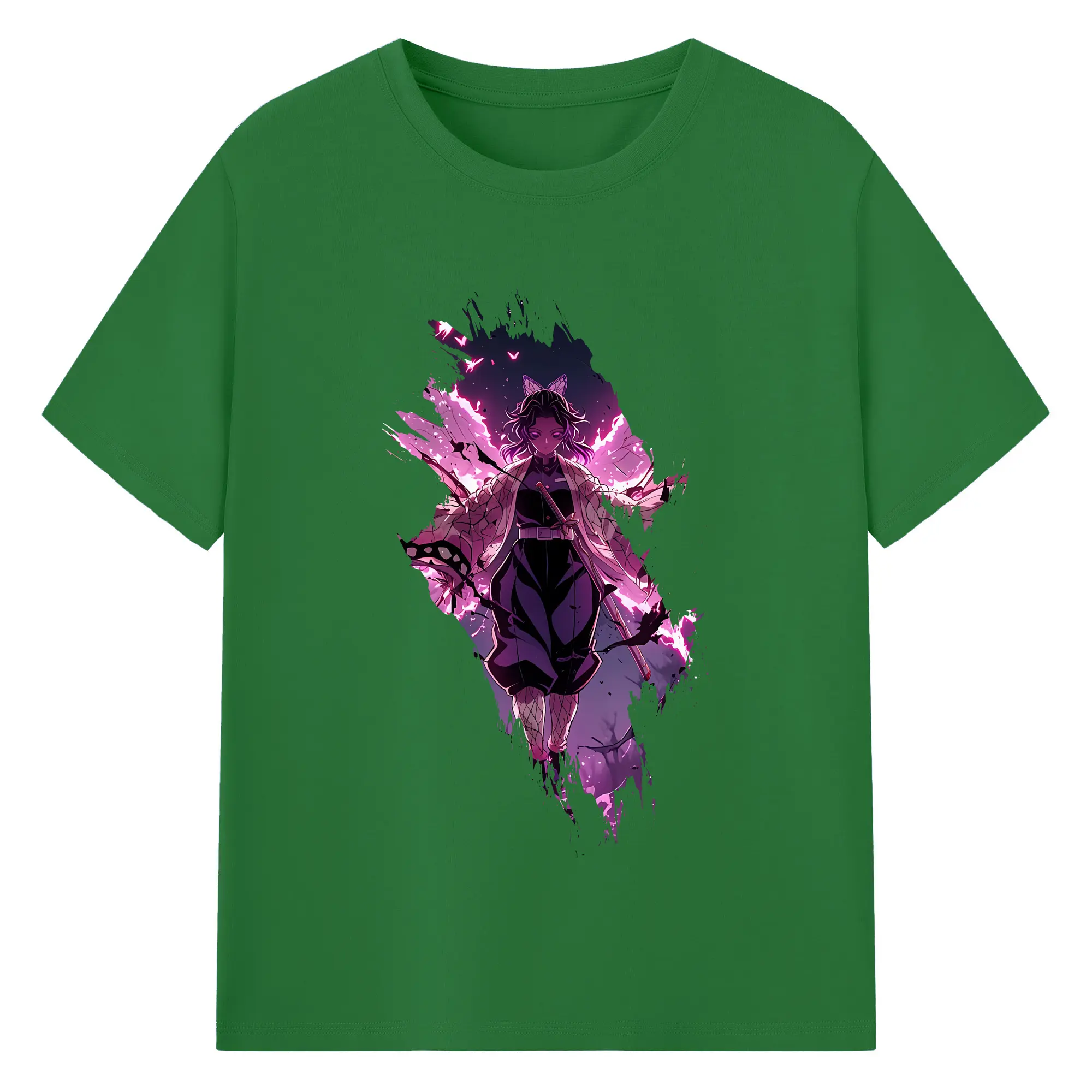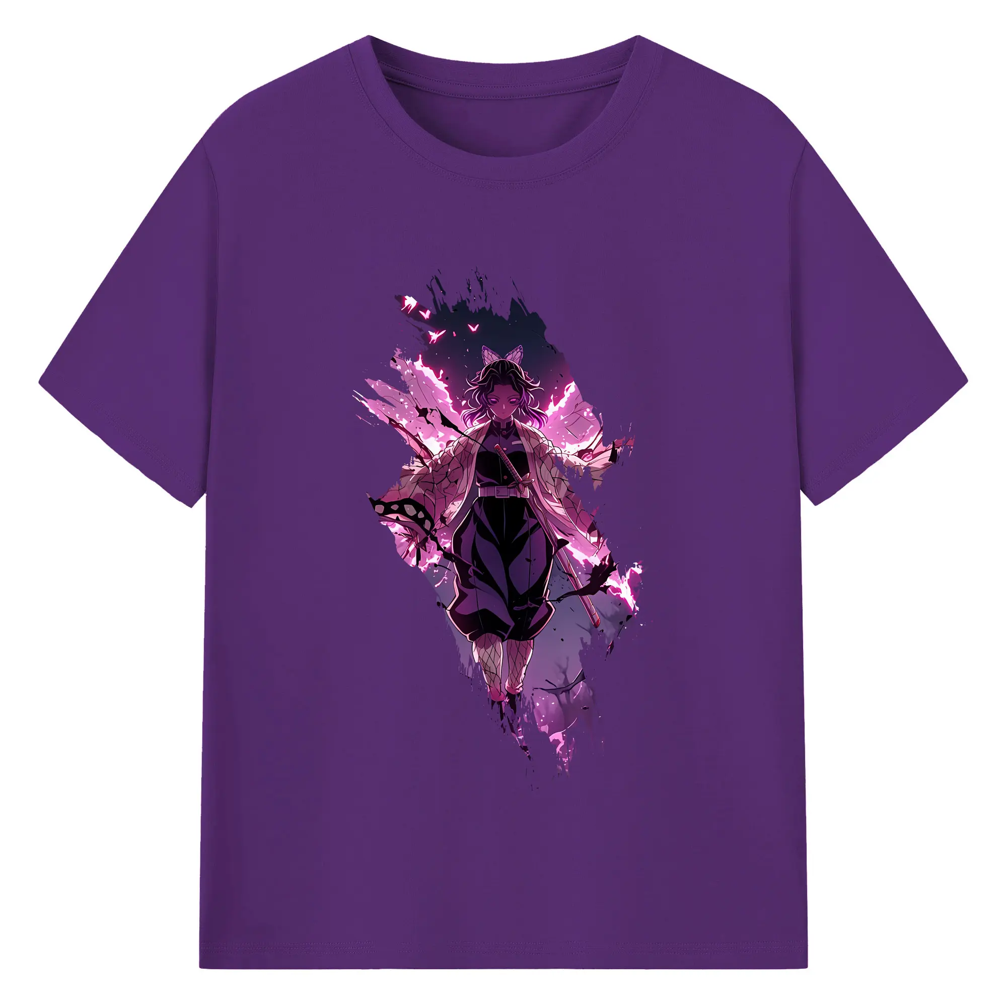 鬼滅の刃 グッズ,胡蝶 しのぶ - 綿100% 半袖Tシャツ ・ フロントプリント ・ 快適 通気性 ・ 日常使い 散歩 スポーツ用