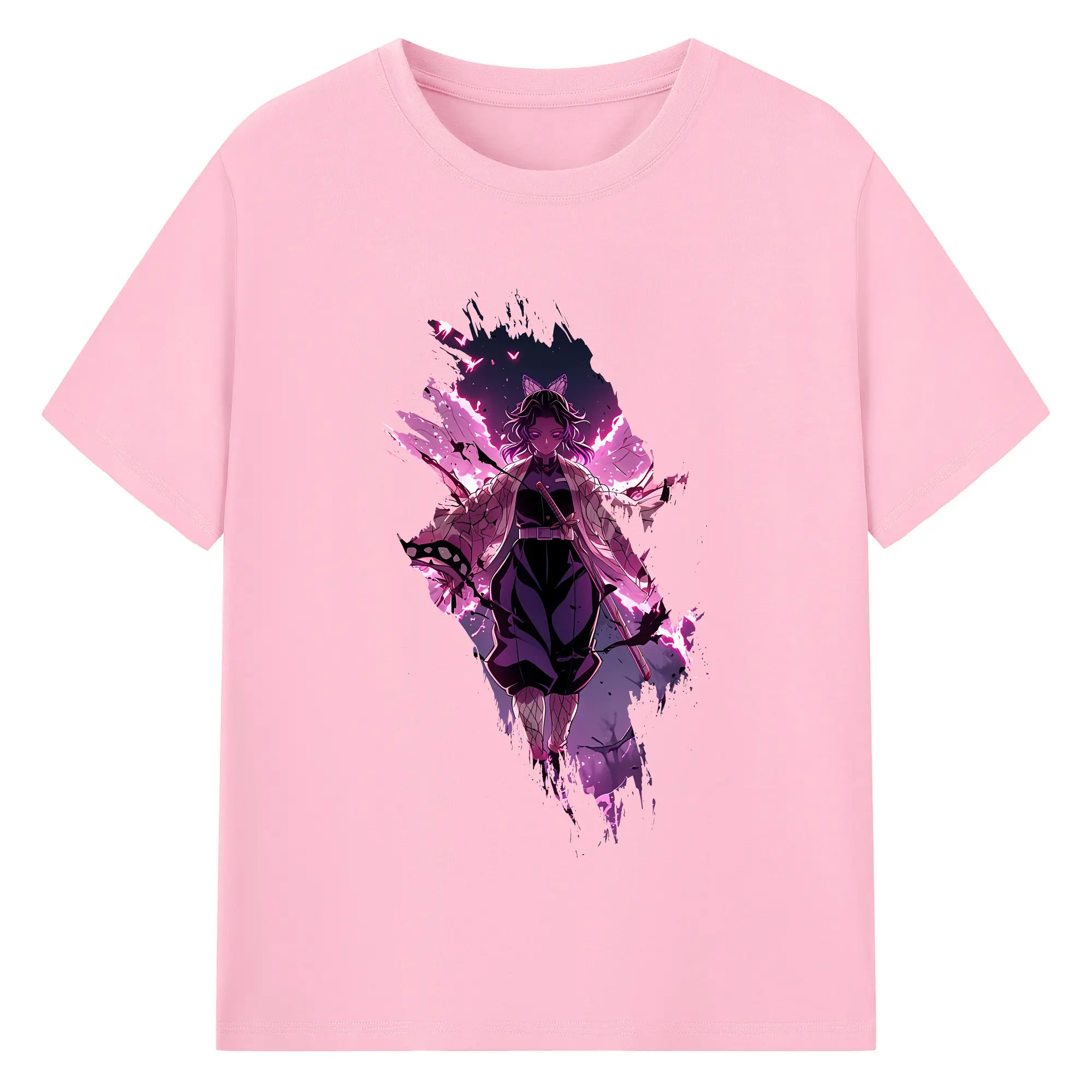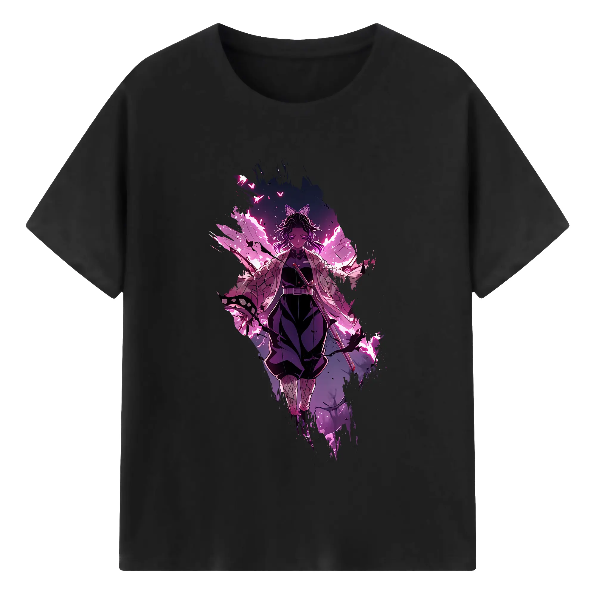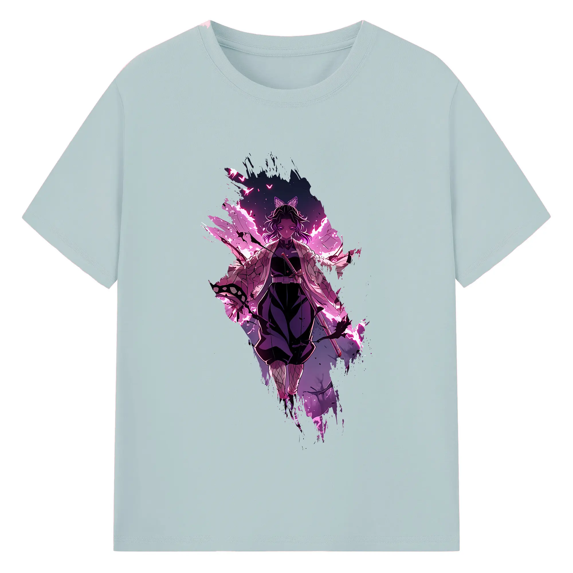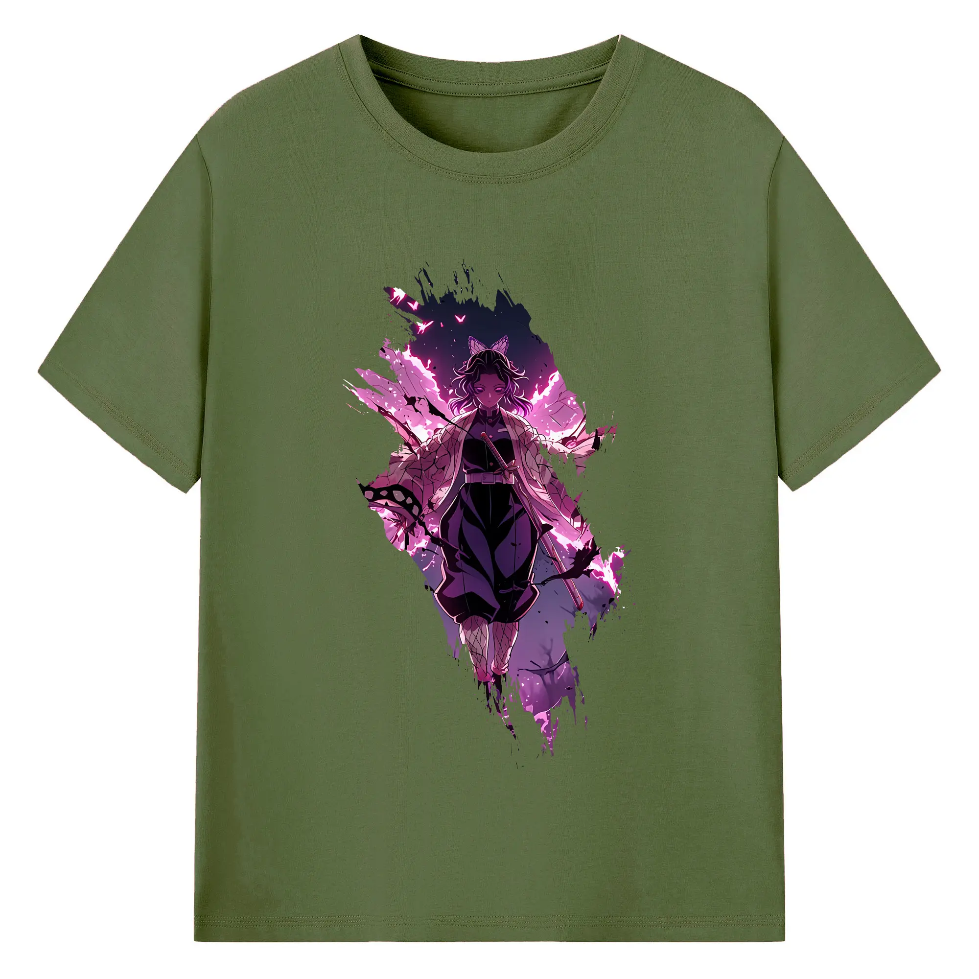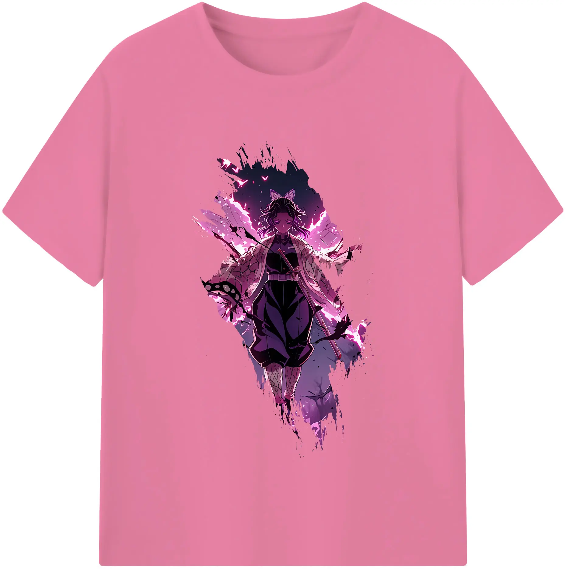 鬼滅の刃 グッズ,胡蝶 しのぶ - 綿100% 半袖Tシャツ ・ フロントプリント ・ 快適 通気性 ・ 日常使い 散歩 スポーツ用
