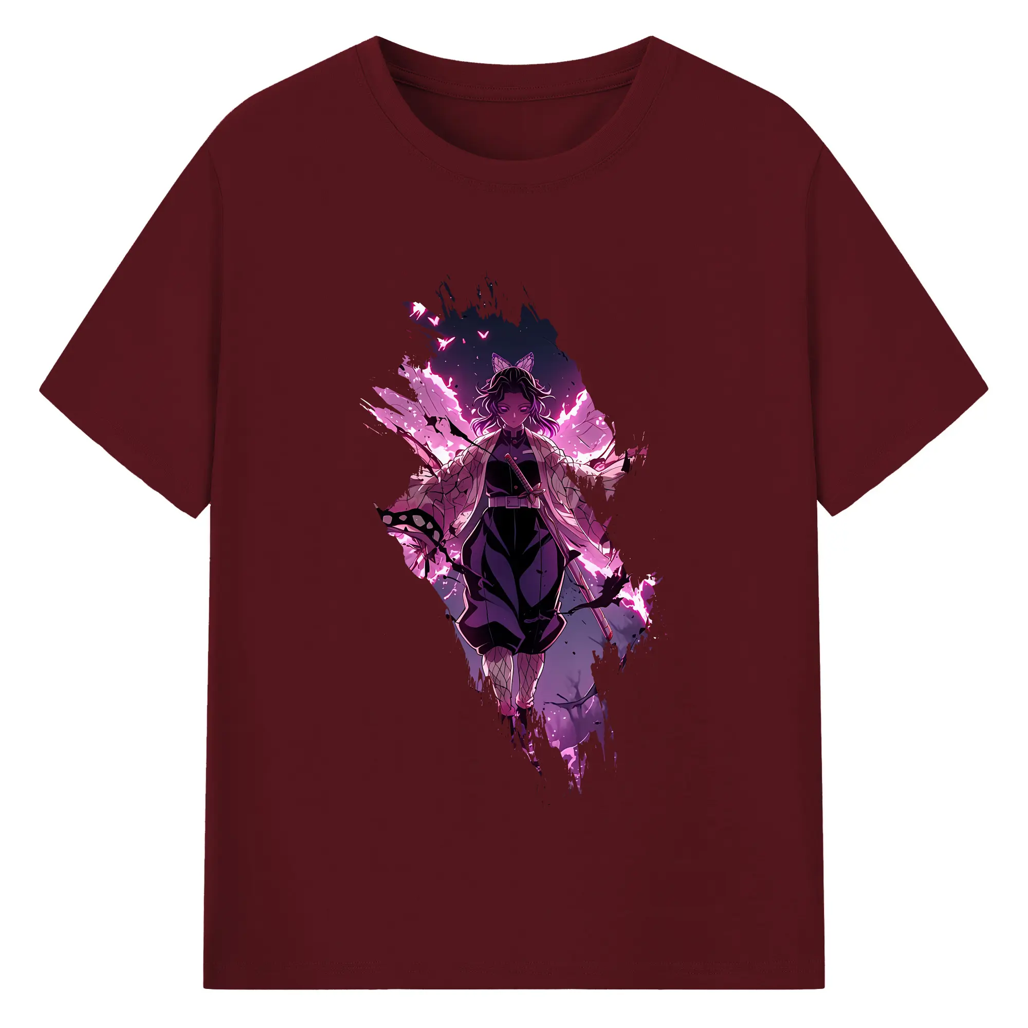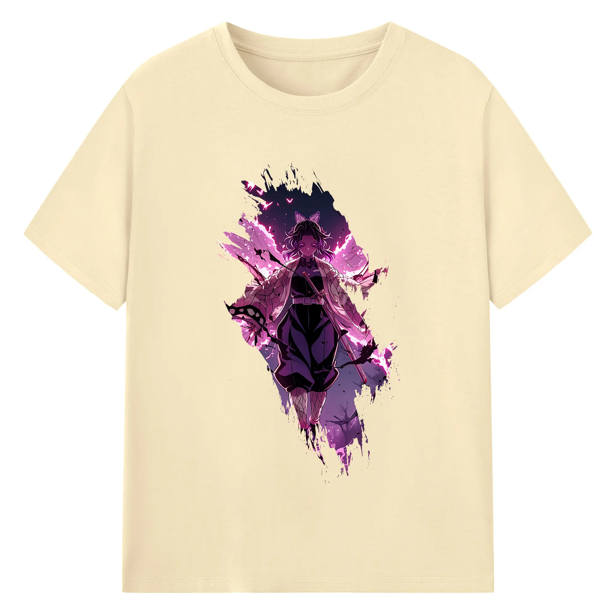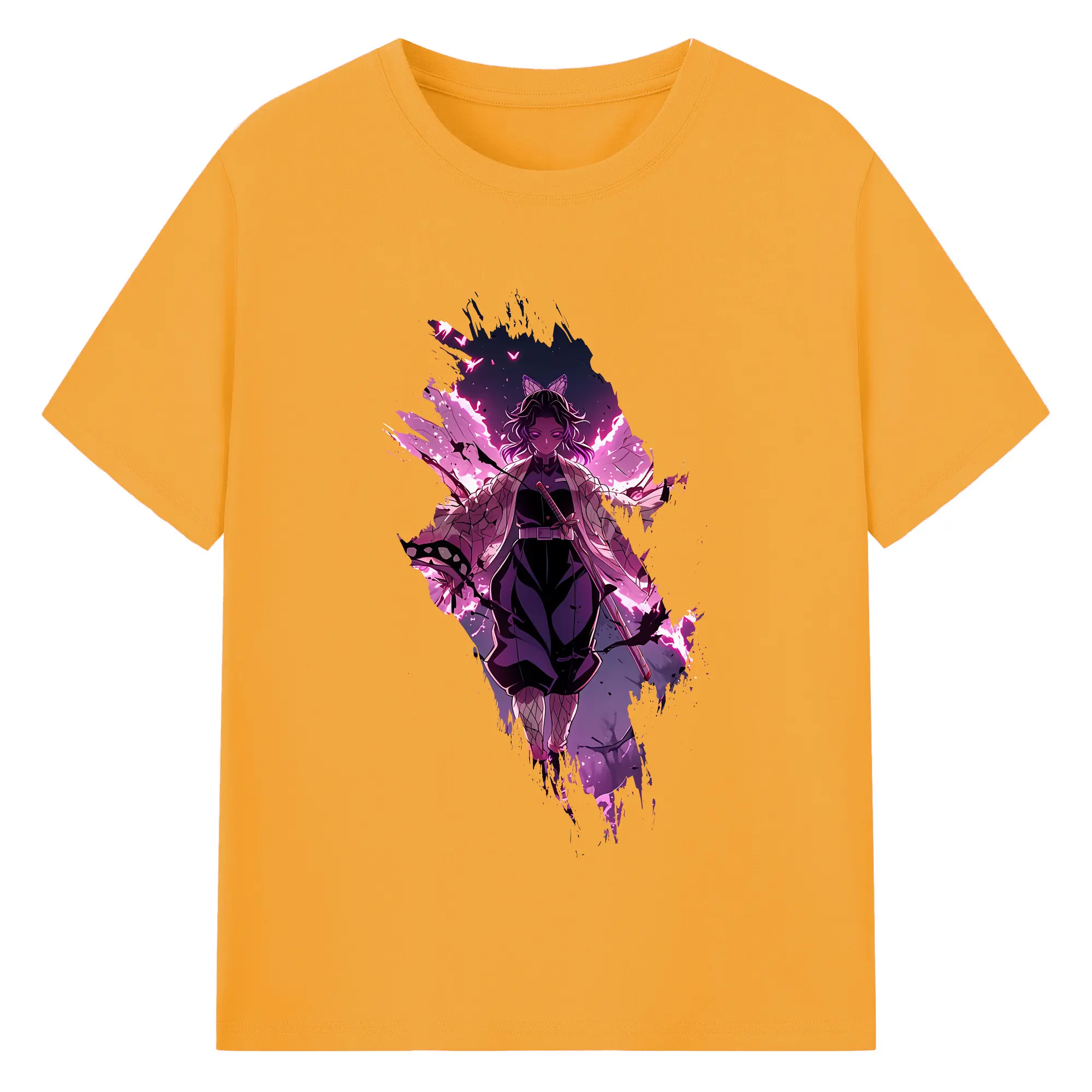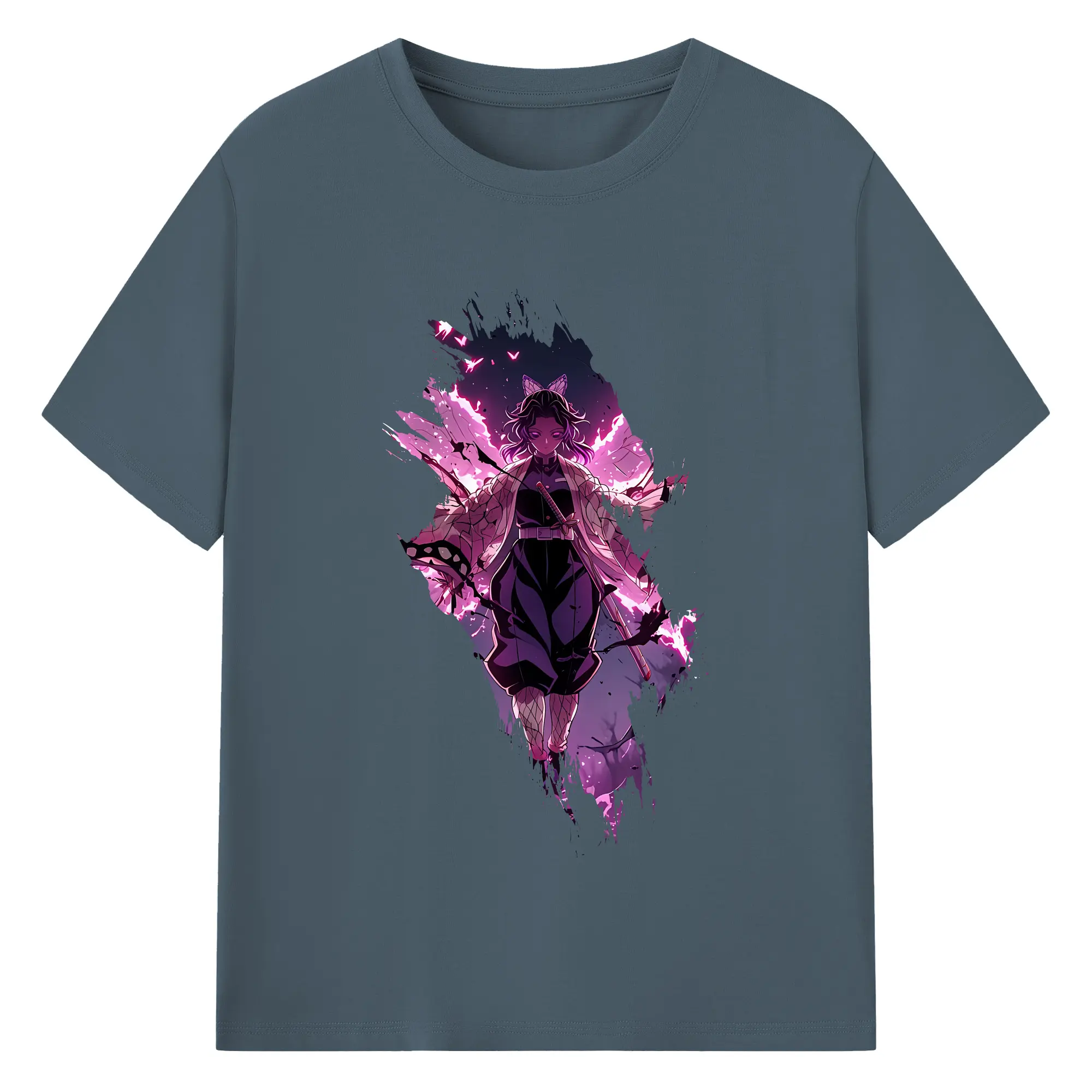 鬼滅の刃 グッズ,胡蝶 しのぶ - 綿100% 半袖Tシャツ ・ フロントプリント ・ 快適 通気性 ・ 日常使い 散歩 スポーツ用