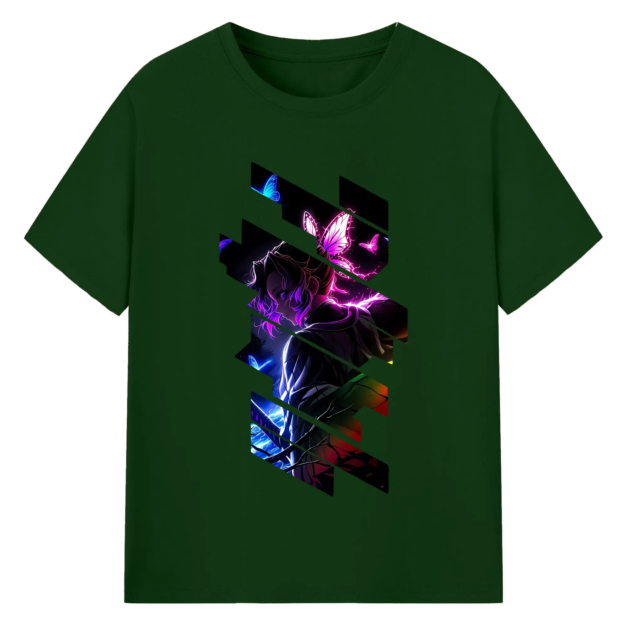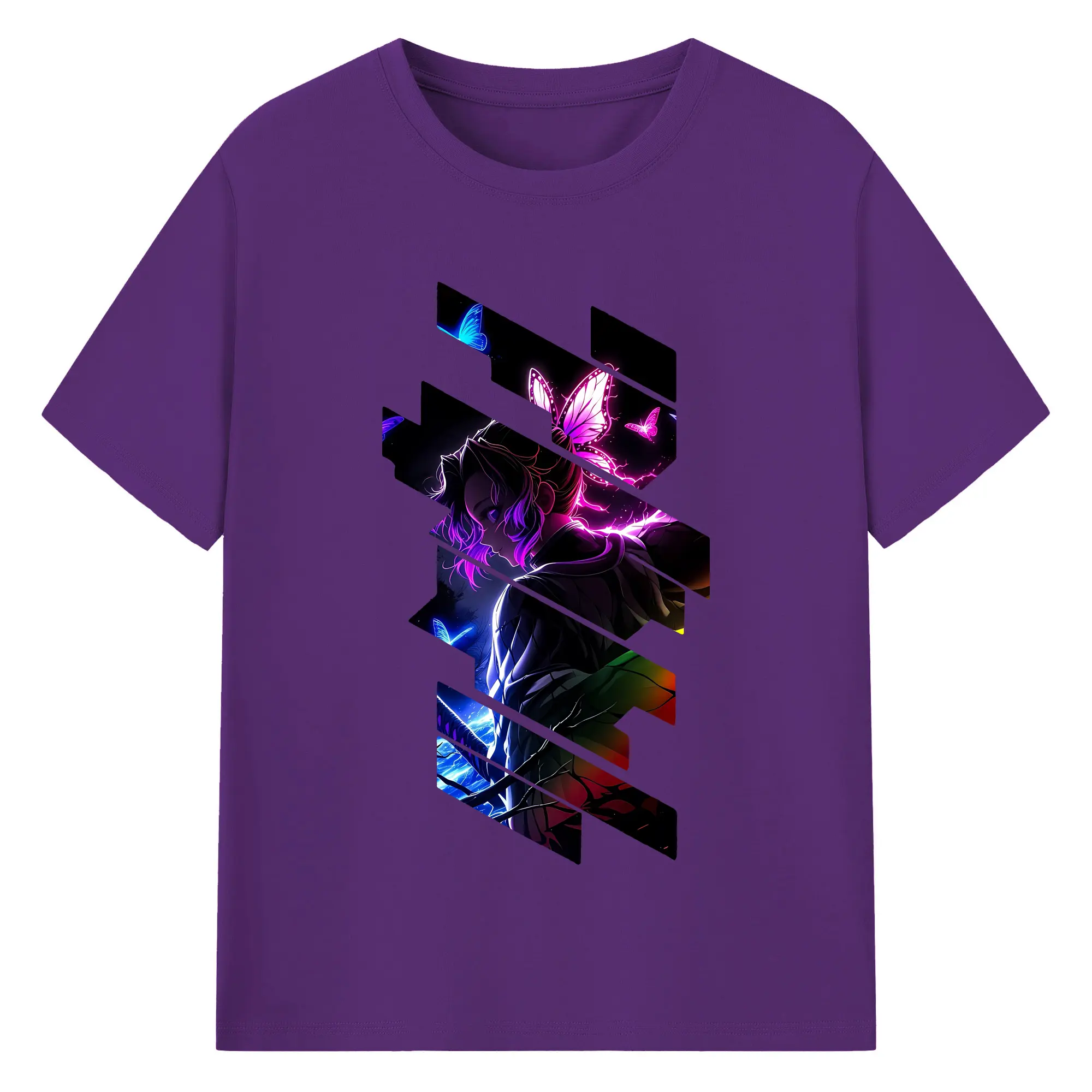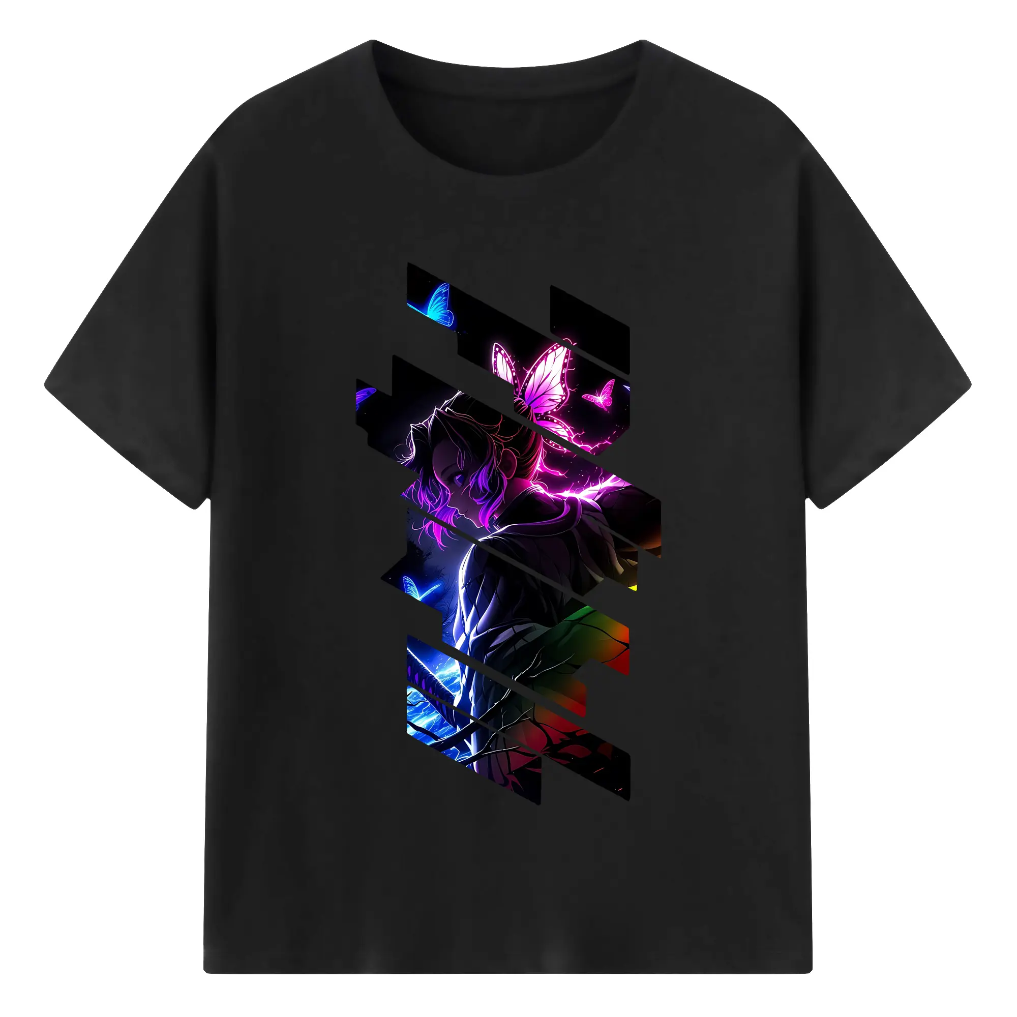 鬼滅の刃 グッズ,胡蝶 しのぶ - 綿100% 半袖Tシャツ ・ バックプリント ・ 快適 通気性 ・ 日常使い 散歩 スポーツ用