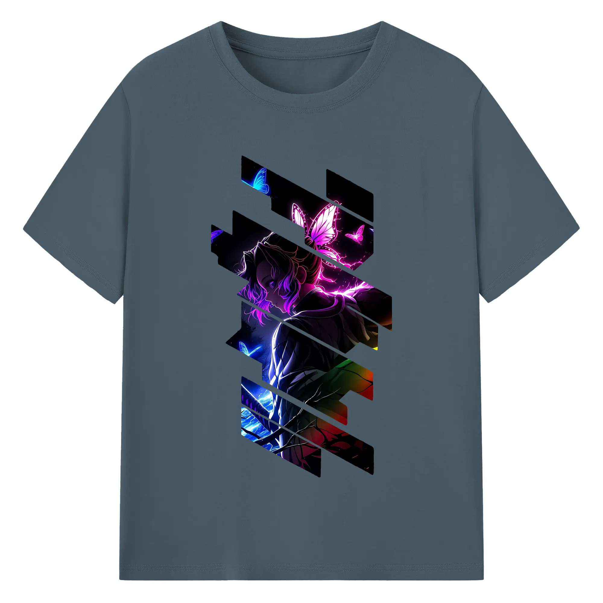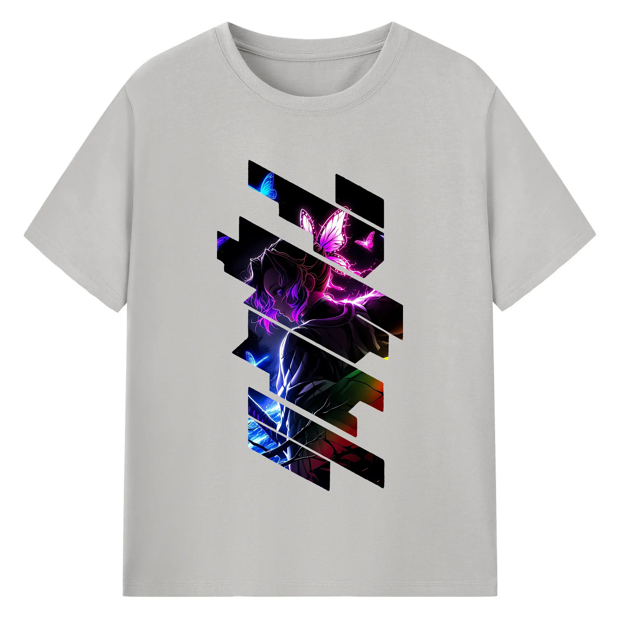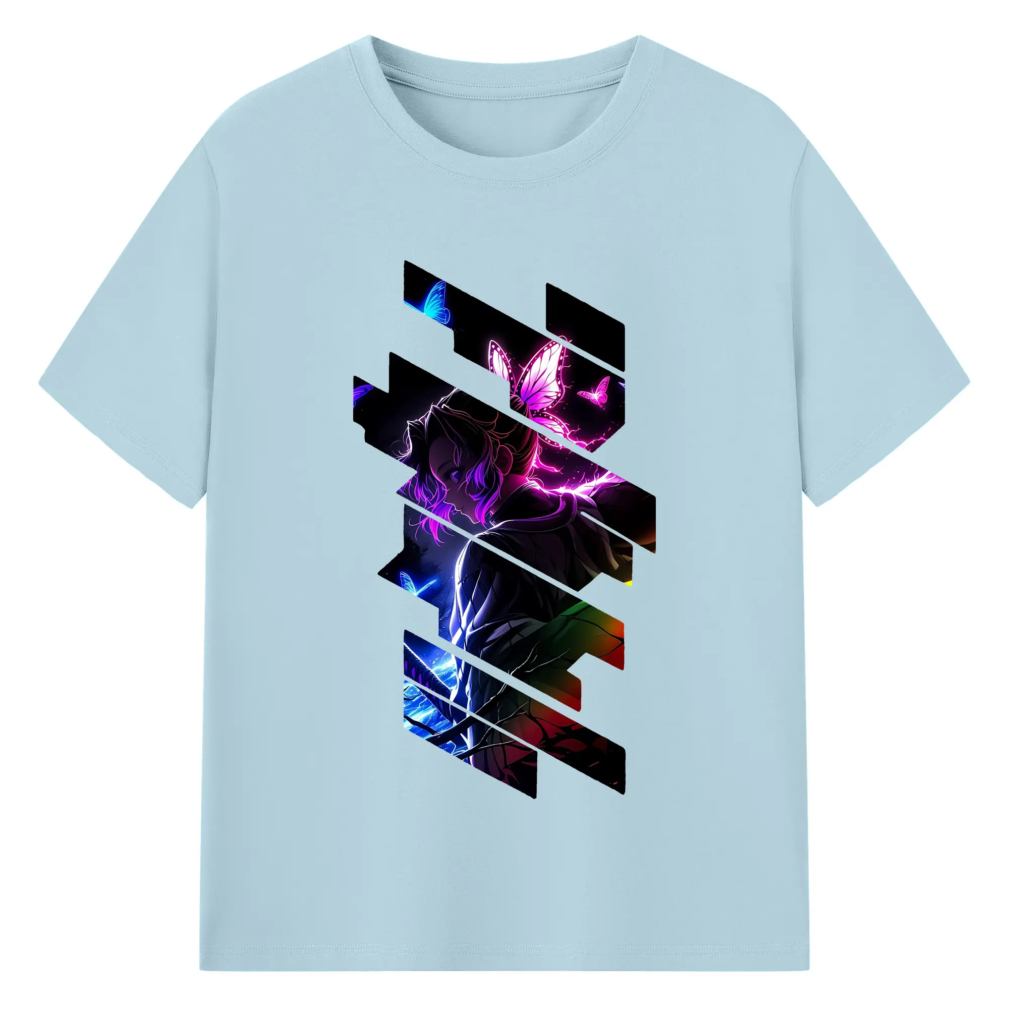 鬼滅の刃 グッズ,胡蝶 しのぶ - 綿100% 半袖Tシャツ ・ バックプリント ・ 快適 通気性 ・ 日常使い 散歩 スポーツ用