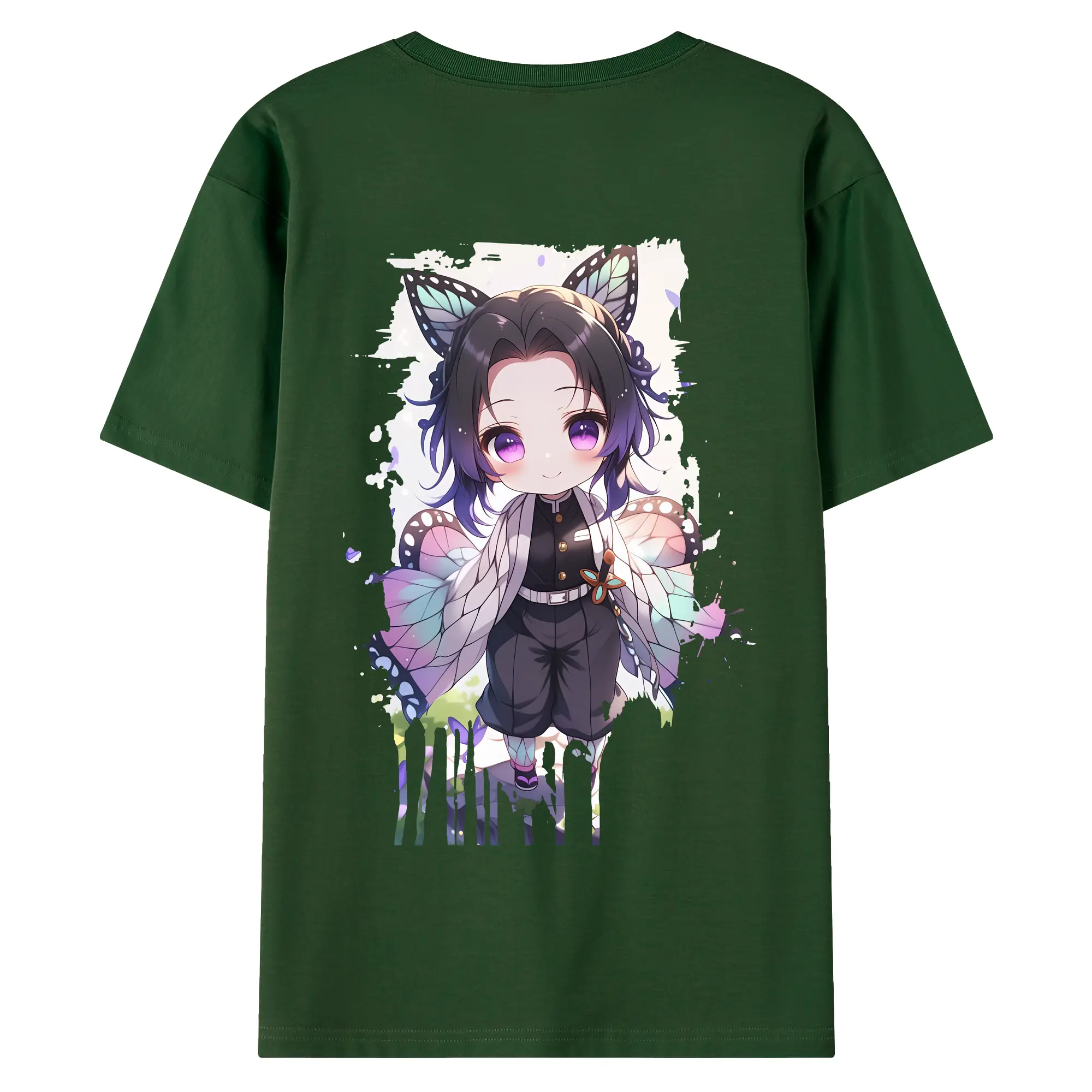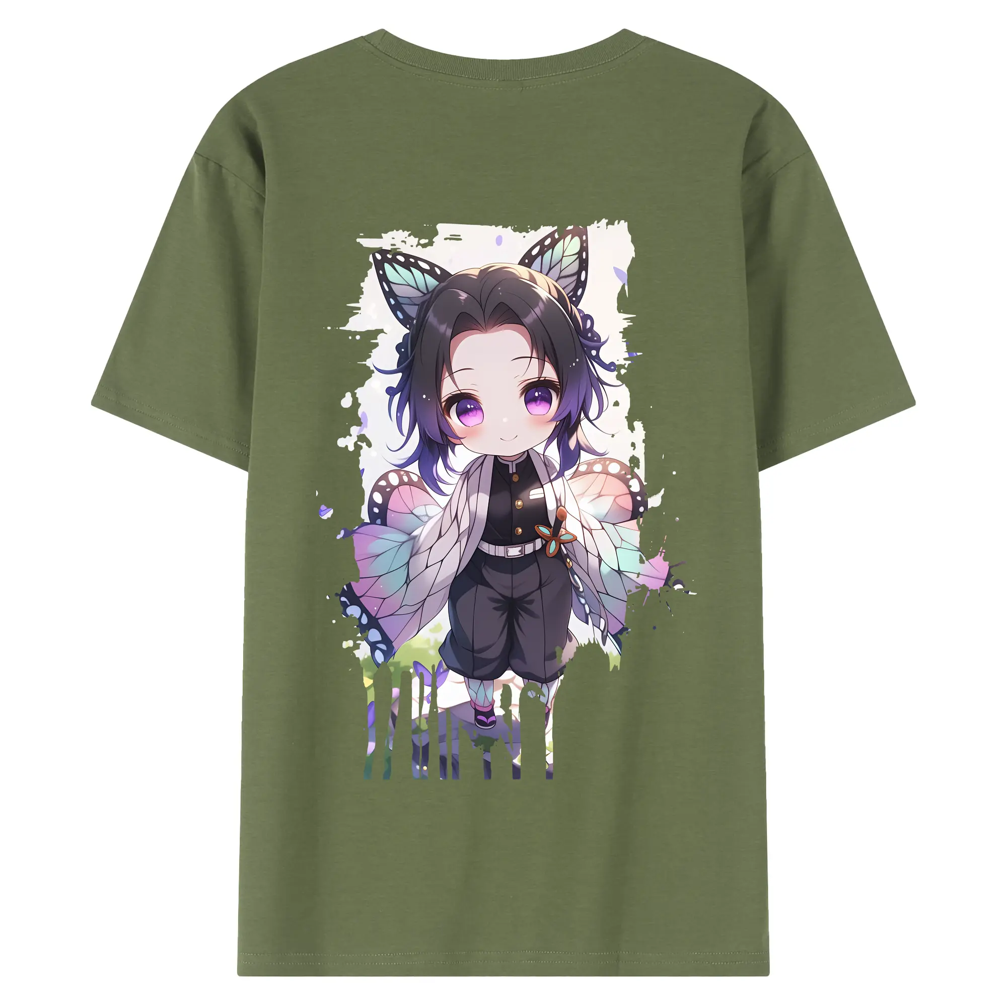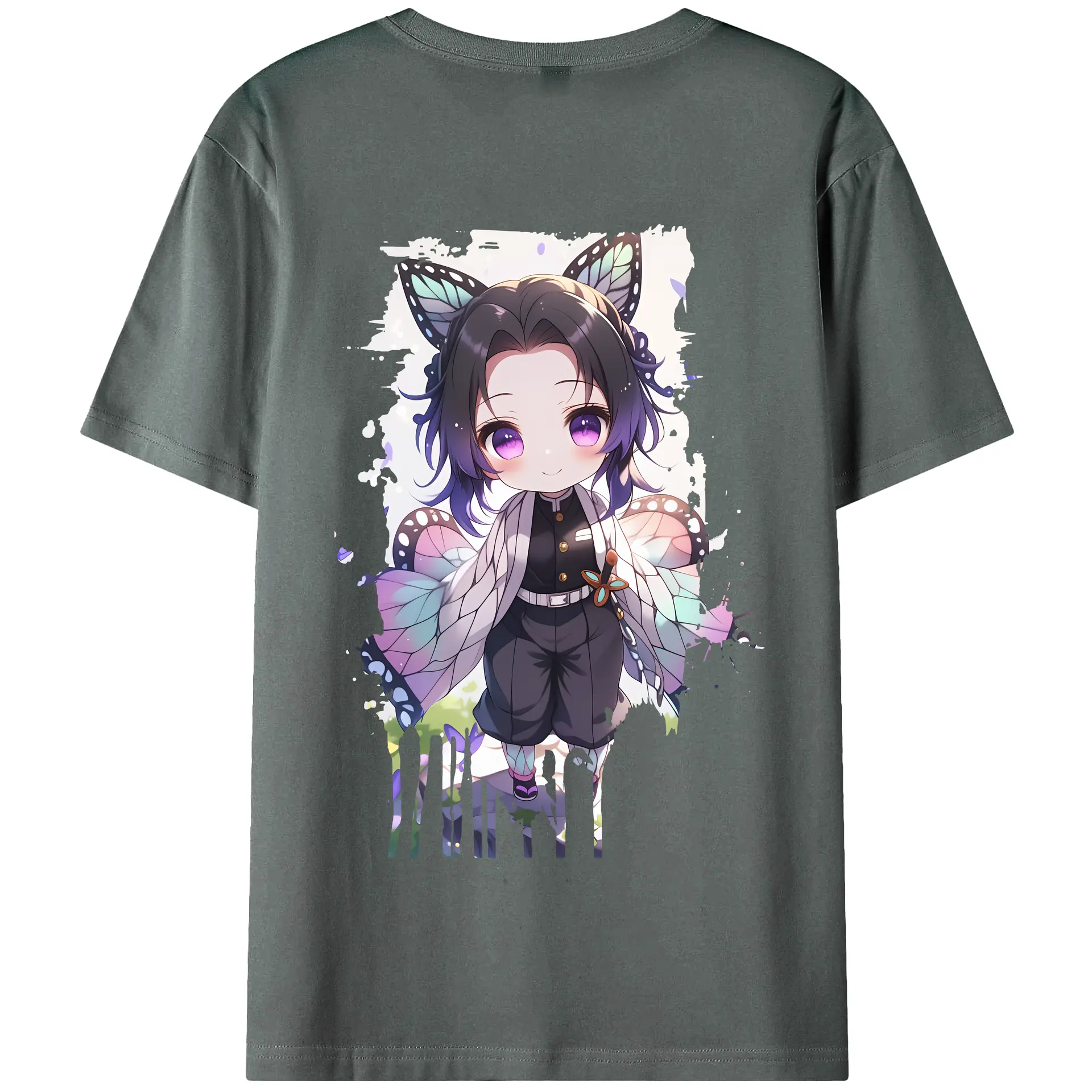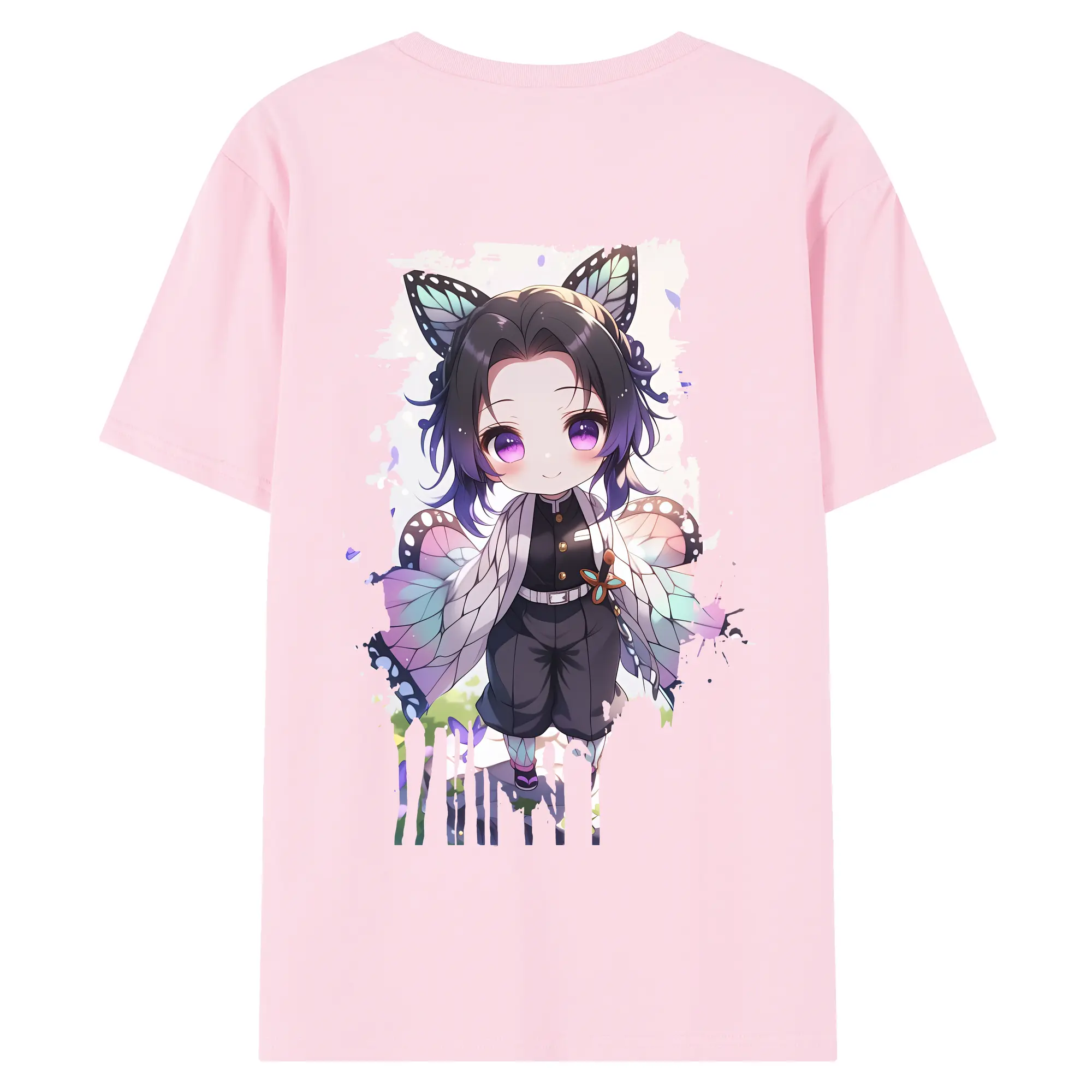 鬼滅の刃 グッズ,胡蝶 しのぶ - 綿100% 半袖Tシャツ ・ フロントプリント ・ 快適 通気性 ・ 日常使い 散歩 スポーツ用