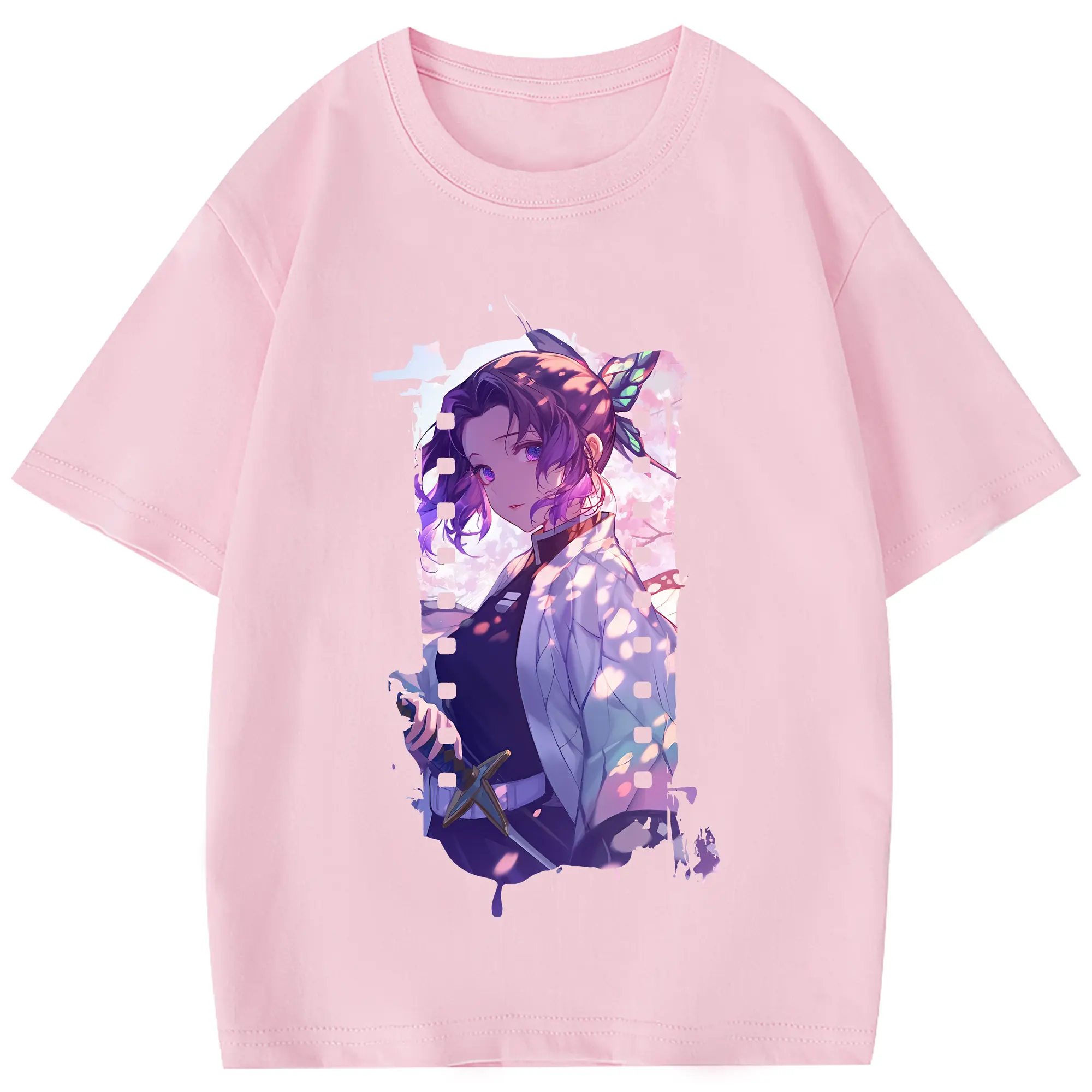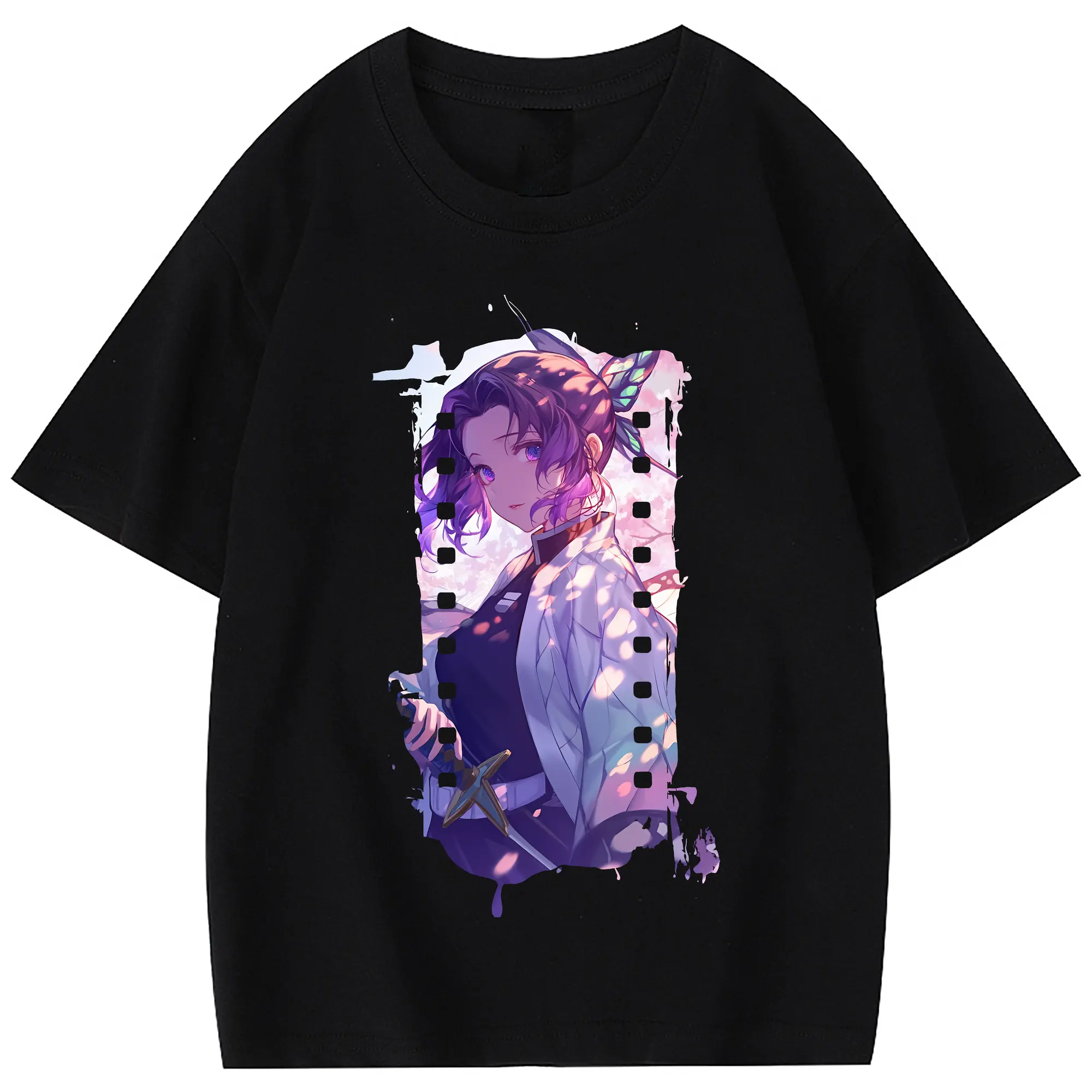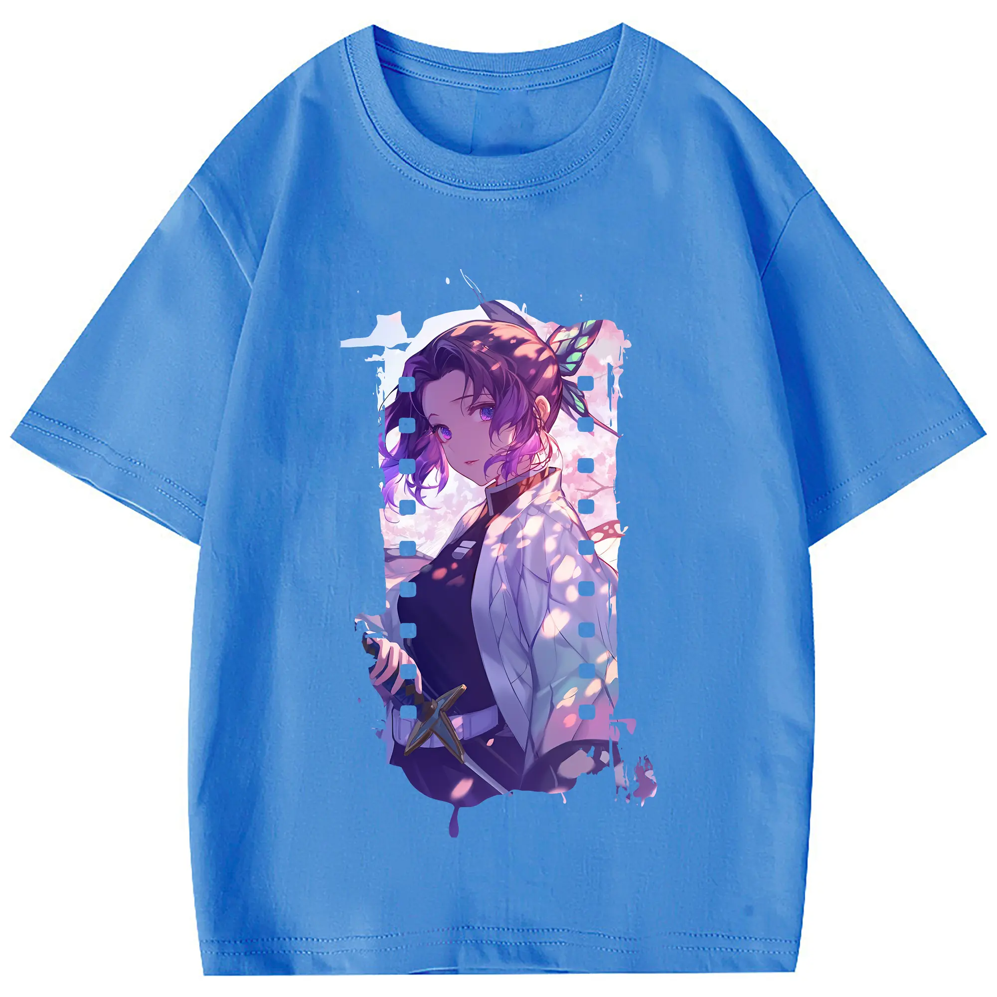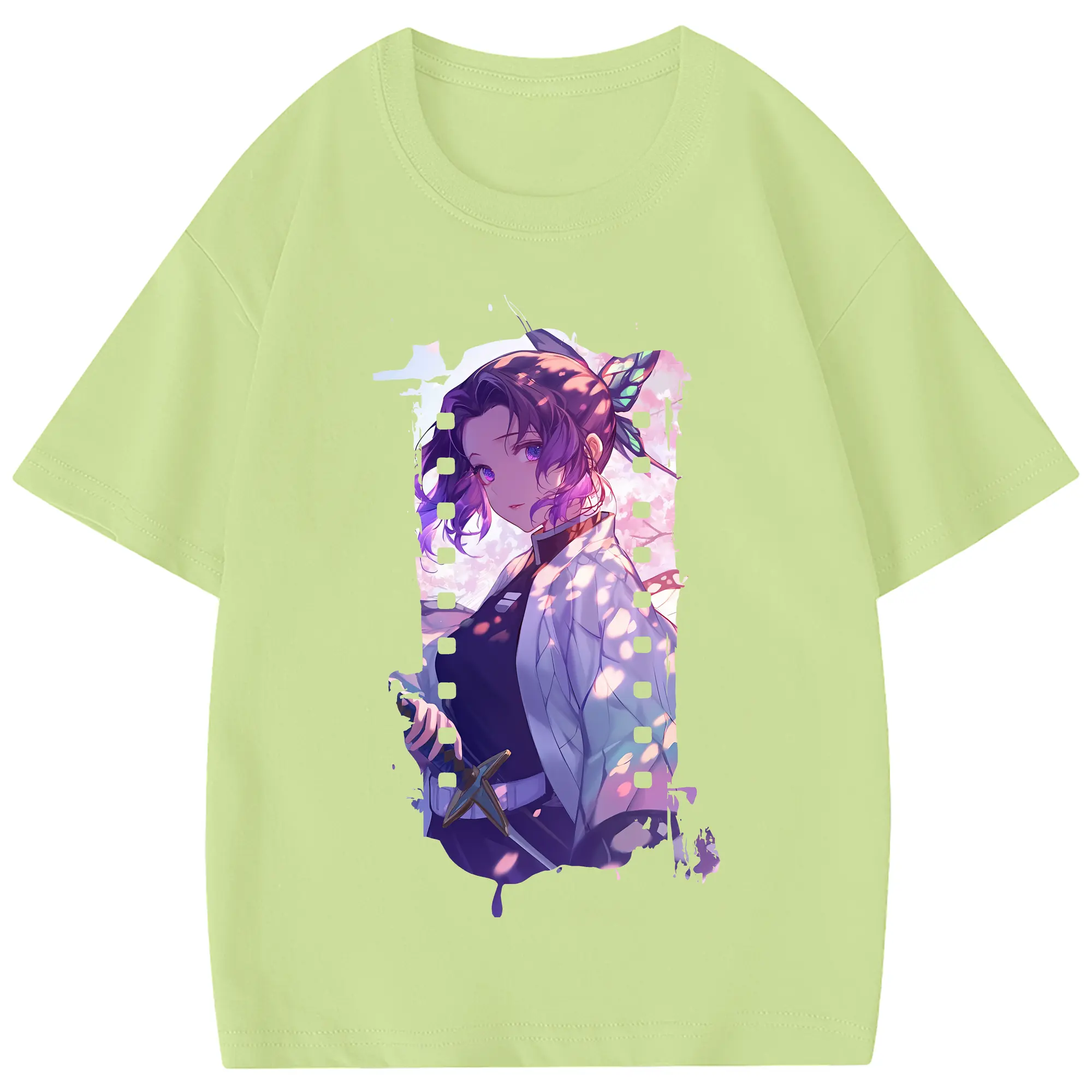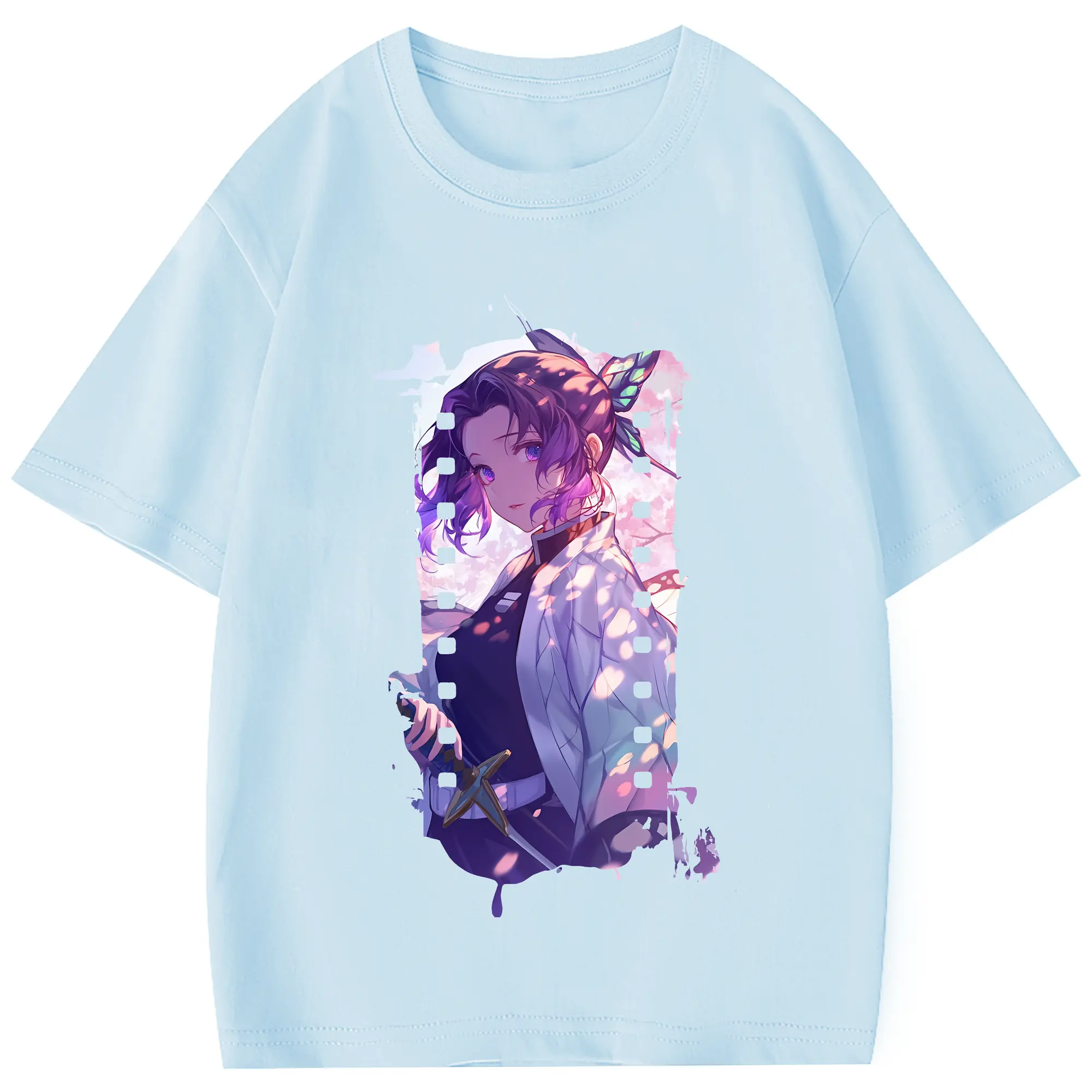 鬼滅の刃 グッズ,胡蝶 しのぶ - 綿100% 半袖Tシャツ ・ フロントプリント ・ 快適 通気性 ・ 日常使い 散歩 スポーツ用