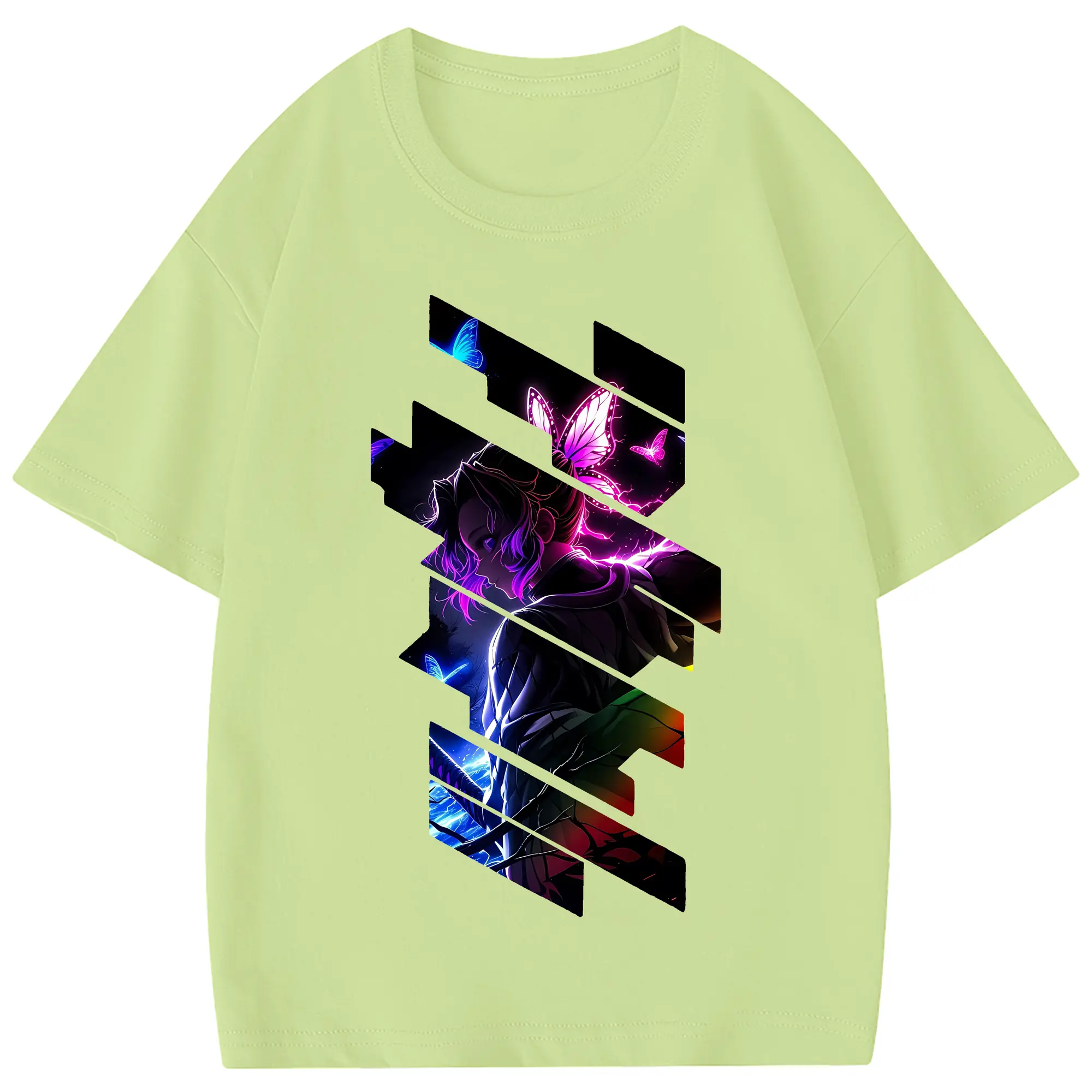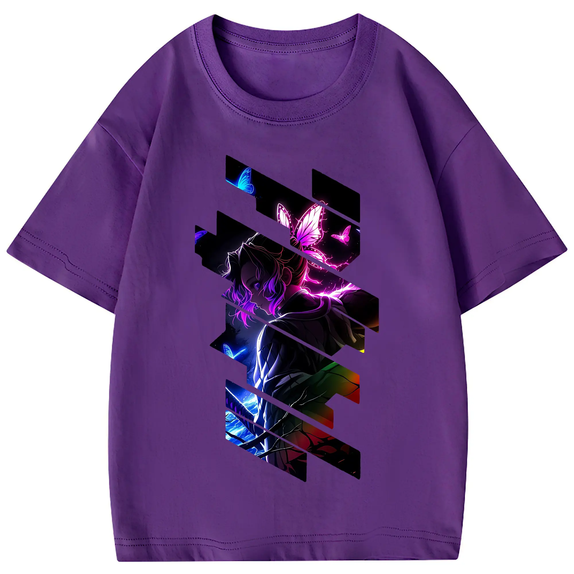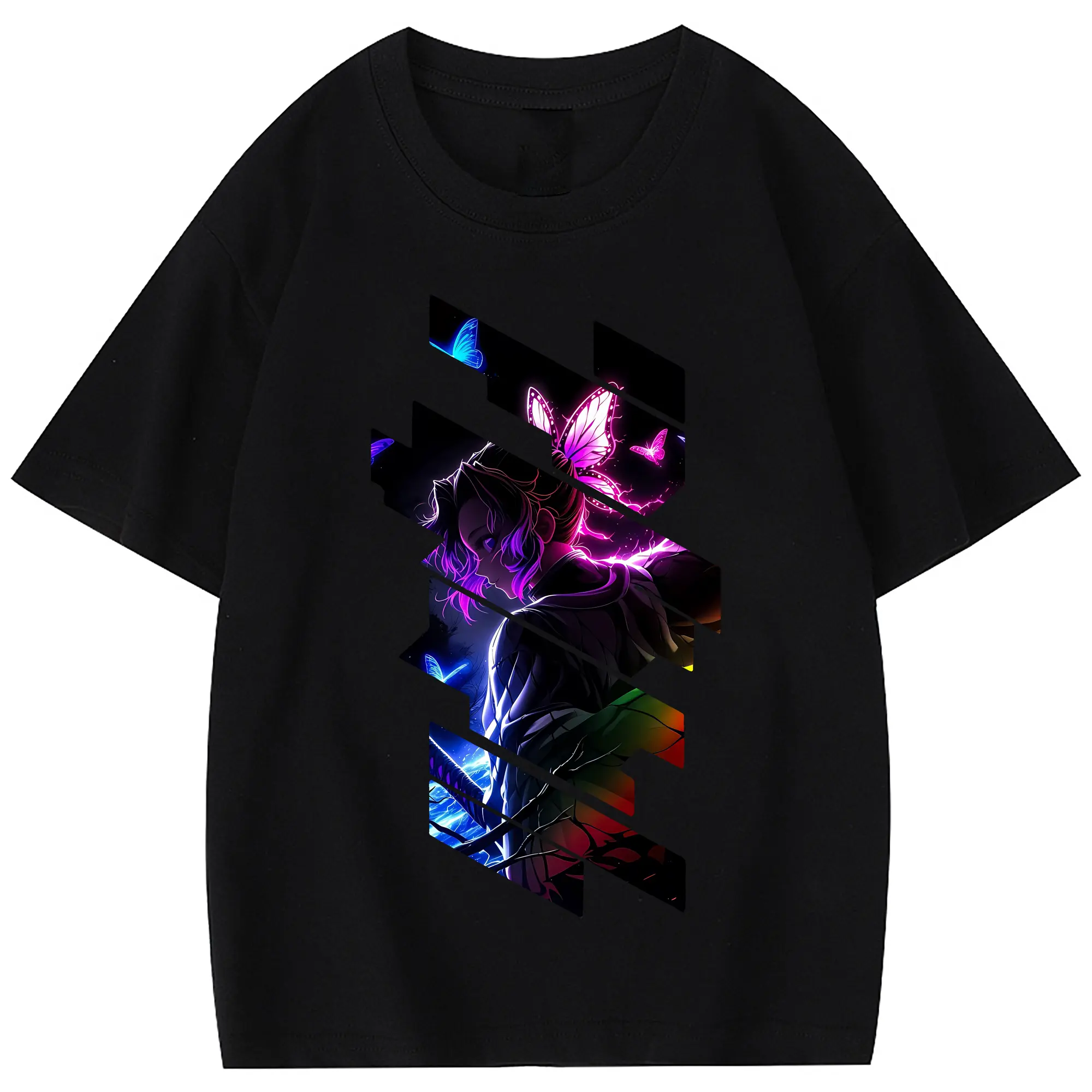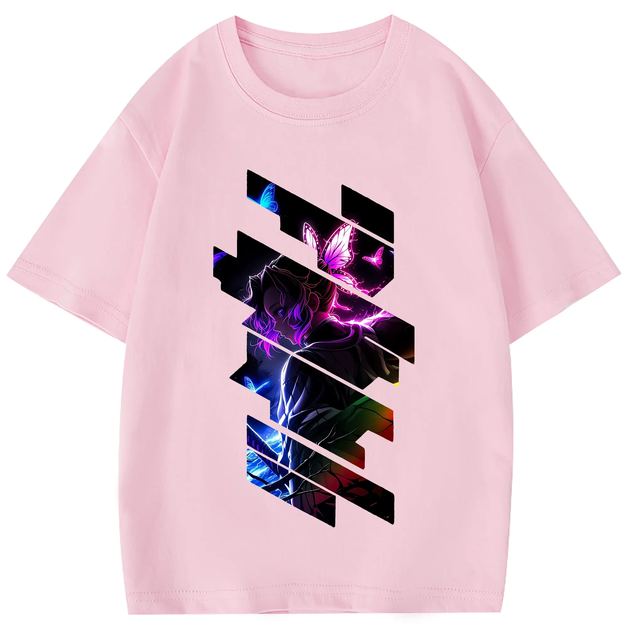 鬼滅の刃 グッズ,胡蝶 しのぶ - 綿100% 半袖Tシャツ ・ フロントプリント ・ 快適 通気性 ・ 日常使い 散歩 スポーツ用