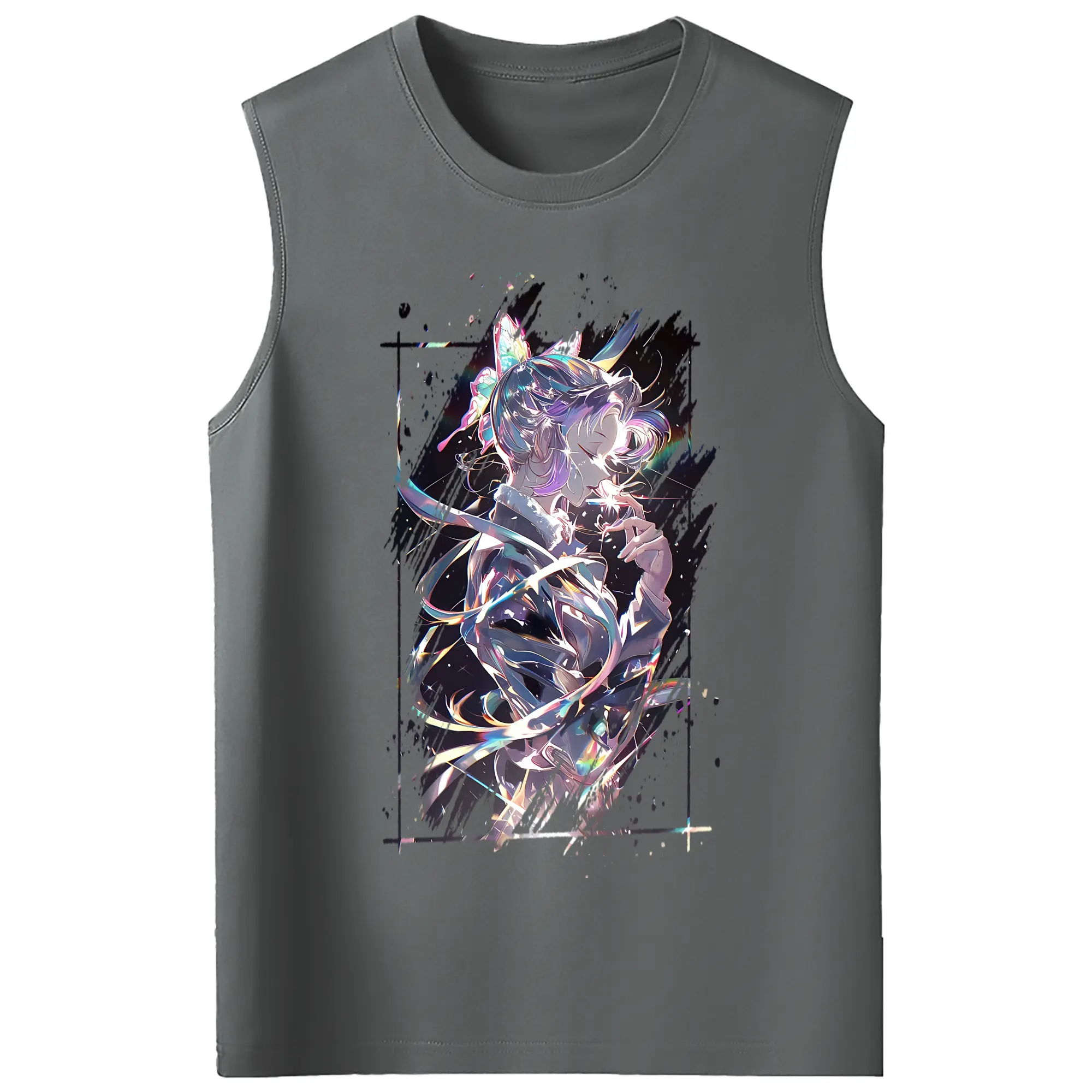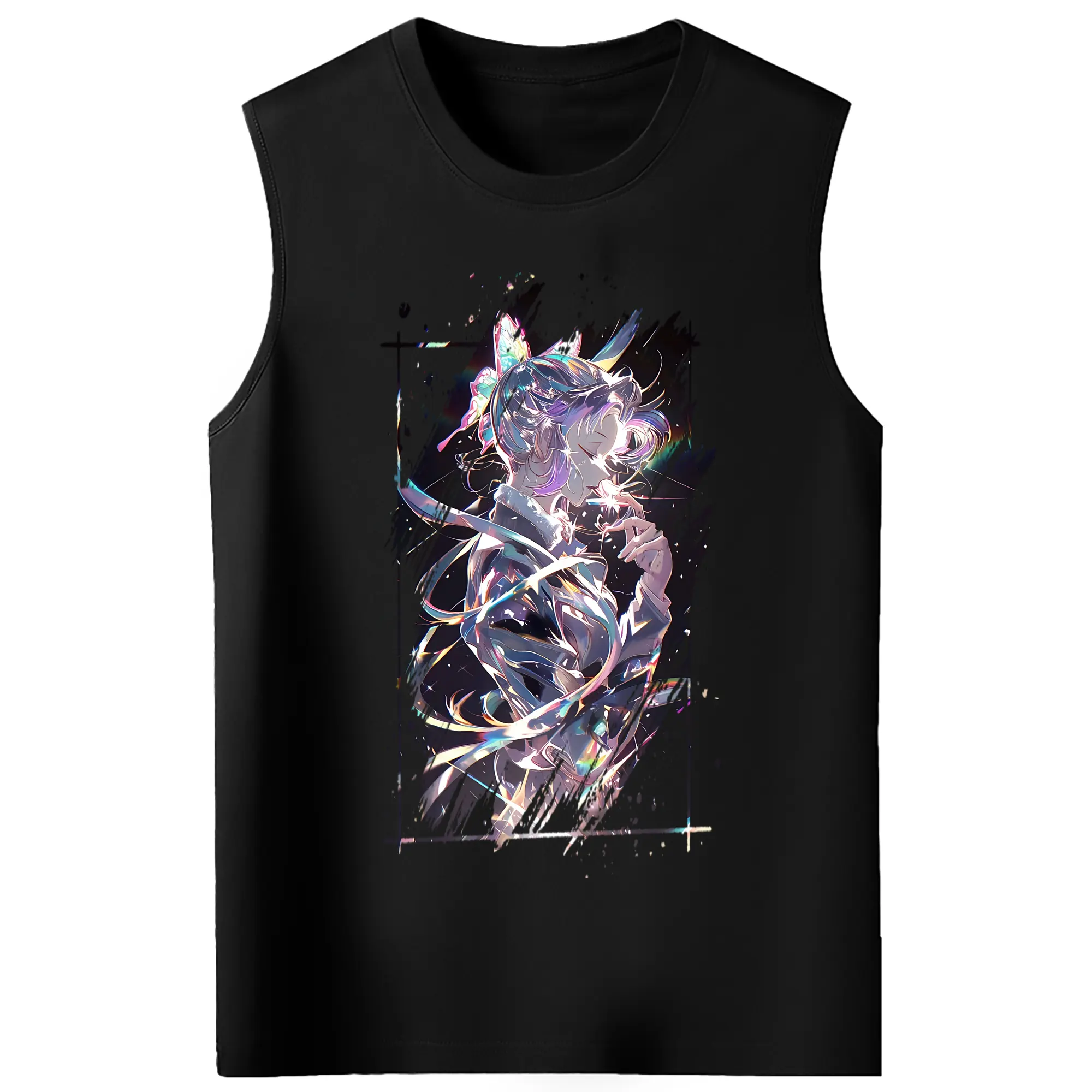 鬼滅の刃 グッズ,胡蝶 しのぶ - コットン100% タンクトップ ・ フロントプリント ・ タイトフィット ・ 快適 通気性 ・ スポーツ カジュアル 散歩用