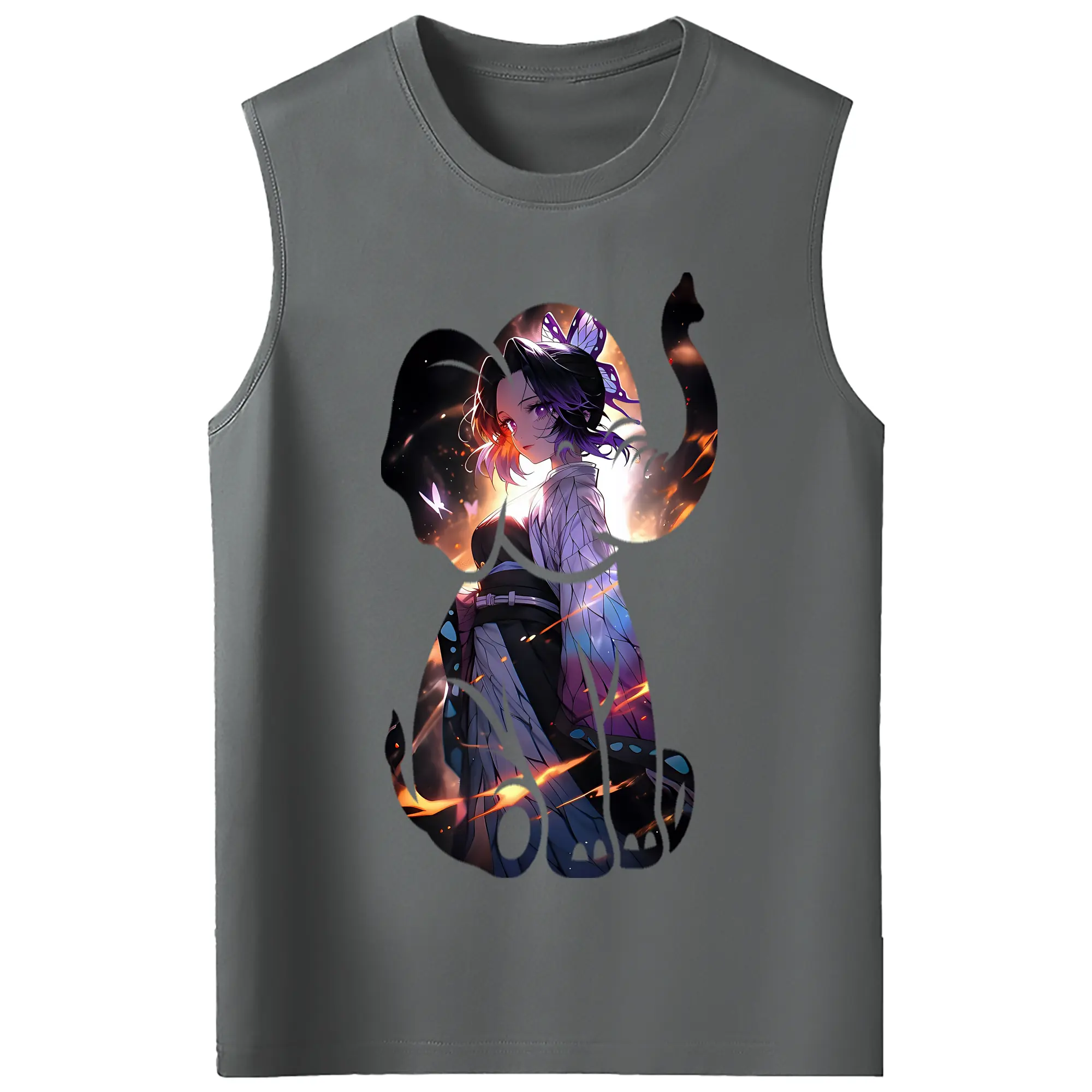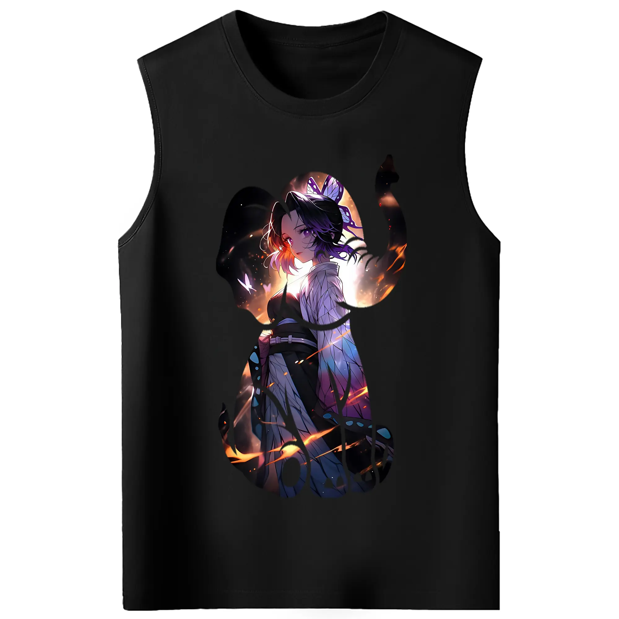鬼滅の刃 グッズ,胡蝶 しのぶ - コットン100% タンクトップ ・ フロントプリント ・ タイトフィット ・ 快適 通気性 ・ スポーツ カジュアル 散歩用