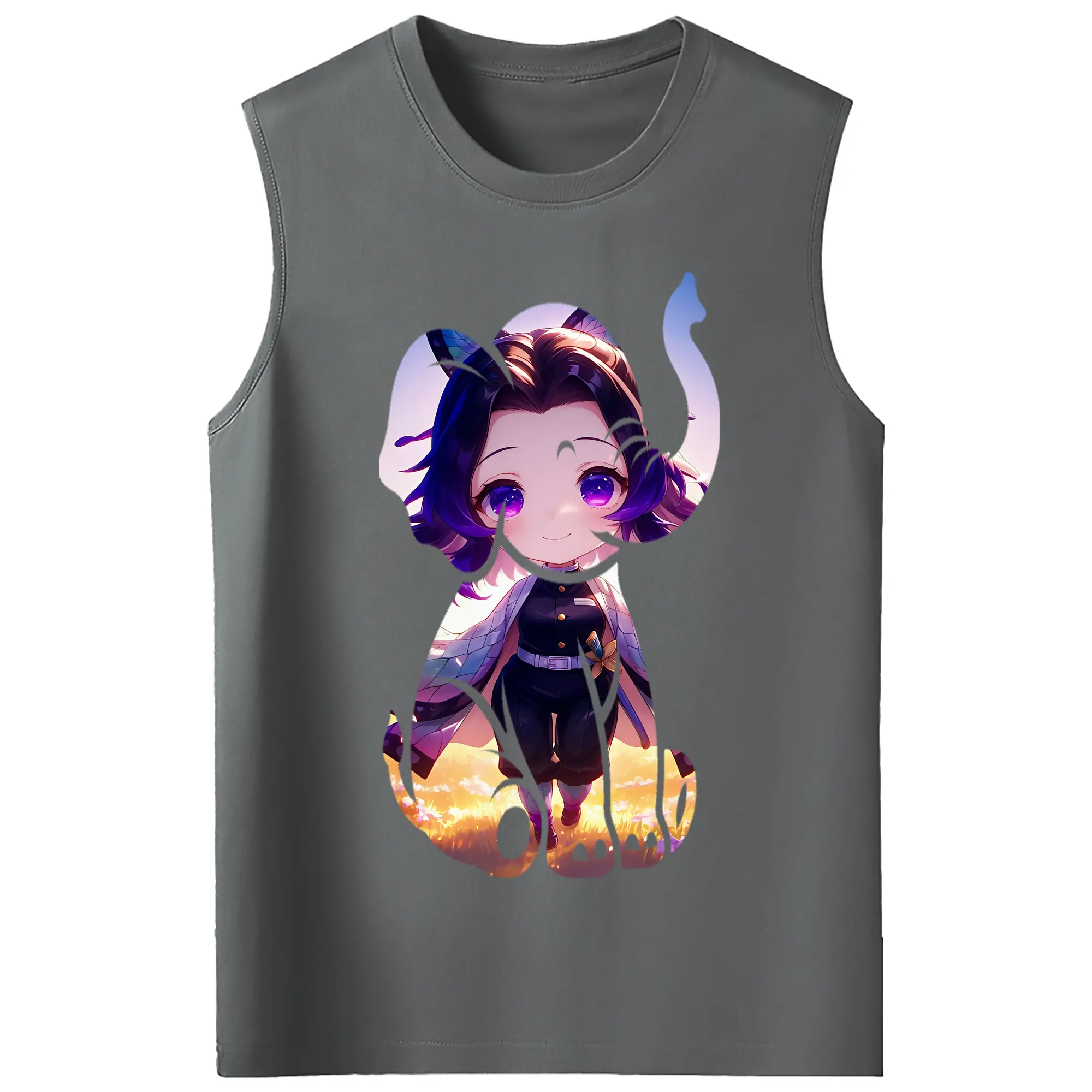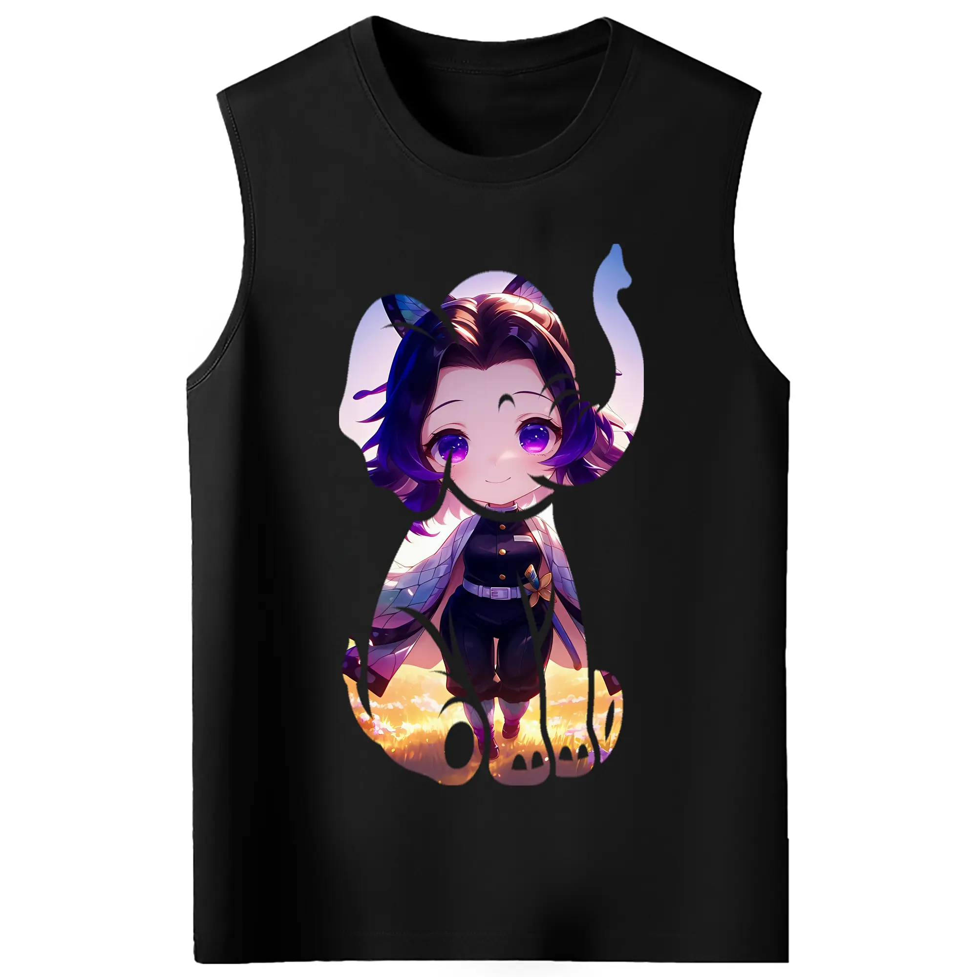 鬼滅の刃 グッズ,胡蝶 しのぶ - コットン100% タンクトップ ・ フロントプリント ・ タイトフィット ・ 快適 通気性 ・ スポーツ カジュアル 散歩用