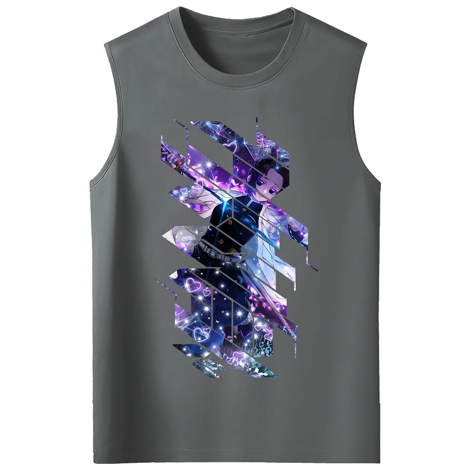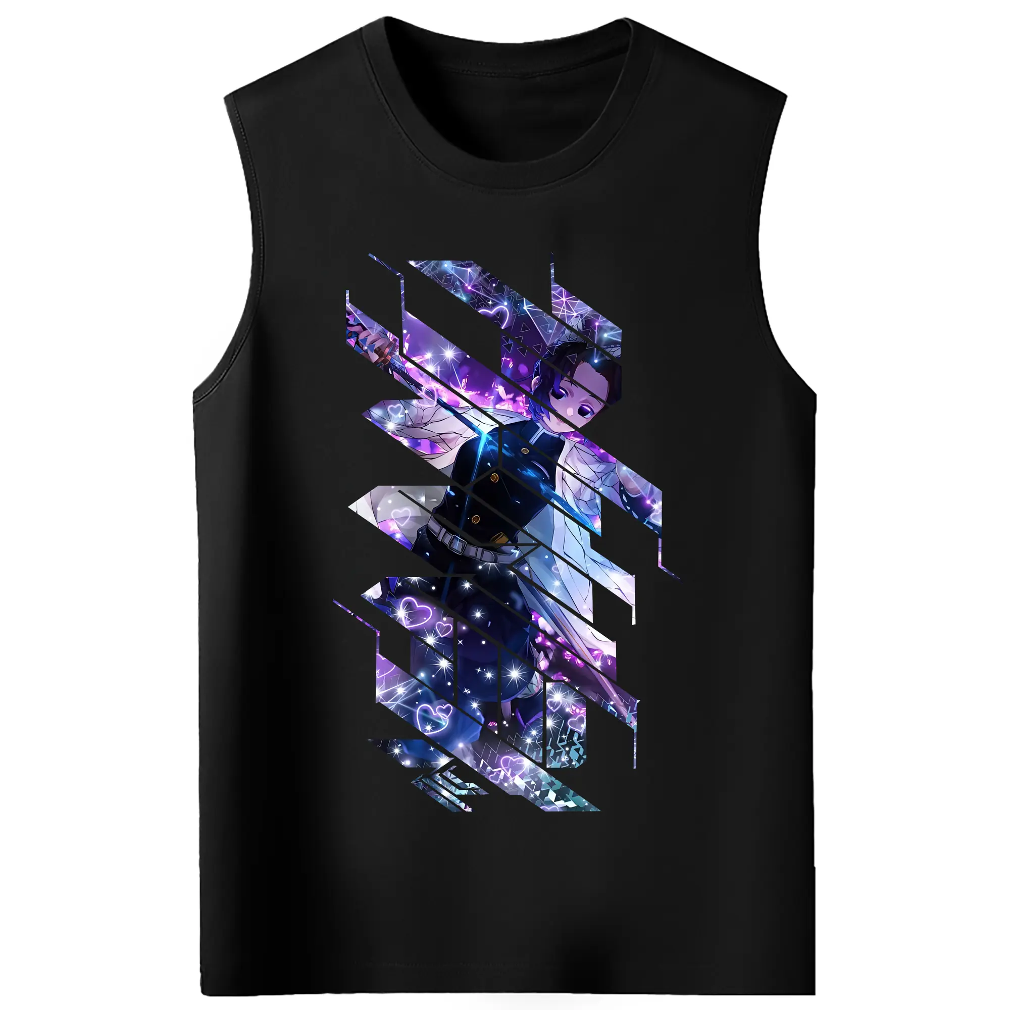 鬼滅の刃 グッズ,胡蝶 しのぶ - コットン100% タンクトップ ・ フロントプリント ・ タイトフィット ・ 快適 通気性 ・ スポーツ カジュアル 散歩用