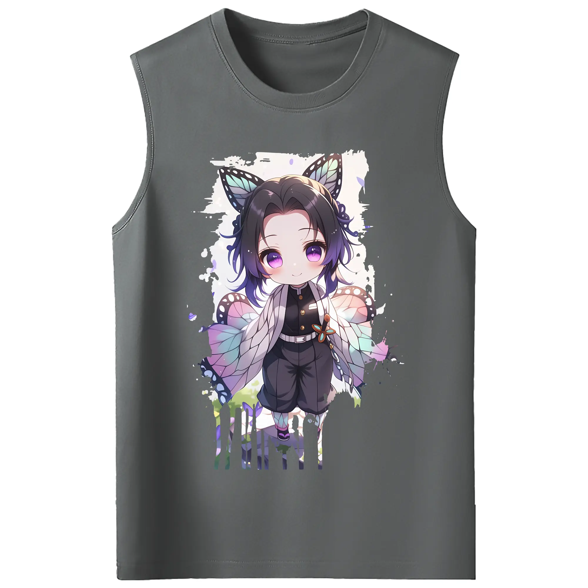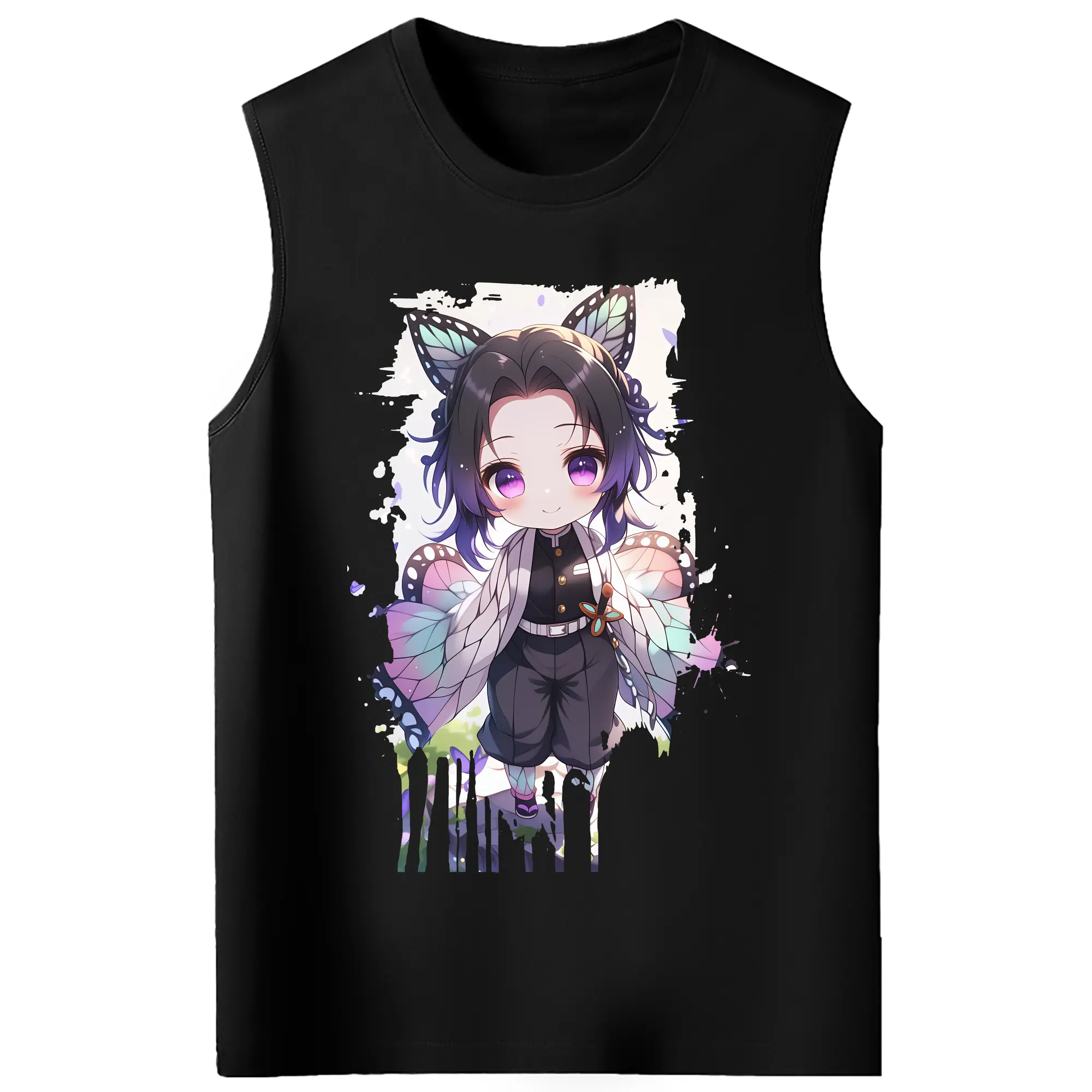 鬼滅の刃 グッズ,胡蝶 しのぶ - コットン100% タンクトップ ・ フロントプリント ・ タイトフィット ・ 快適 通気性 ・ スポーツ カジュアル 散歩用