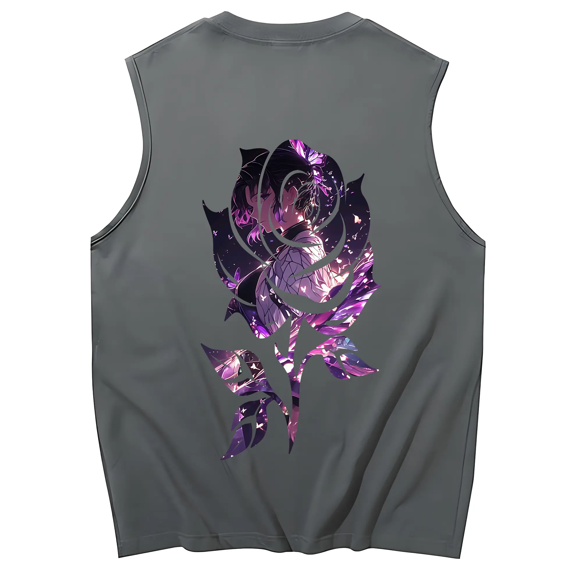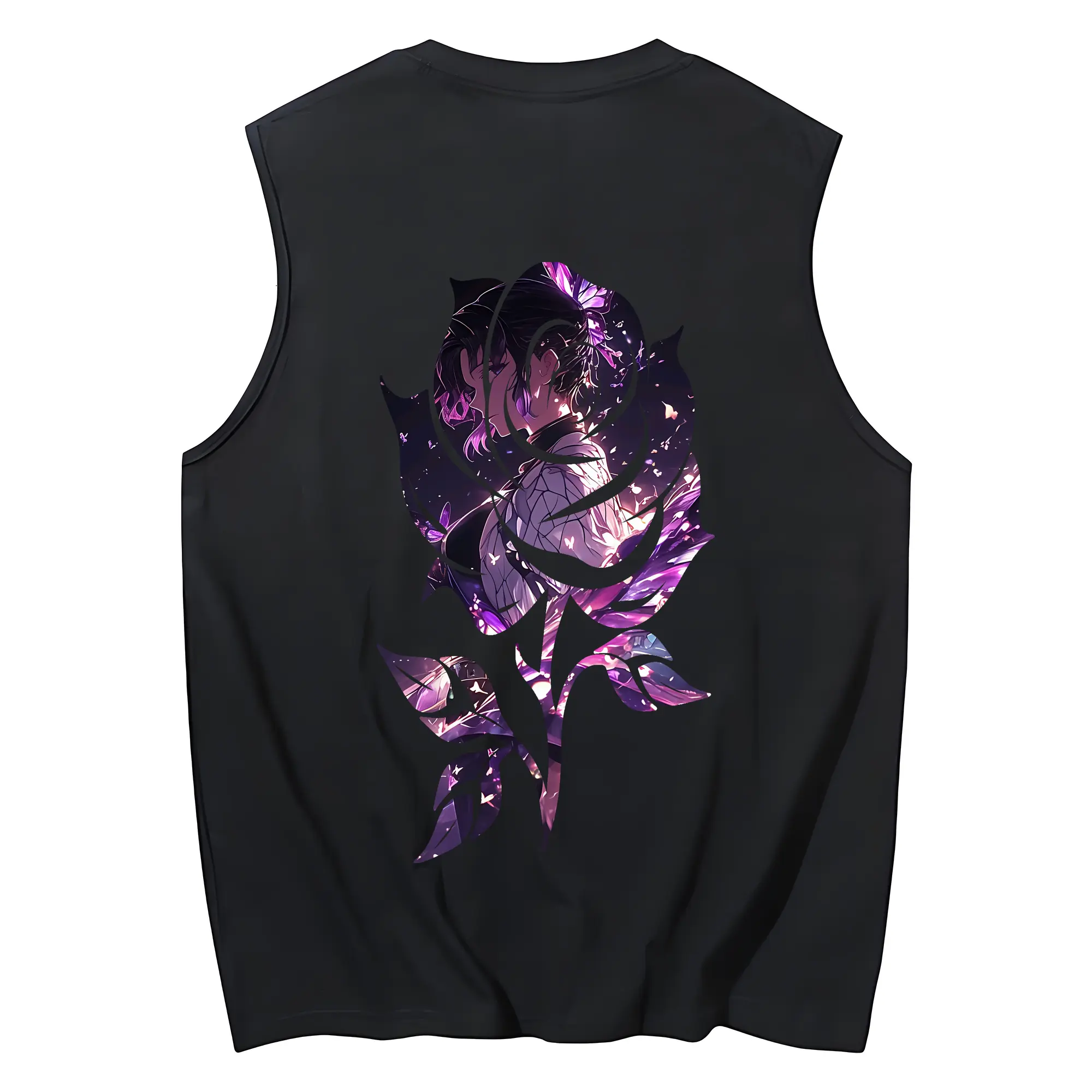 鬼滅の刃 グッズ,胡蝶 しのぶ - コットン100% タンクトップ ・ 背面プリント ・ タイトシルエット ・ 快適 通気性 ・ スポーツ カジュアル 散歩用